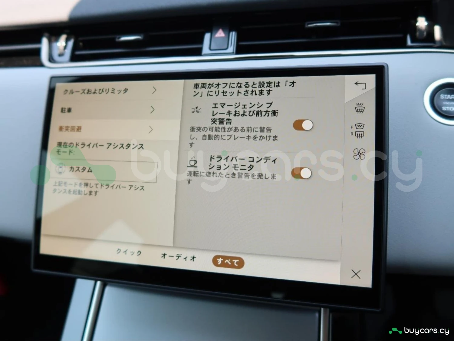 The cabin accommodates 5 passengers, featuring leather seats with heating and ergonomic design. Comfort functions include a smart key system and navigation for convenience.
