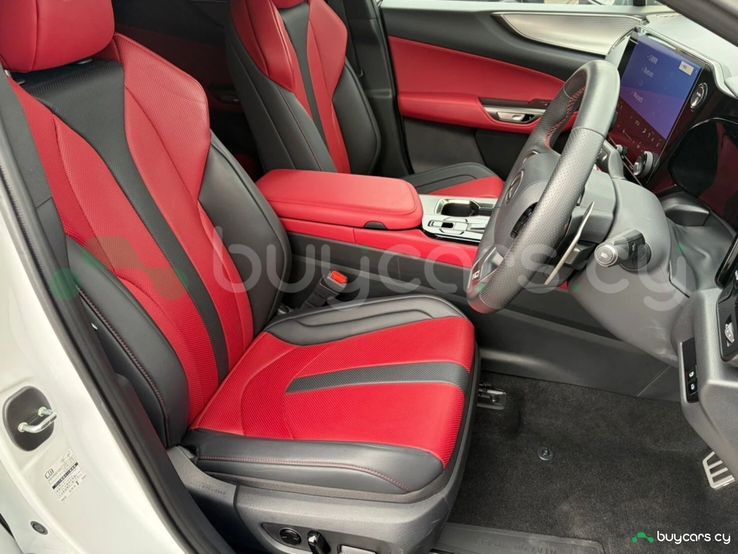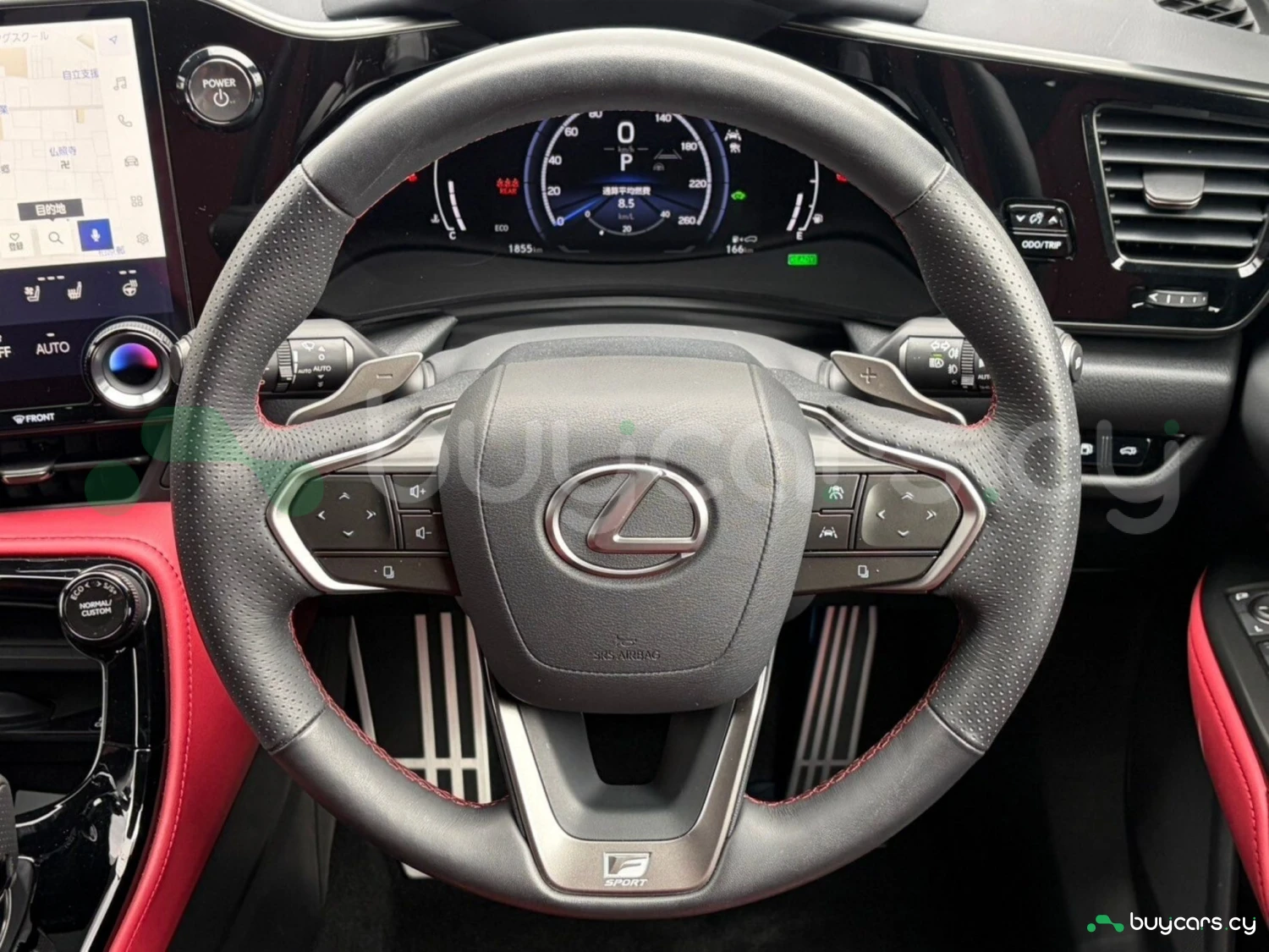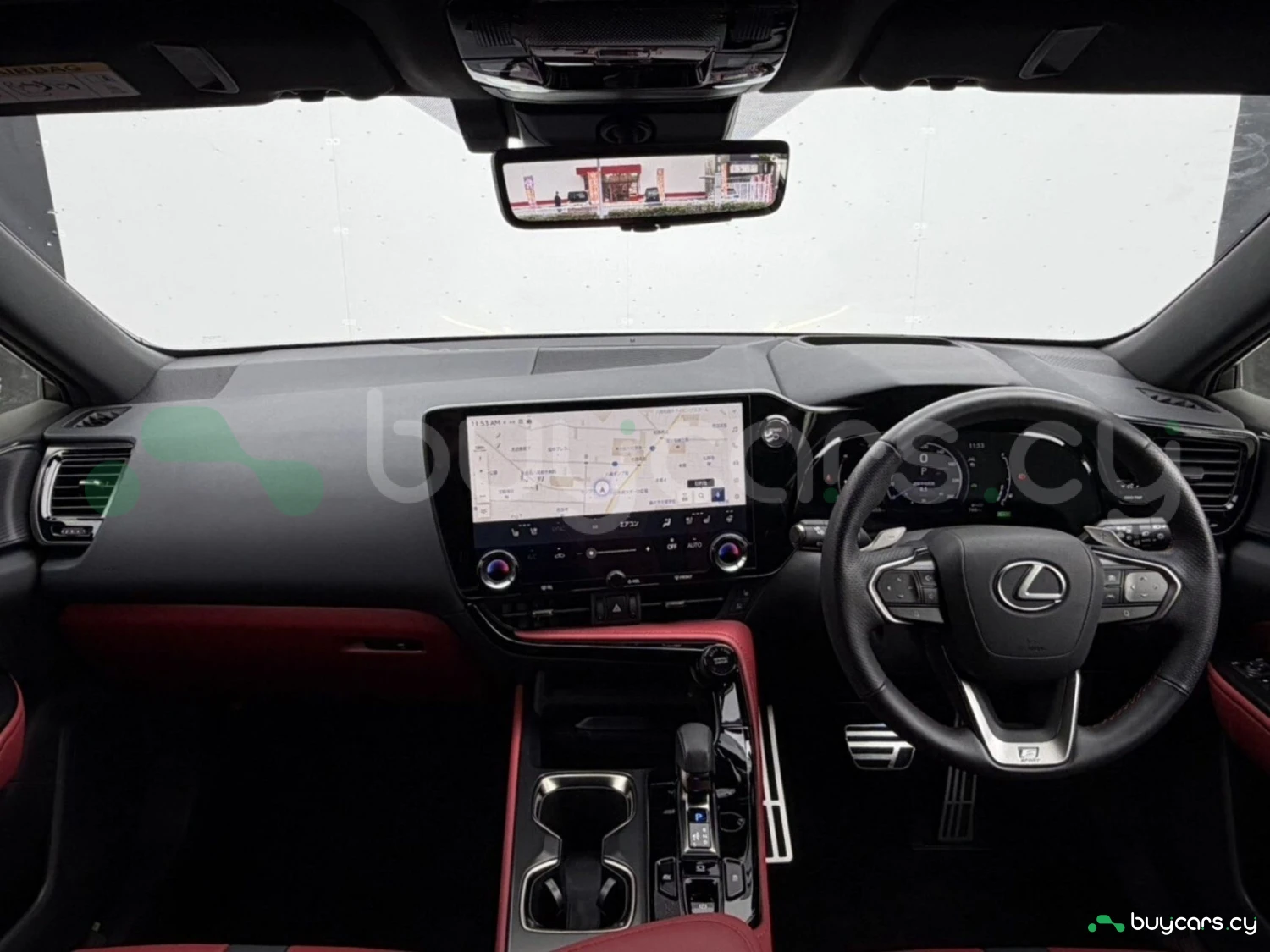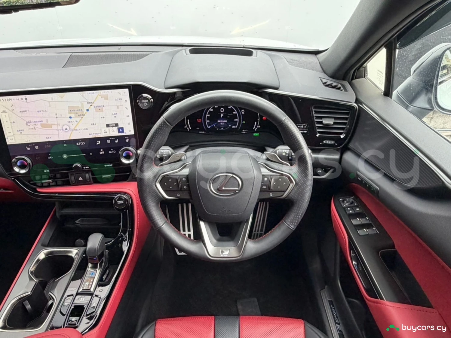 The cabin features premium red leather upholstery, electrically adjustable seats with heating and ventilation, and a driver-focused layout. A genuine 14-inch navigation system, digital rearview mirror, and advanced infotainment with Apple CarPlay and Android Auto create a modern and luxurious environment. Additional conveniences such as a 100V power outlet and dual-zone climate control enhance everyday usability.