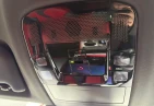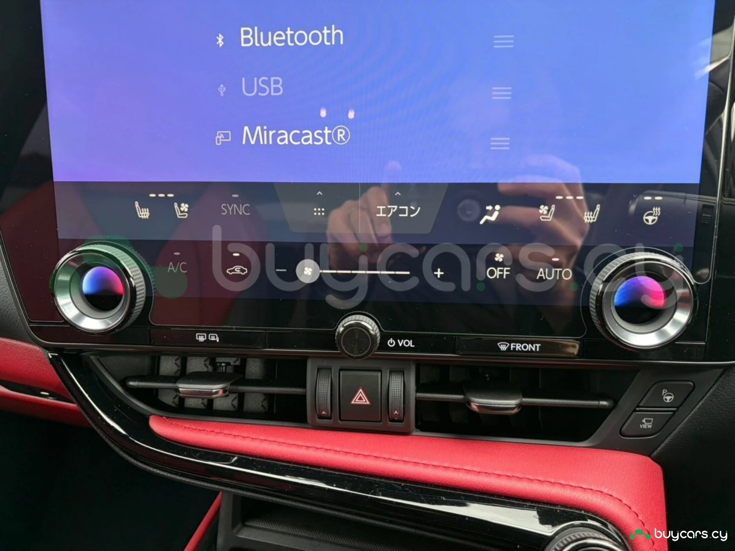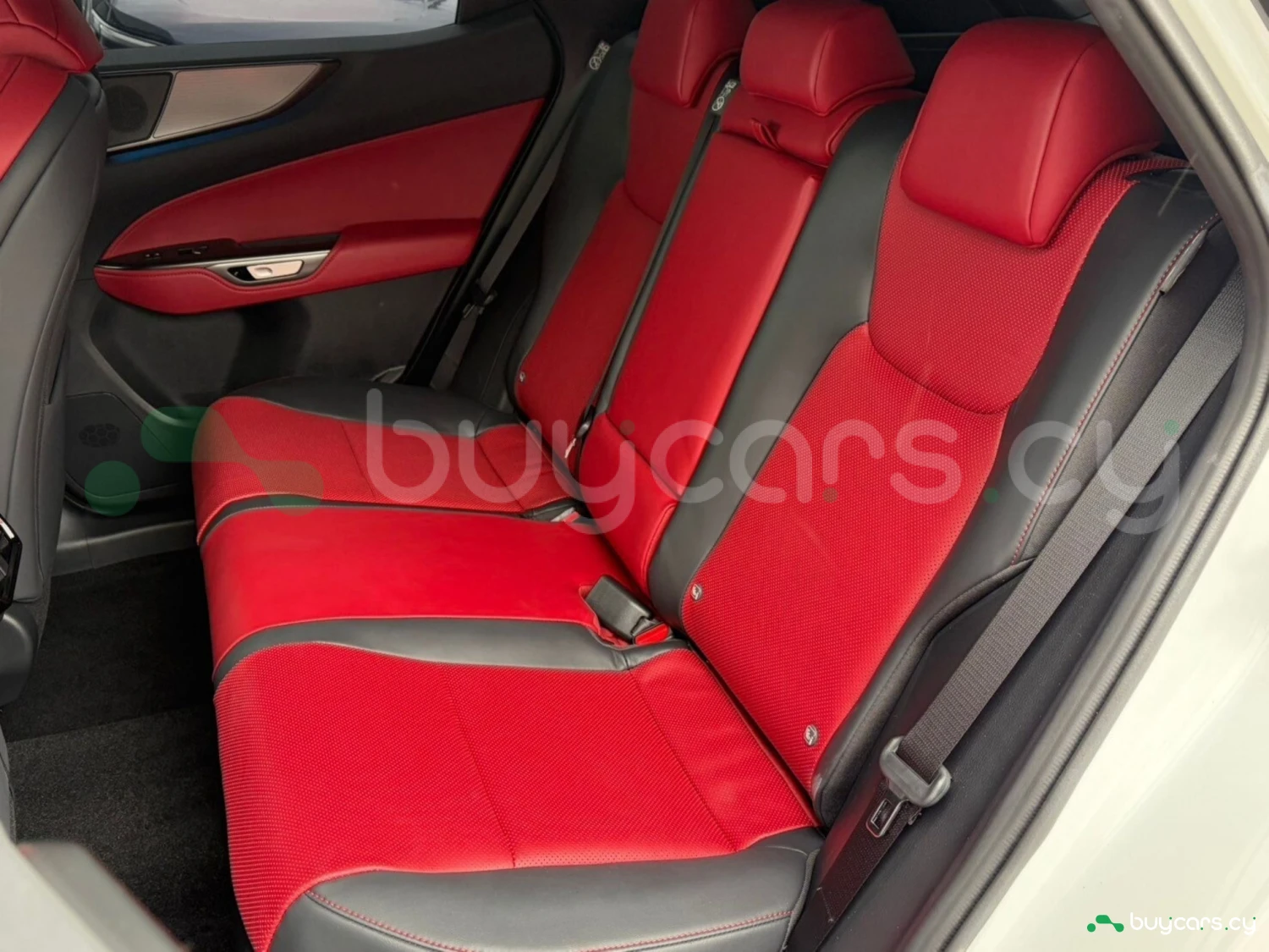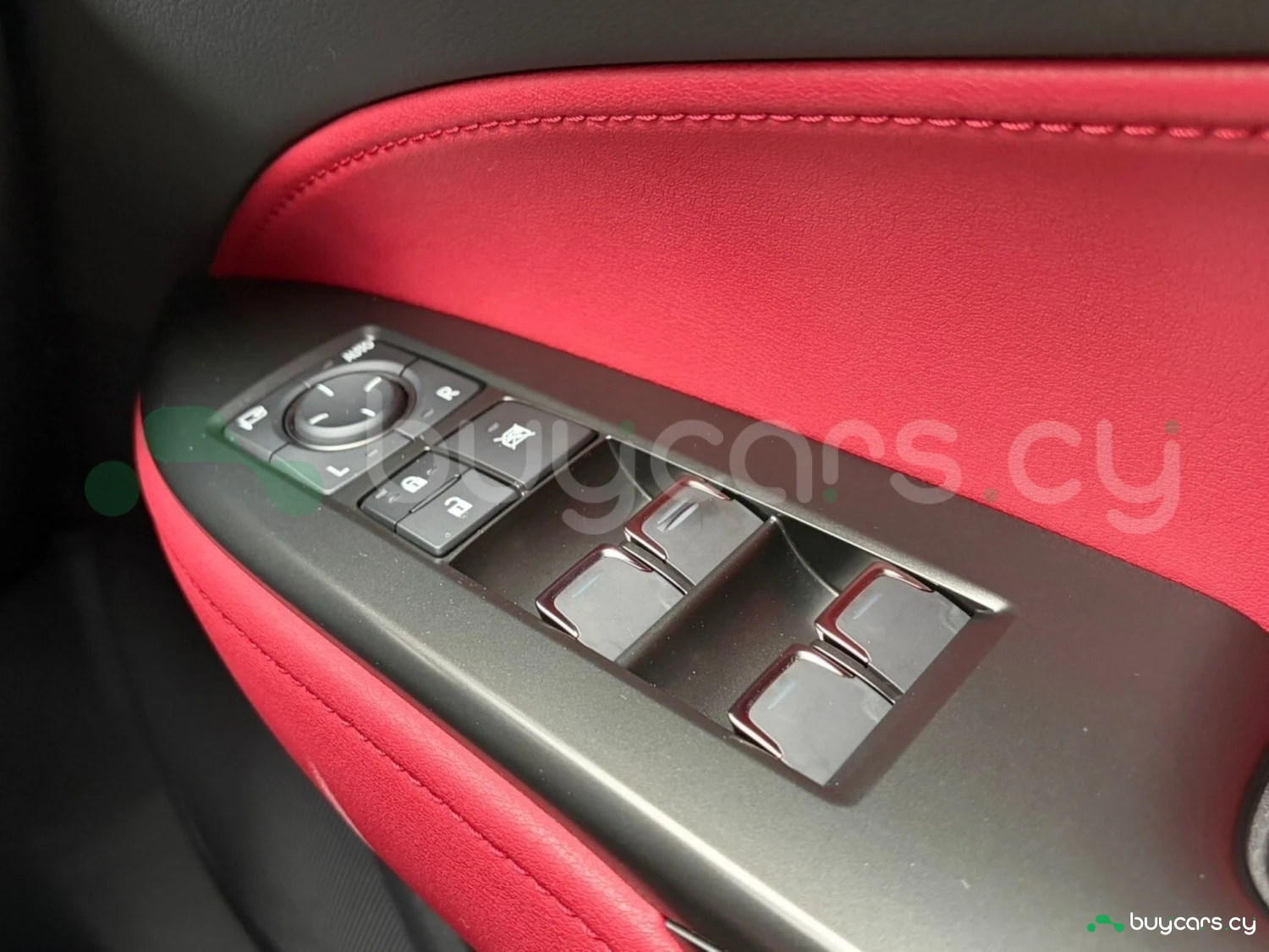 The cabin features premium red leather upholstery, electrically adjustable seats with heating and ventilation, and a driver-focused layout. A genuine 14-inch navigation system, digital rearview mirror, and advanced infotainment with Apple CarPlay and Android Auto create a modern and luxurious environment. Additional conveniences such as a 100V power outlet and dual-zone climate control enhance everyday usability.