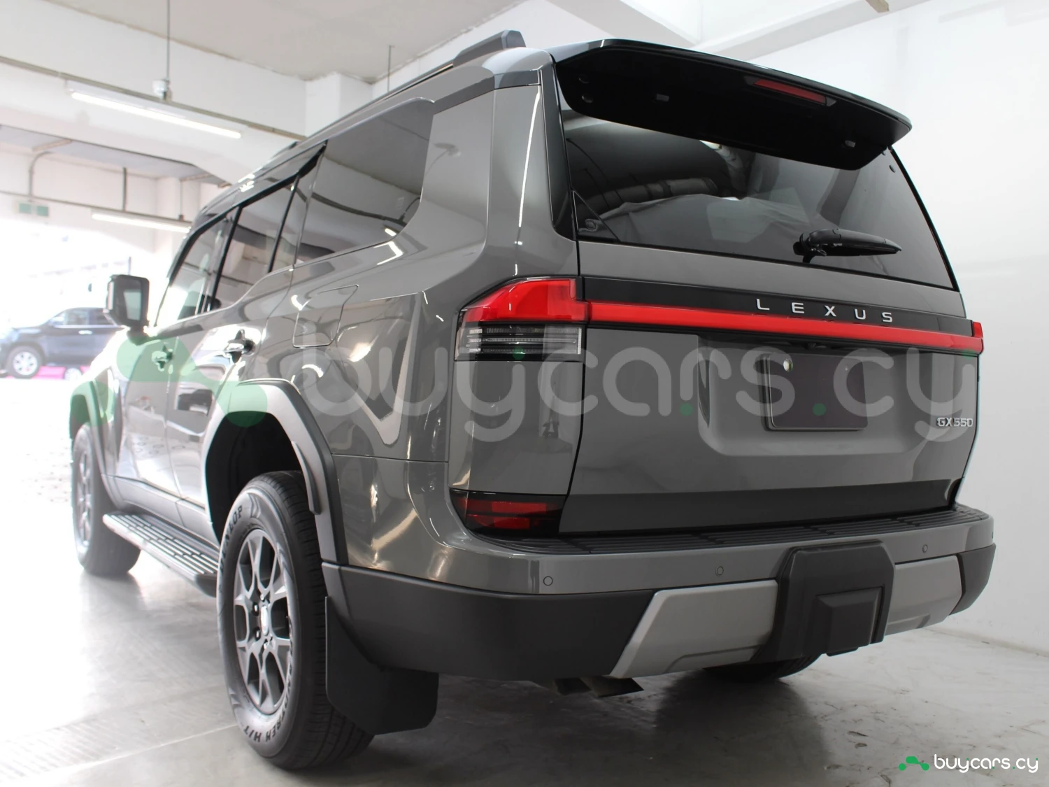 The bold and angular design of the GX550 in Titanium Carbide Gray emphasizes its robust off-road character. Aluminum wheels, roof rails, sunroof, and practical Overtrail-specific features reinforce its adventurous yet premium identity.