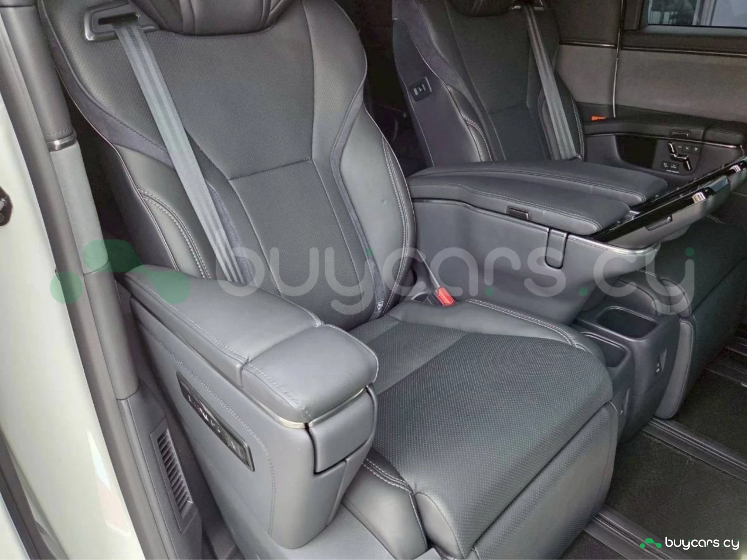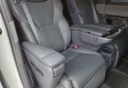 The spacious 6-seat cabin is designed for premium comfort, featuring ottoman seats, electric adjustment, heated seating, and high-quality materials. The rear entertainment monitor and 14-inch navigation display create a first-class travel experience, complemented by a powerful Mark Levinson audio system and cold weather package.