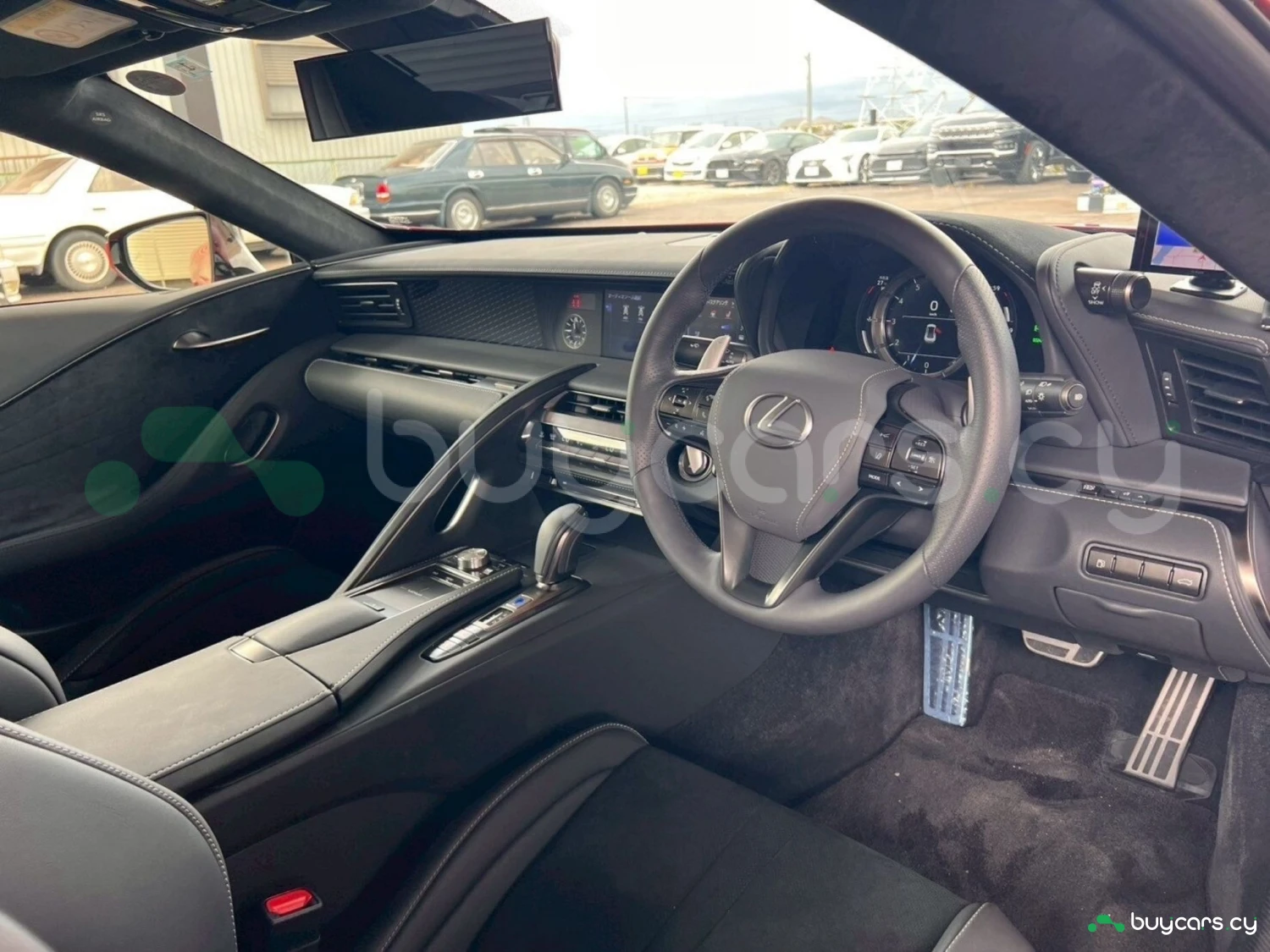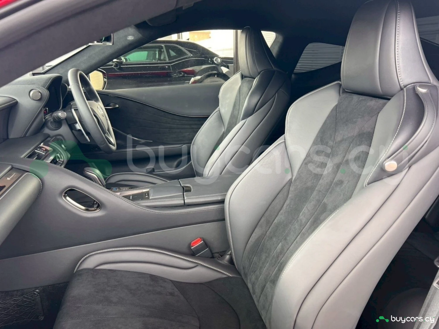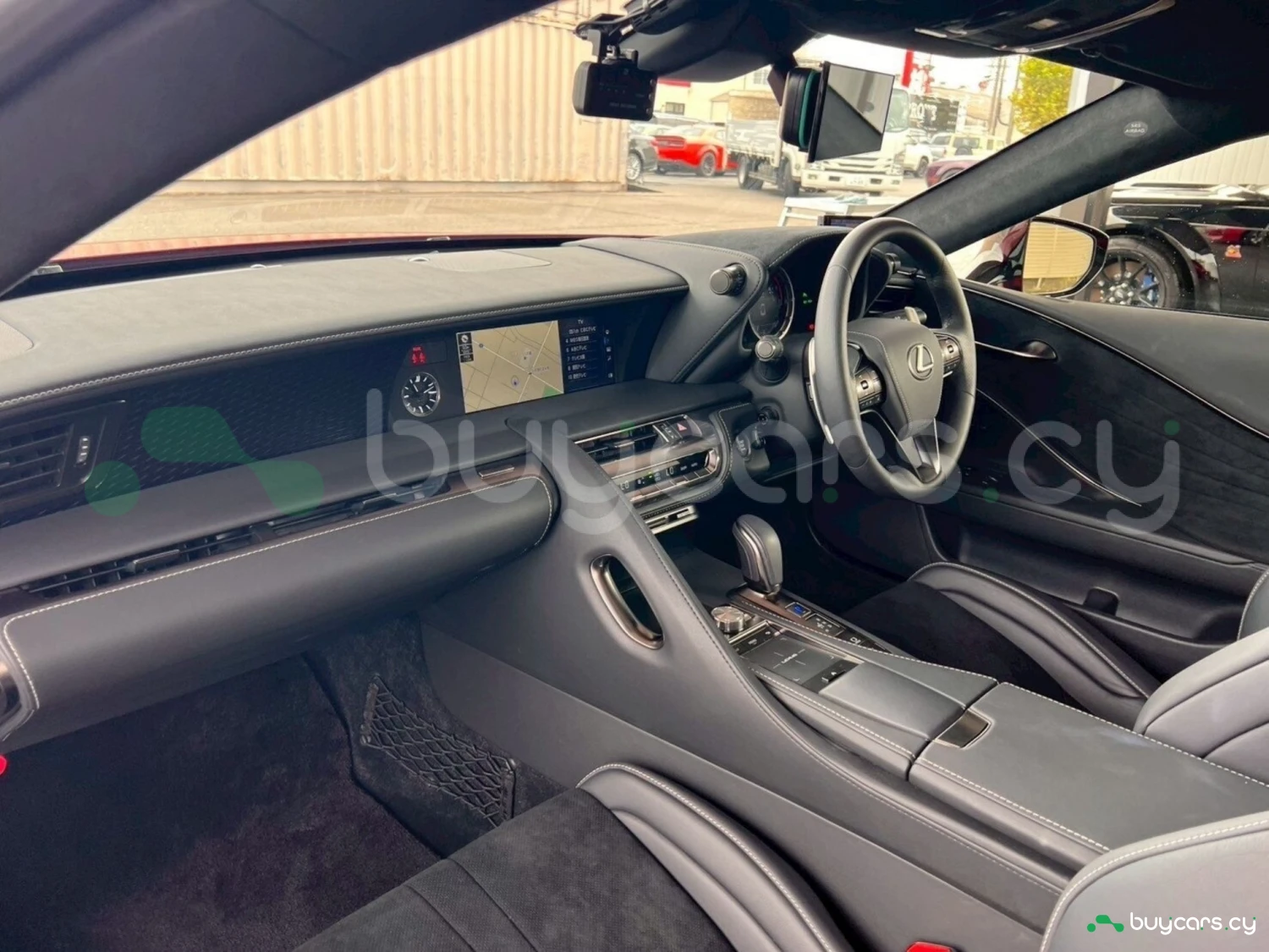 Equipped with Lexus Safety System+, the LC500 features Adaptive Cruise Control, Lane Keep Assist, and Collision Mitigation Braking. A Blind Spot Monitor, Rear Traffic Alert, and front and rear dashcams enhance safety and visibility. Seamless connectivity is provided through Apple CarPlay, Android Auto, navigation, and a premium infotainment system with full-segment TV tuner and music server.