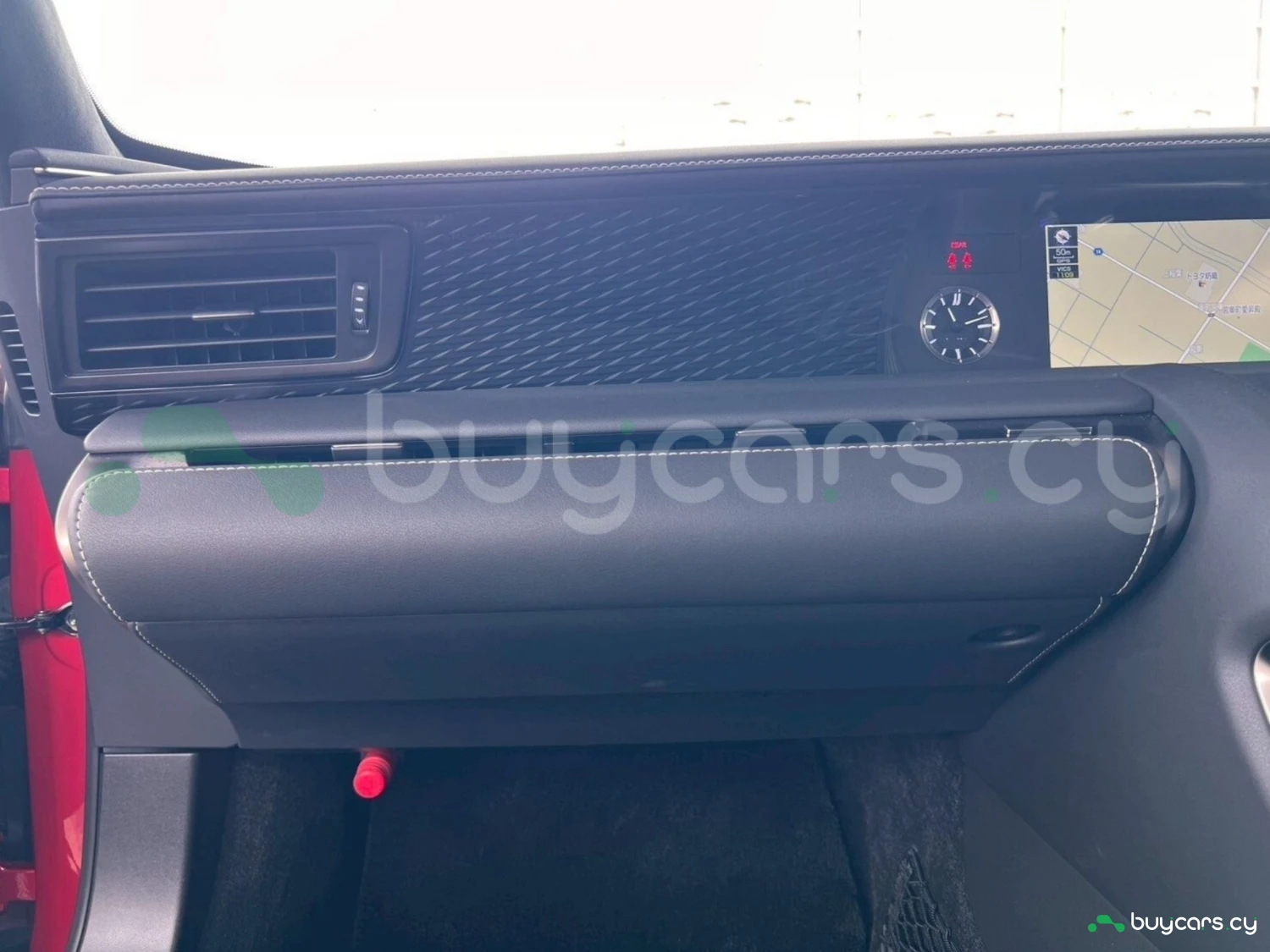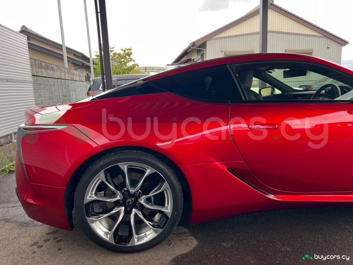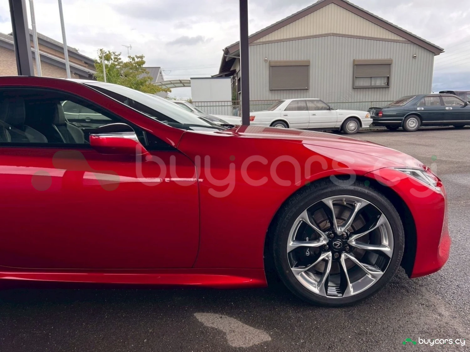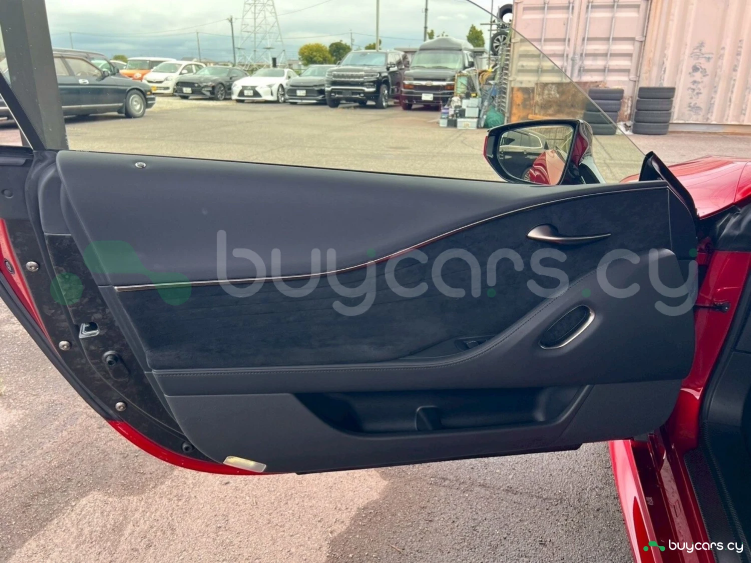 2-door luxury grand touring coupe, 4 seats, 5.0L naturally aspirated V8 gasoline engine (5000cc), 10-speed automatic transmission with manual mode, 2WD (rear-wheel drive), right-hand drive, Wine Red, Power steering, ABS, Adaptive Cruise Control, Lane Keep Assist, Collision Mitigation Braking, Parking Assist, Obstacle Sensors, Airbags: Driver/Passenger/Side/Curtain, Blind Spot Monitoring/Rear Traffic Alert, Electronic Stability Control (Anti-skid device), Anti-theft system, Automatic High Beam, LED headlights, Navigation system, Display Audio with Apple CarPlay / Android Auto, TV Tuner (Full Seg), Audio CD/Music Server, ETC, Front and rear dashcams, Alcantara and leather combination seats, Carbon Fiber Reinforced Plastic (CFRP) roof, Carbon scuff plates, Smart Key, Keyless entry, Power windows, Electric seats with memory, Heated and ventilated seats, Automatic climate control, Aluminum wheels.
