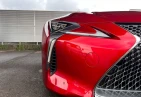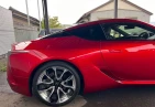 The striking exterior design of the LC500 S Package is highlighted by its sculpted body lines, signature spindle grille, and vibrant Wine Red finish. The CFRP carbon roof and lightweight aluminum wheels emphasize its performance pedigree, while LED headlights and elegant proportions create a commanding and unmistakable presence on the road.