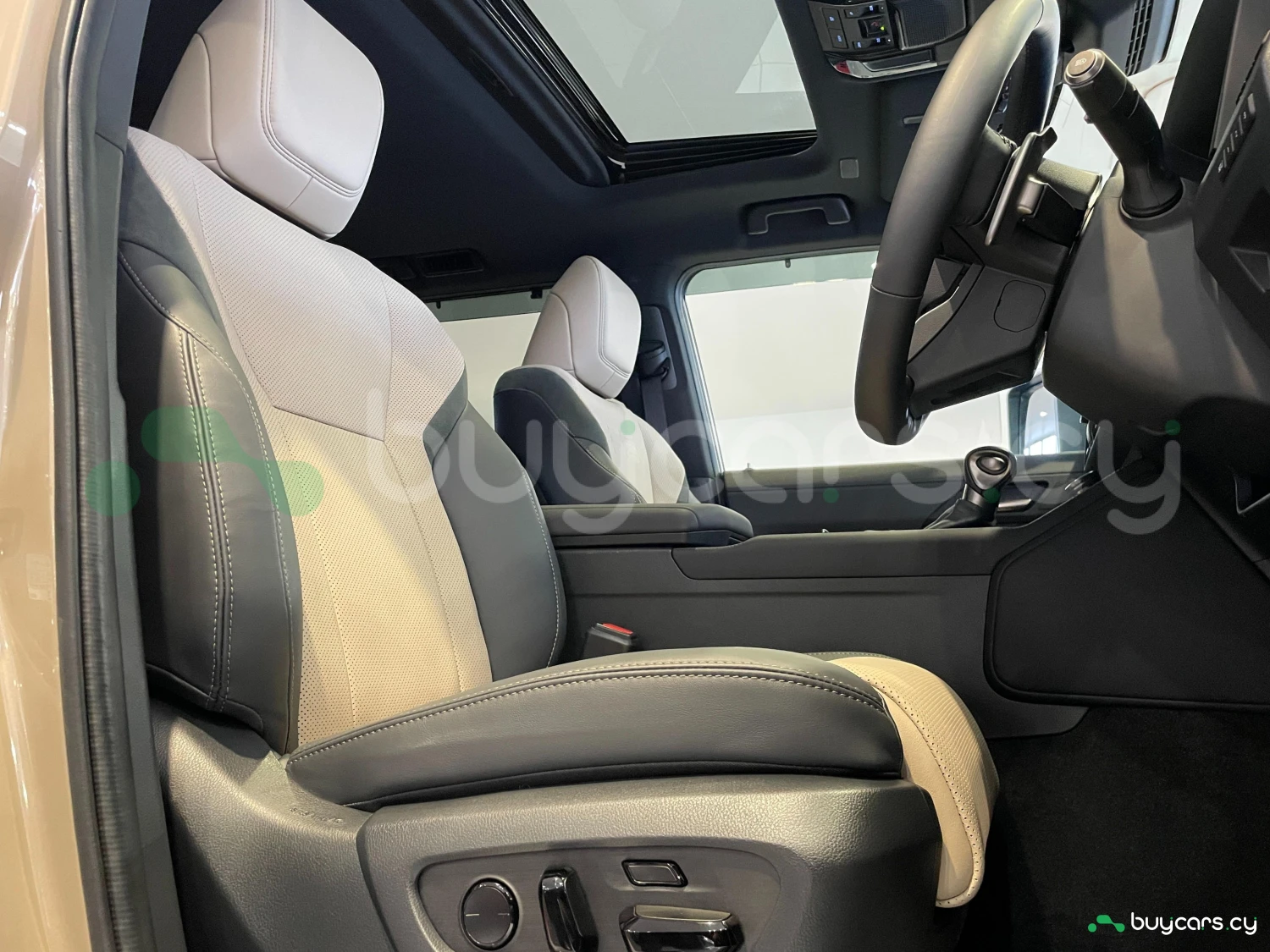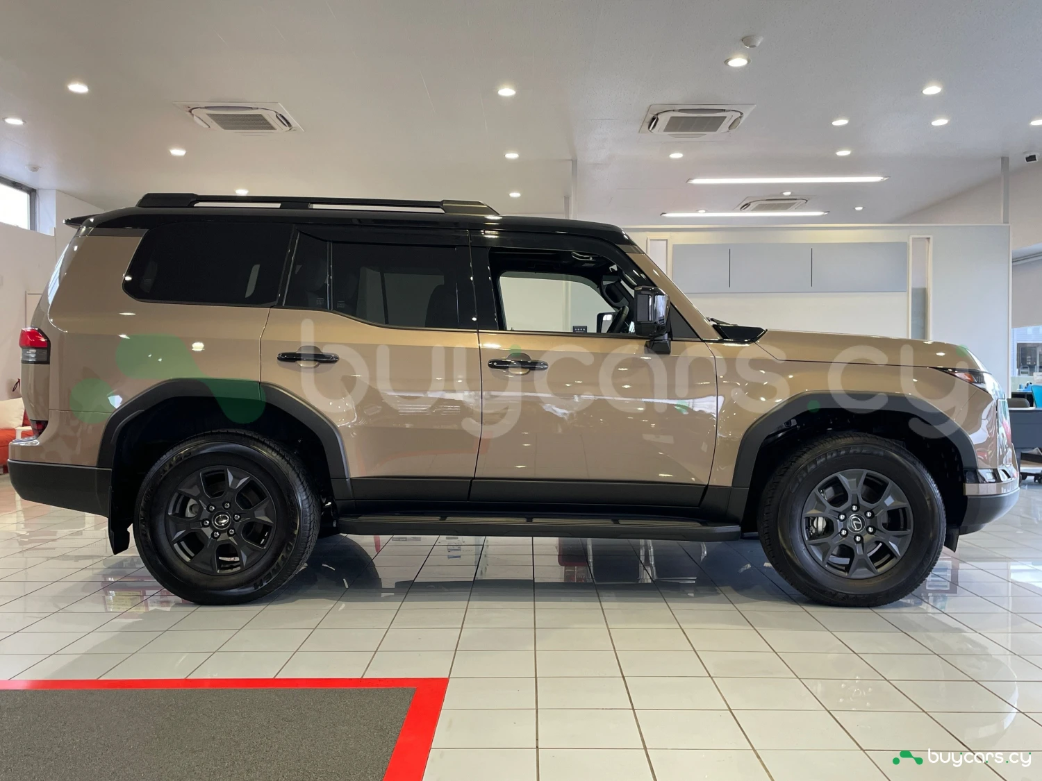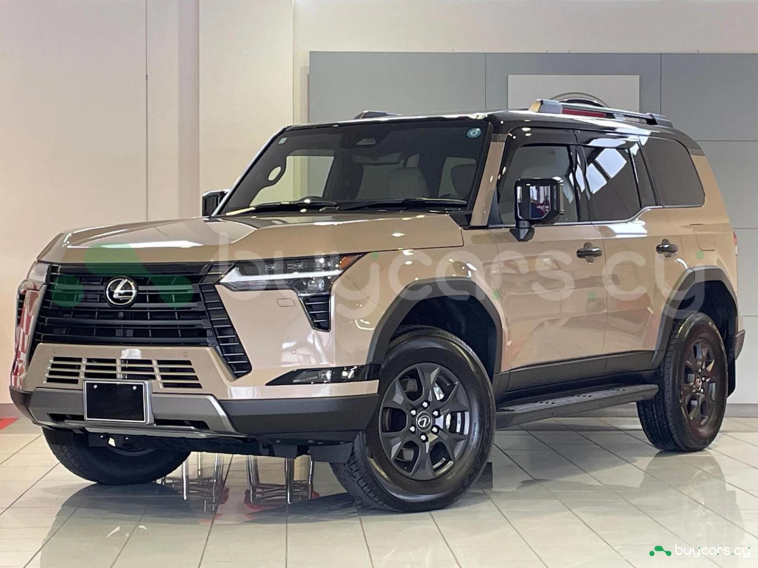 Finished in Moon Desert & Black, the GX550 Overtrail+ stands out with its bold SUV design. Triple LED headlights, aluminum wheels, roof rails, moonroof, and rugged styling elements emphasize both luxury and off-road readiness.