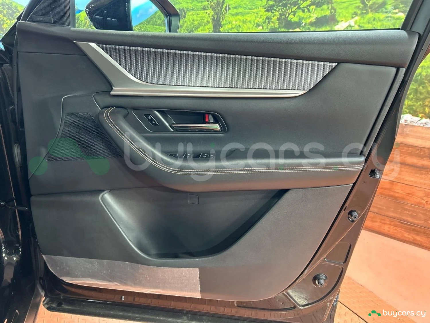 This model is an off-road SUV finished in Jet Black Mica. Its exterior appearance is clean and substantial.