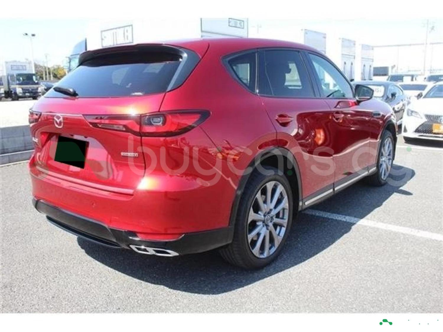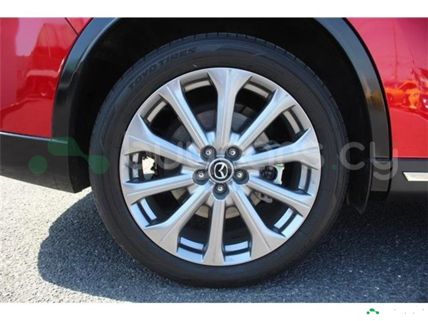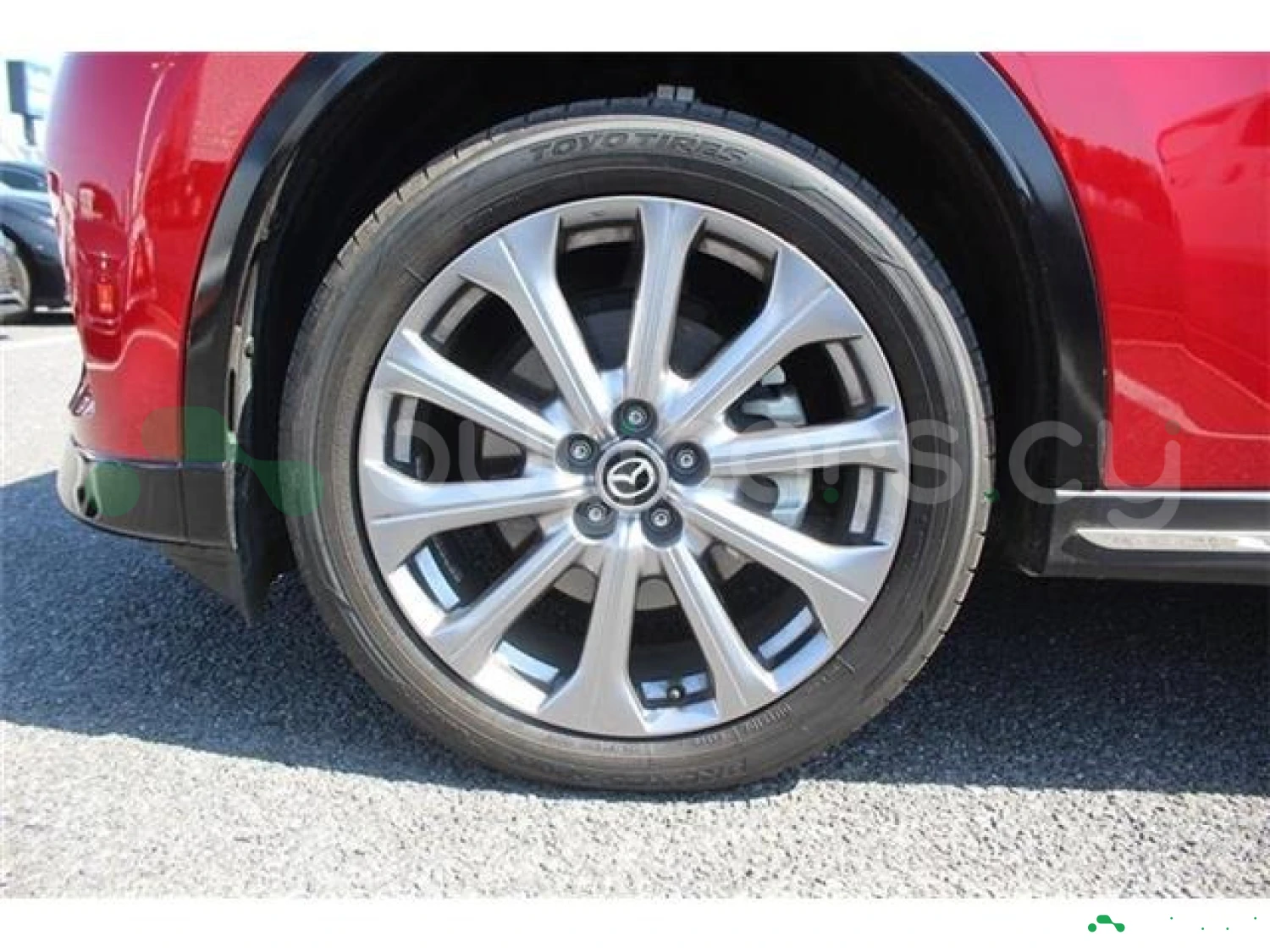 This model is an off-road SUV finished in Soul Red Crystal Metallic. Its exterior appearance is clean and substantial.