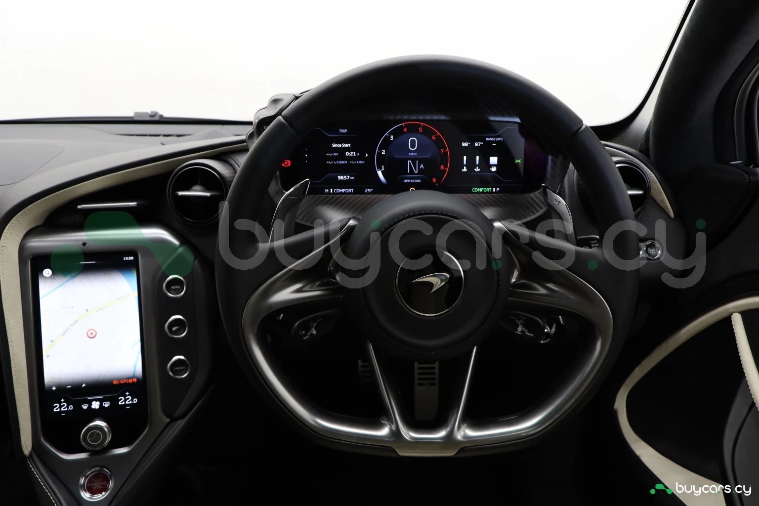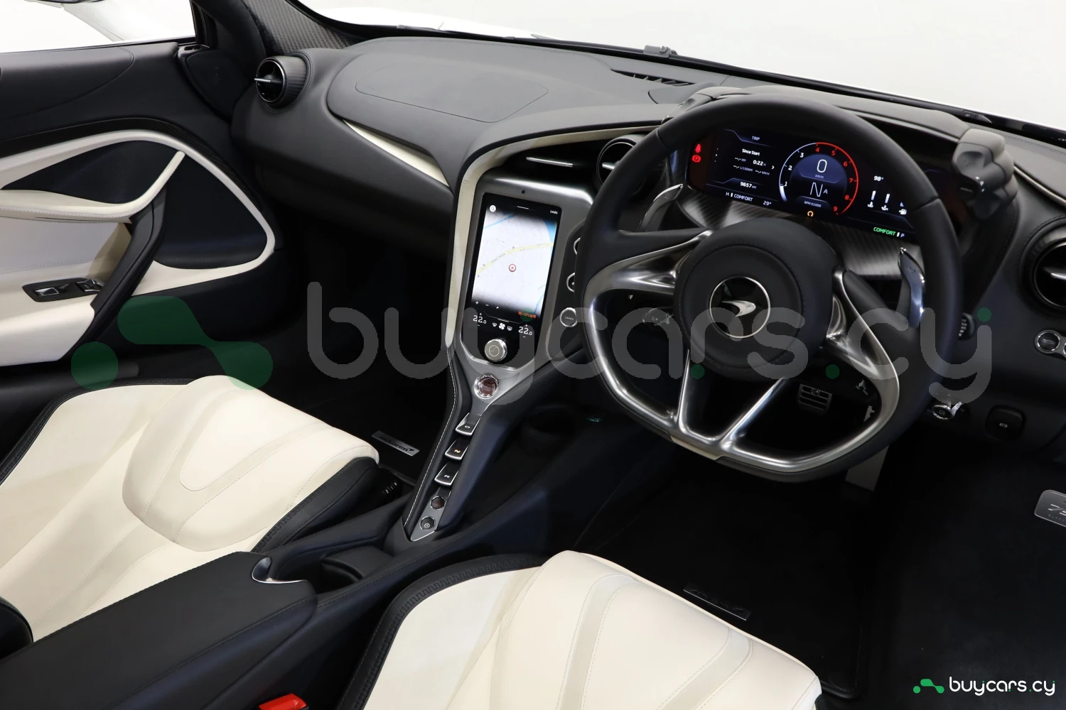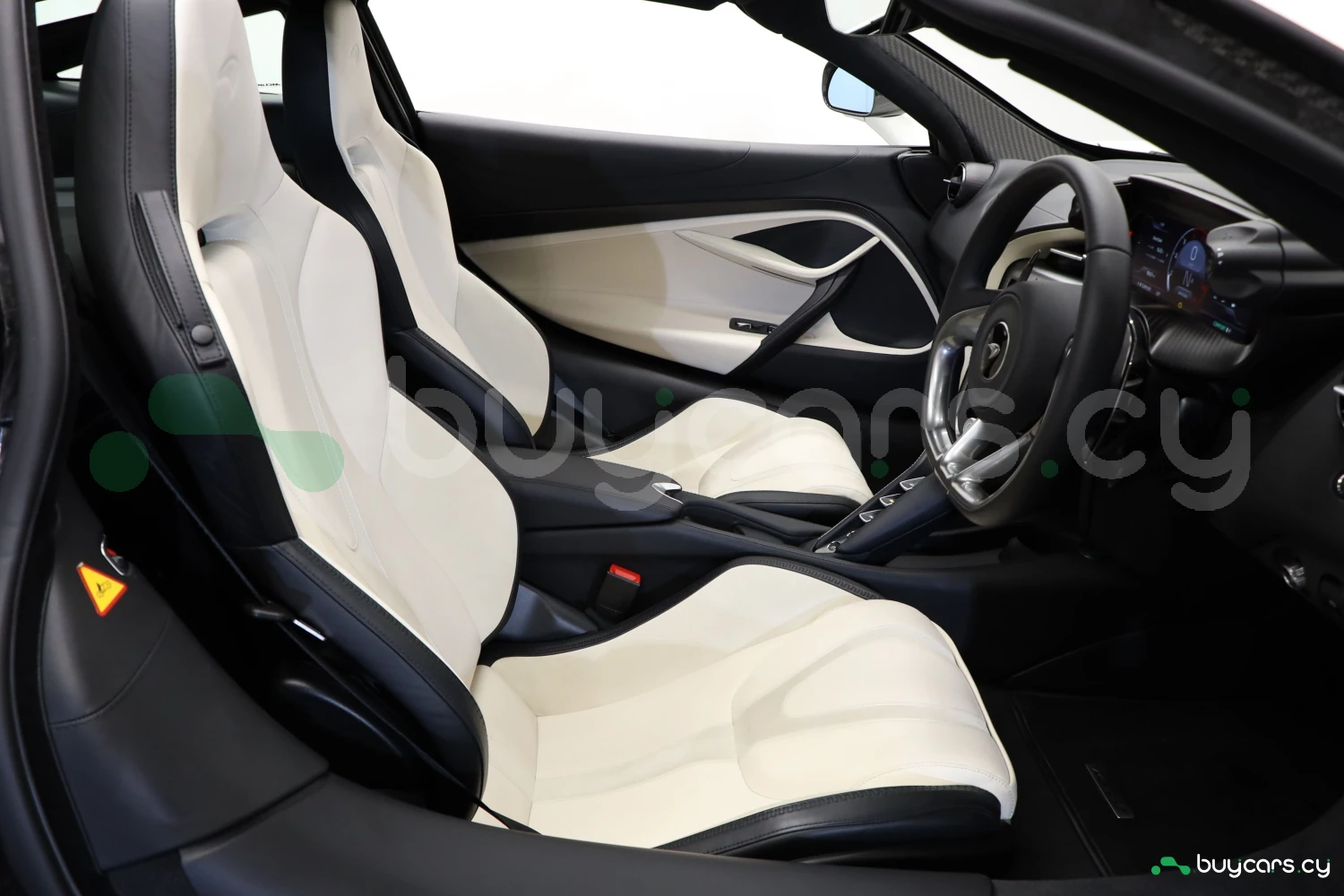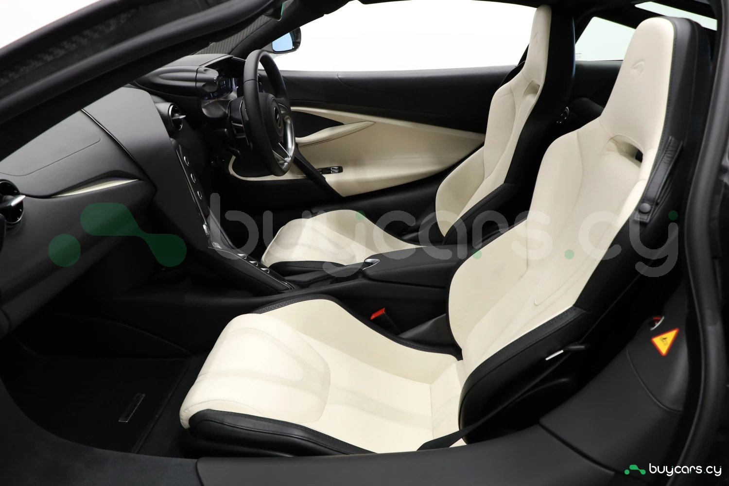 The interior accommodates 2 people in a driver-focused layout. The cabin provides a refined and performance-oriented environment.
