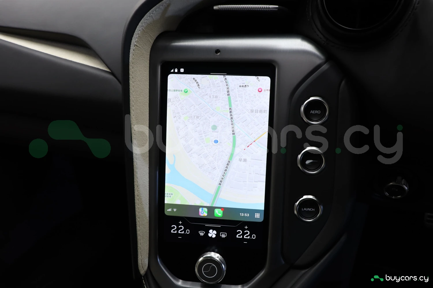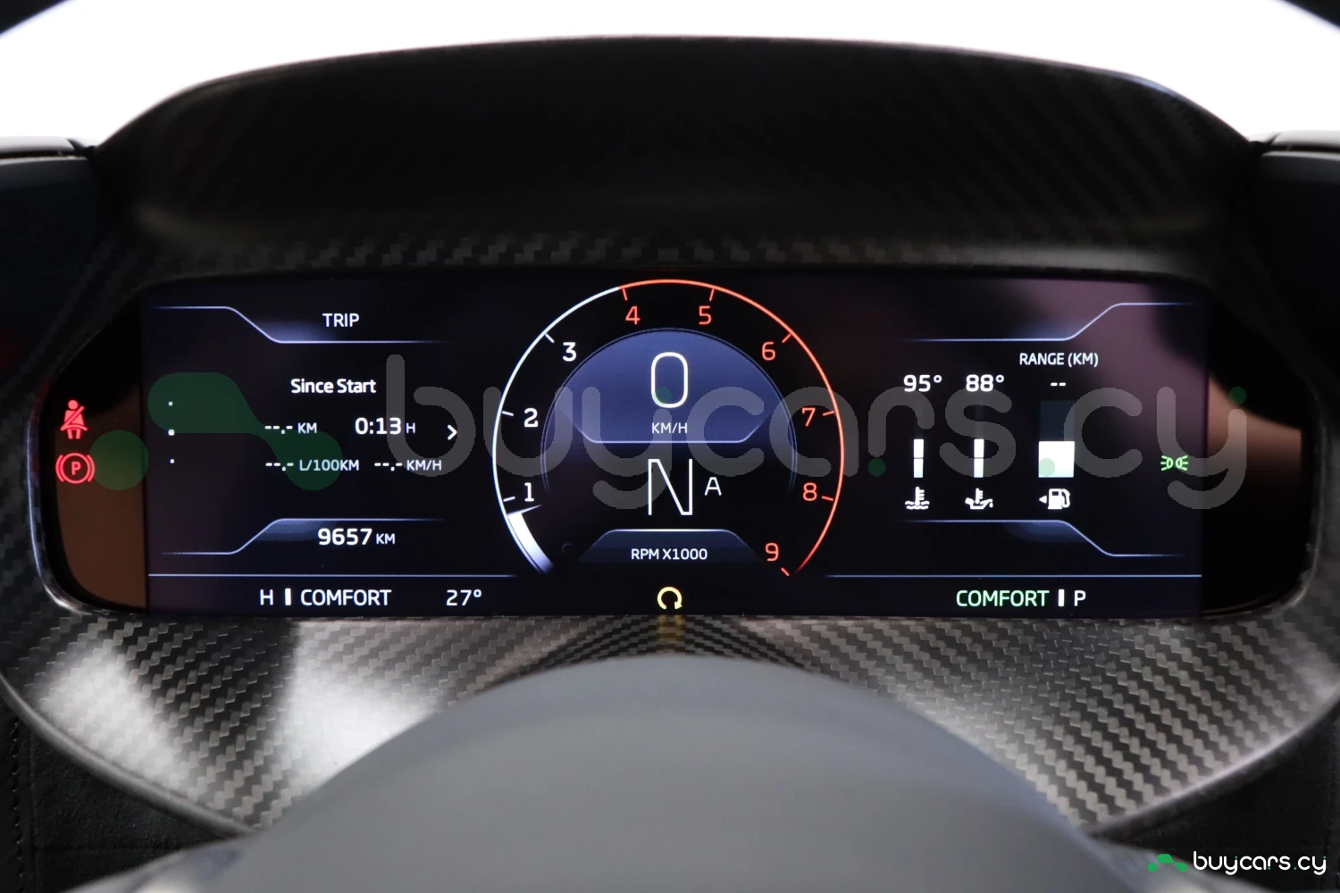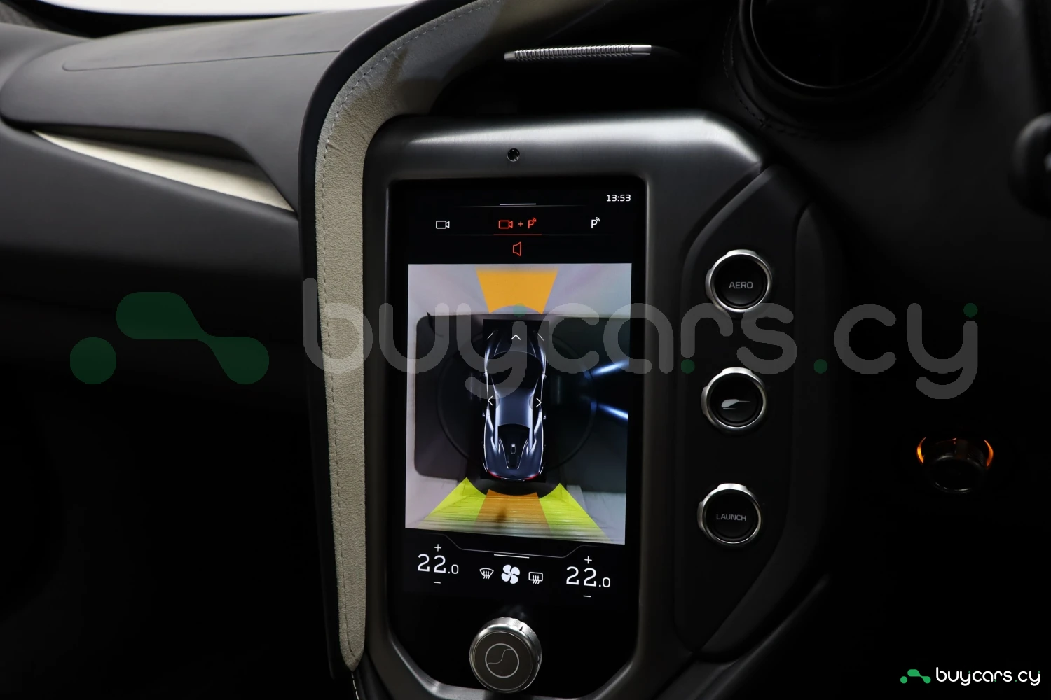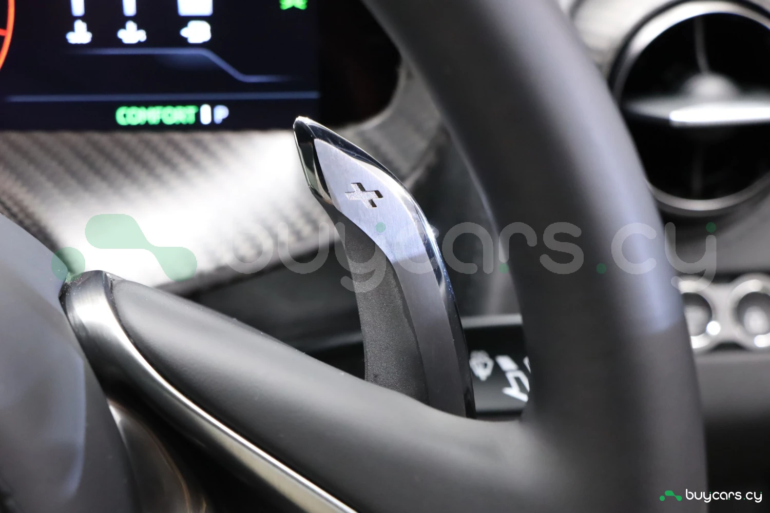 The interior accommodates 2 people in a driver-focused layout. The cabin provides a refined and performance-oriented environment.