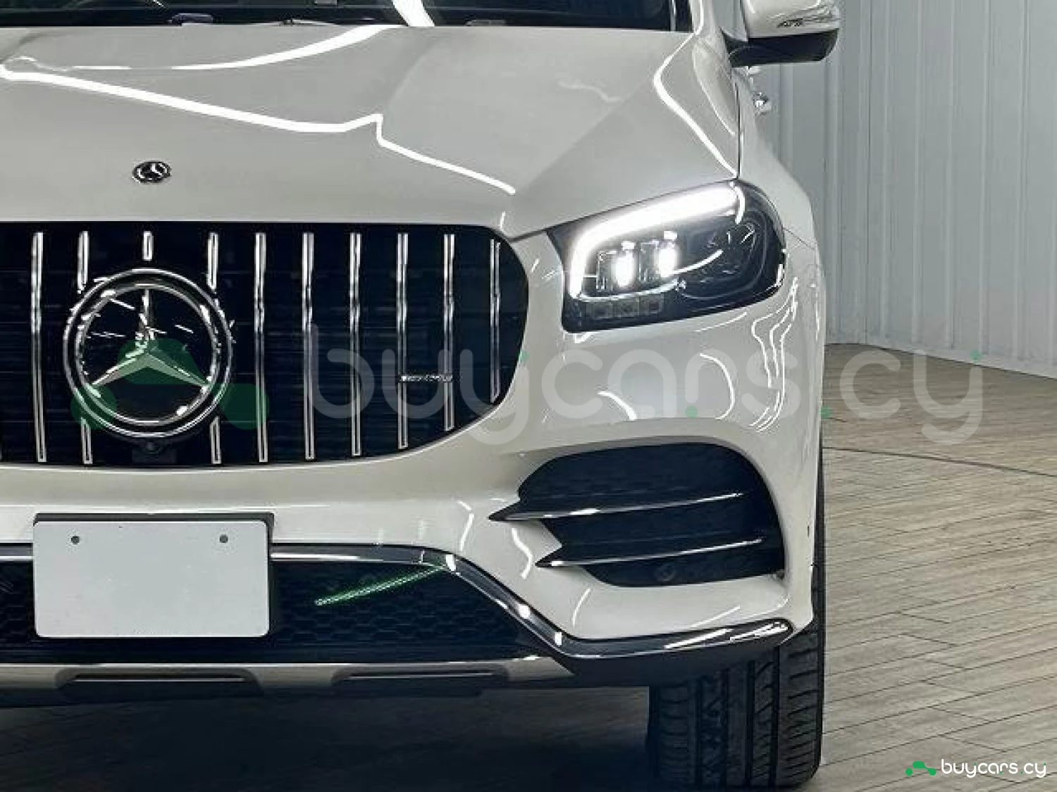 The Diamond White paint is paired with the AMG Line package, which includes aggressive bumpers, side skirts, and 21-inch AMG alloy wheels for a commanding road presence. LED headlights, chrome accents, and bold proportions further enhance its luxury appeal. The design emphasizes both strength and sophistication, ideal for both city streets and long-distance cruising.