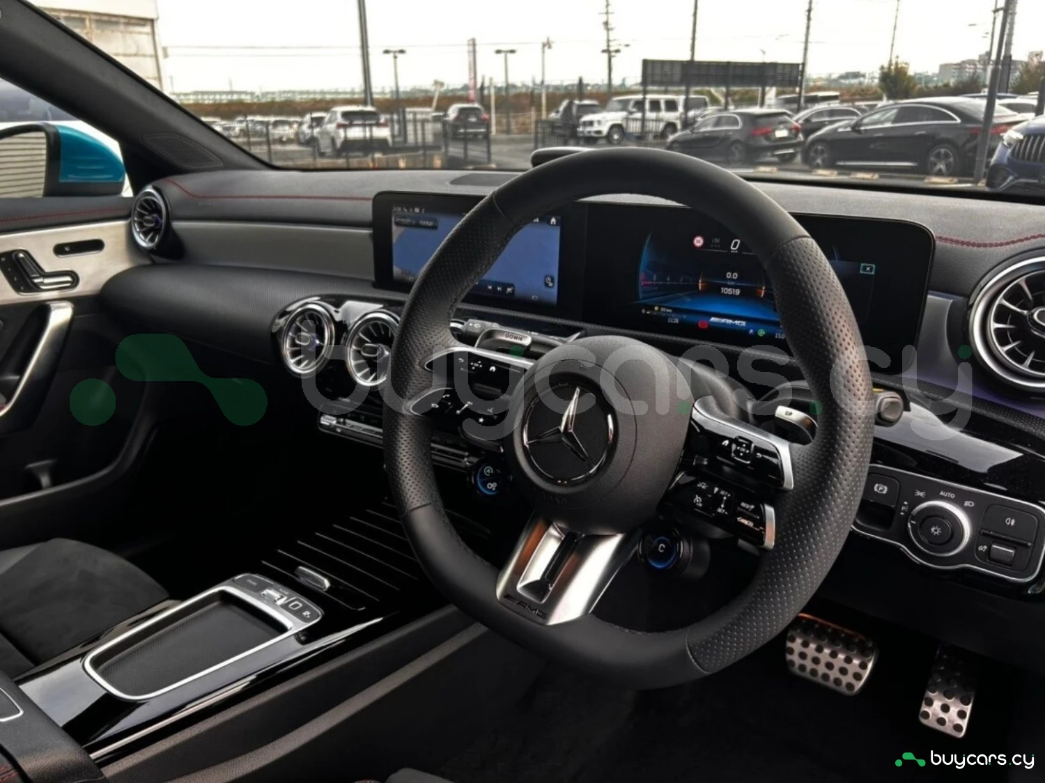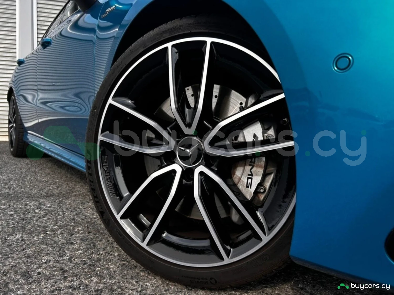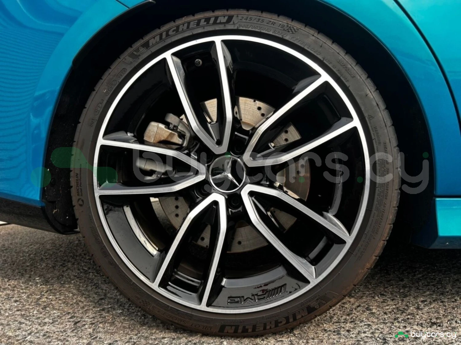 The exterior is finished in Hyper Blue Metallic, complemented by multi-beam LED headlights and genuine 19-inch alloy wheels. AMG styling elements highlight the sporty character, while functional features such as automatic high beam enhance usability.