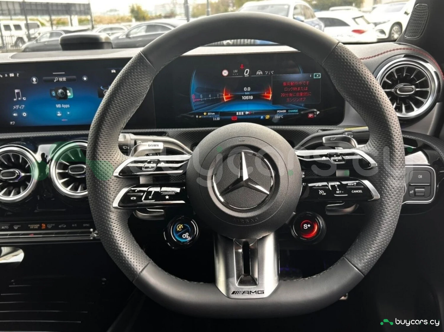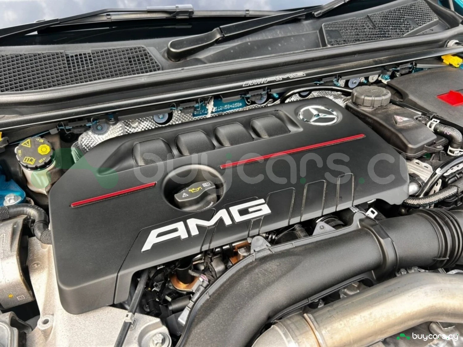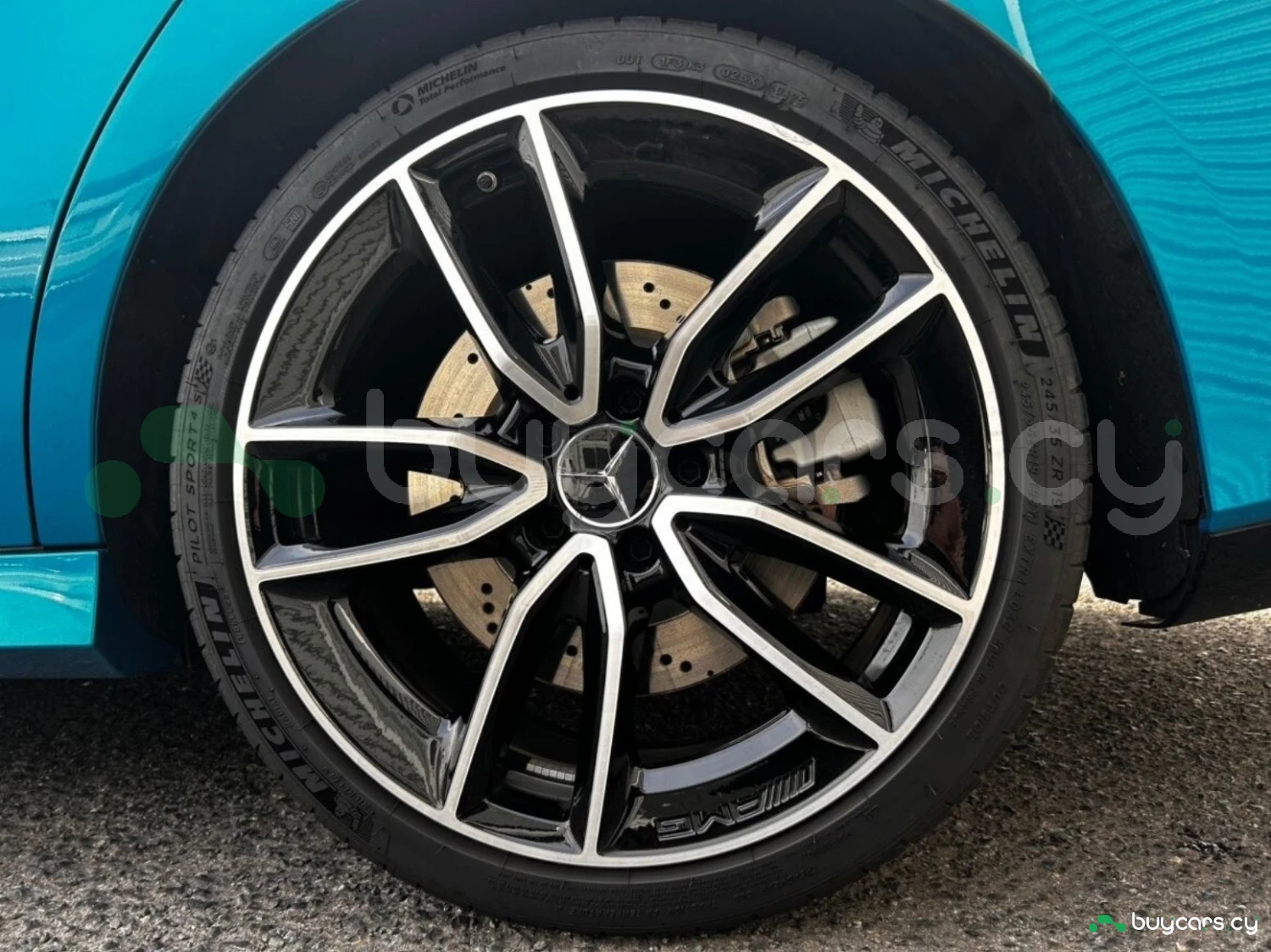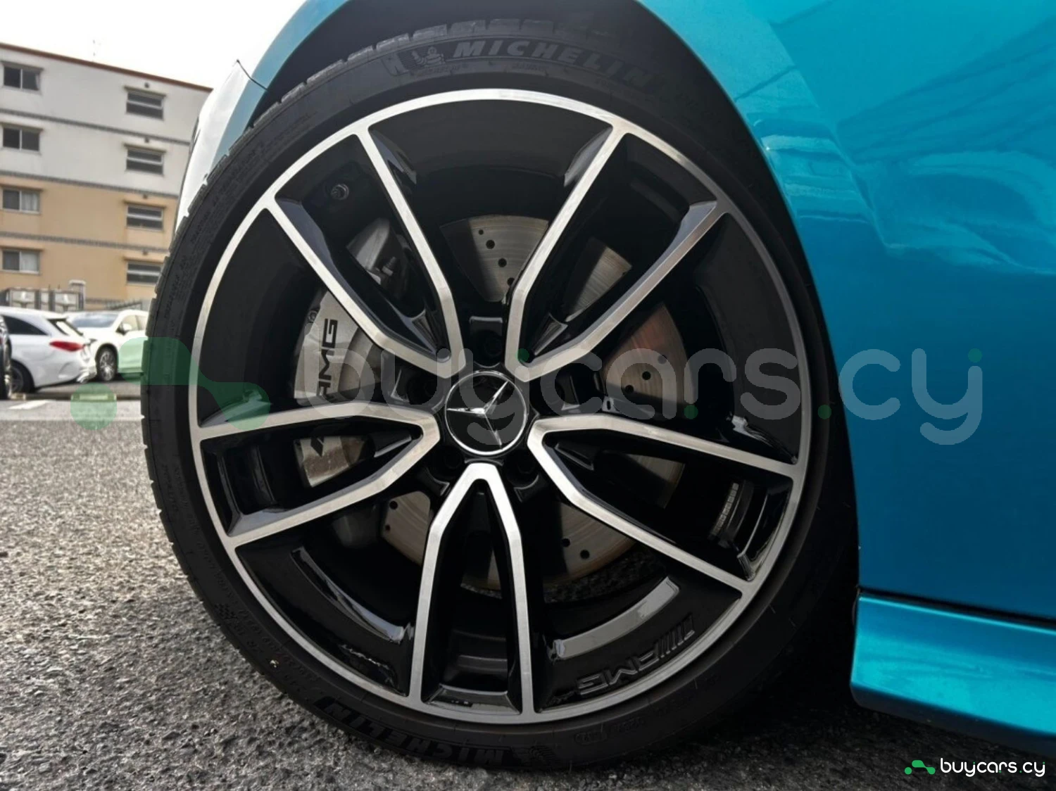The exterior is finished in Hyper Blue Metallic, complemented by multi-beam LED headlights and genuine 19-inch alloy wheels. AMG styling elements highlight the sporty character, while functional features such as automatic high beam enhance usability.