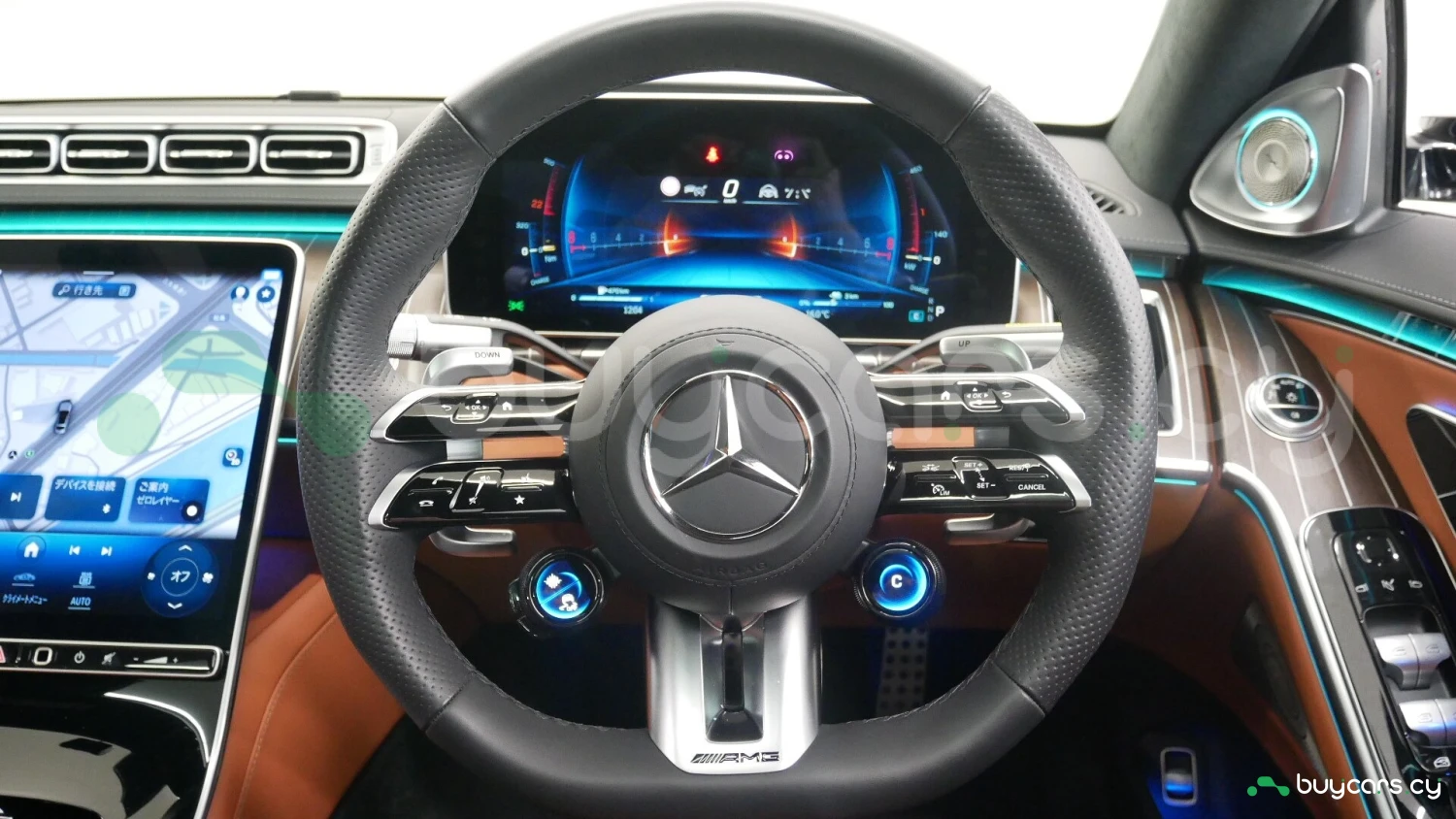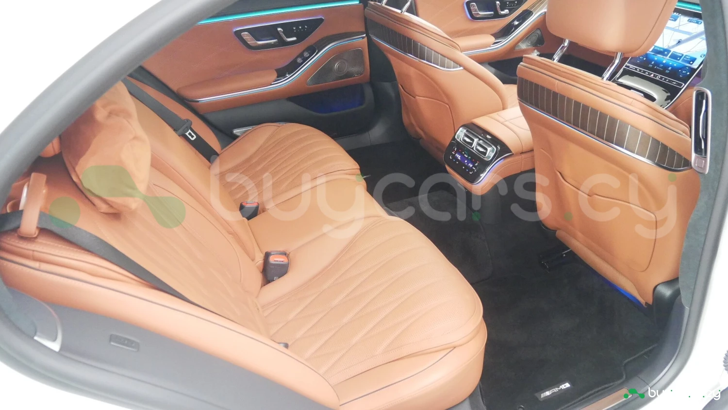 Inside, the S 63 E Performance offers a luxurious cabin with AMG-specific touches. Standard features include Nappa leather upholstery, heated and ventilated front and rear seats, MBUX infotainment system with dual displays, and a Burmester® 3D surround sound system. The rear seats provide ample legroom, and optional executive packages enhance passenger comfort with features like reclining seats and massage functions.