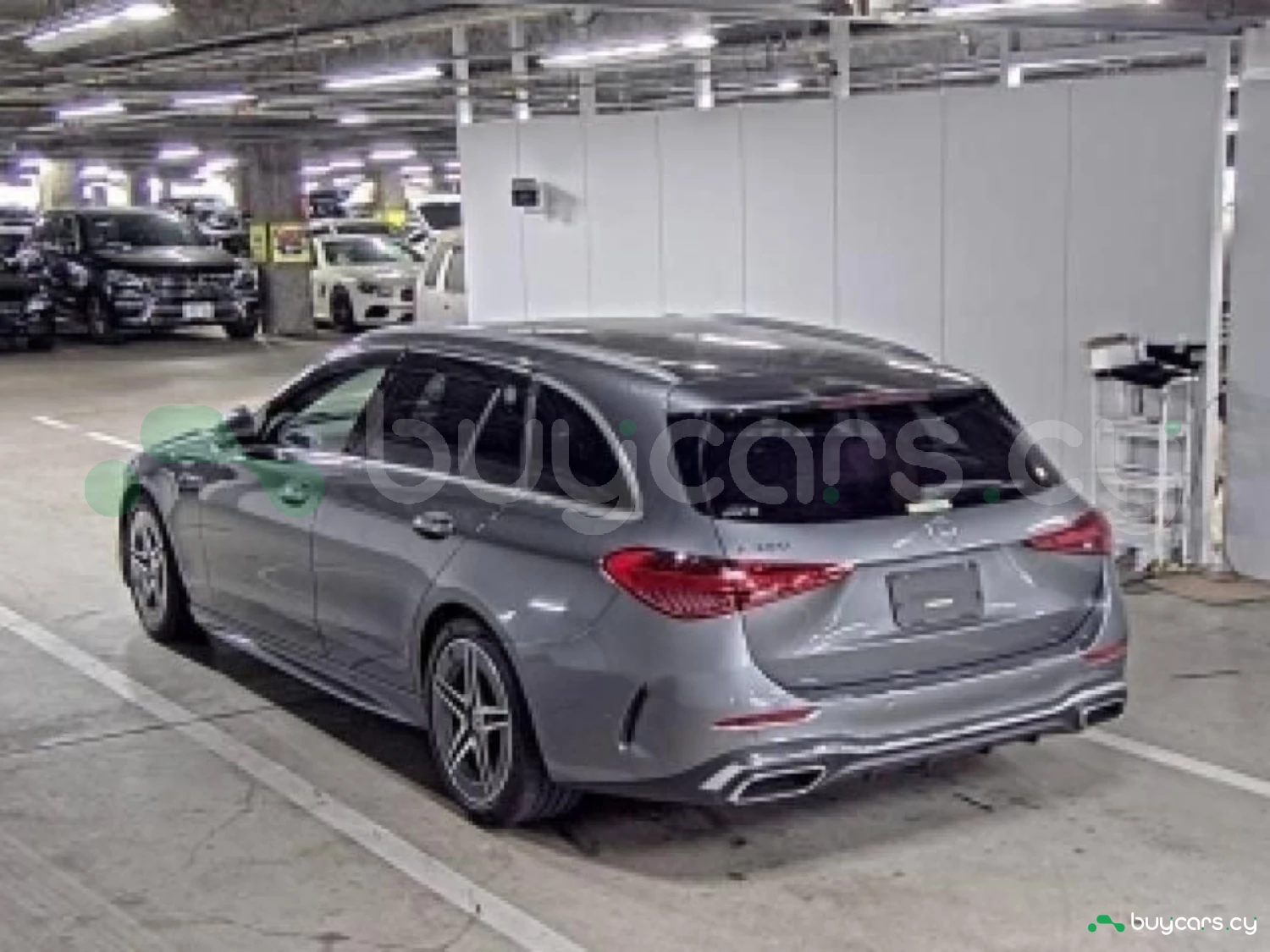 The 2022 Mercedes-Benz C-Class Station Wagon C180 in grey combines elegance and dynamism. With its characteristic AMG front grille, sculpted side skirts, and 19-inch AMG multi-spoke wheels, it grabs attention on the road. These elements highlight the car's sporty character while maintaining a refined aesthetic.
