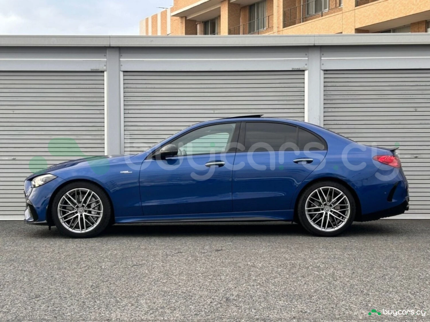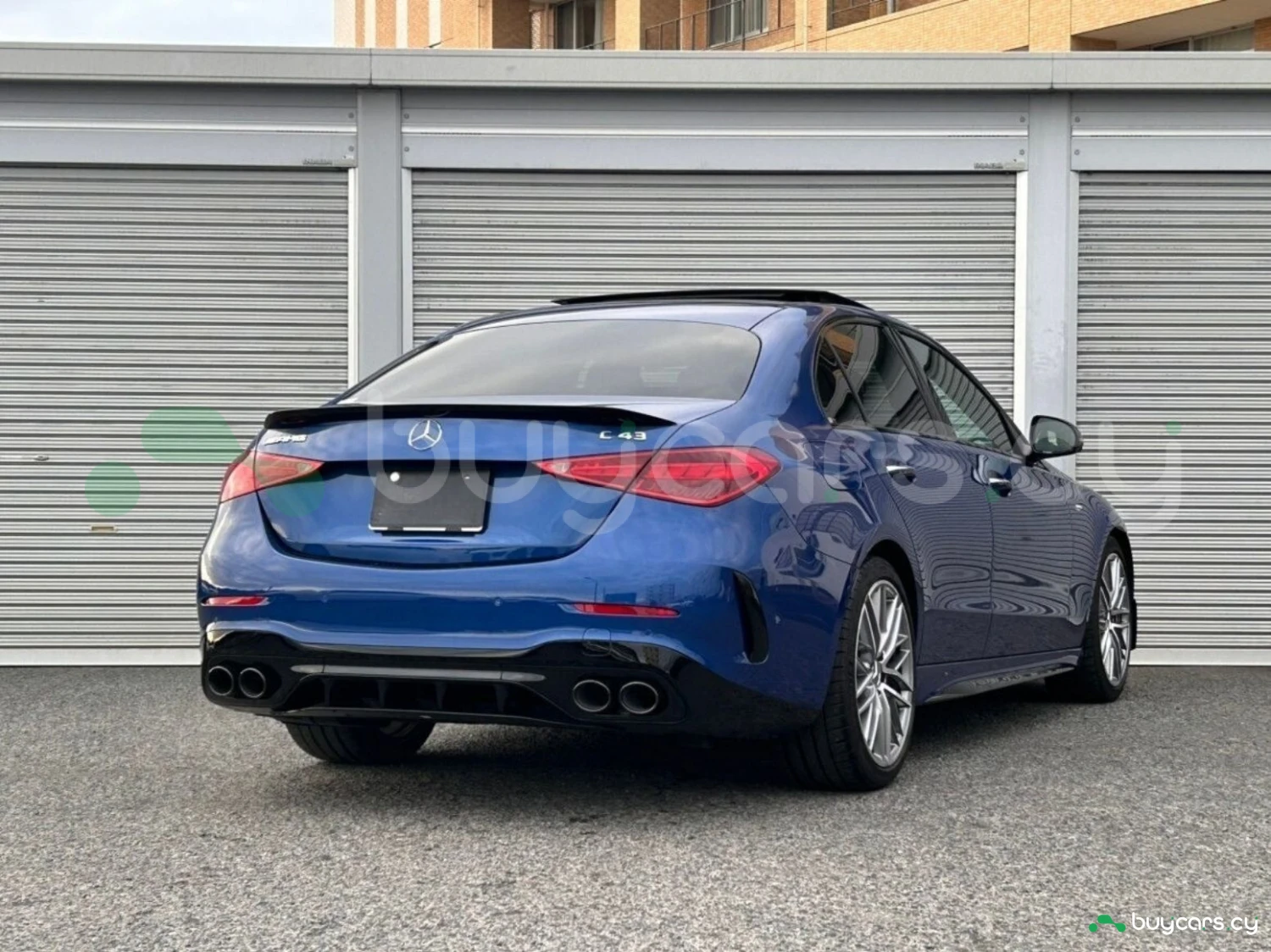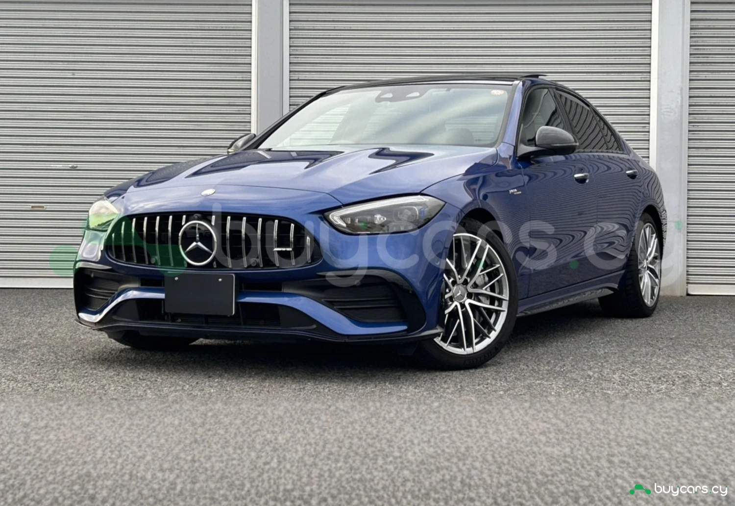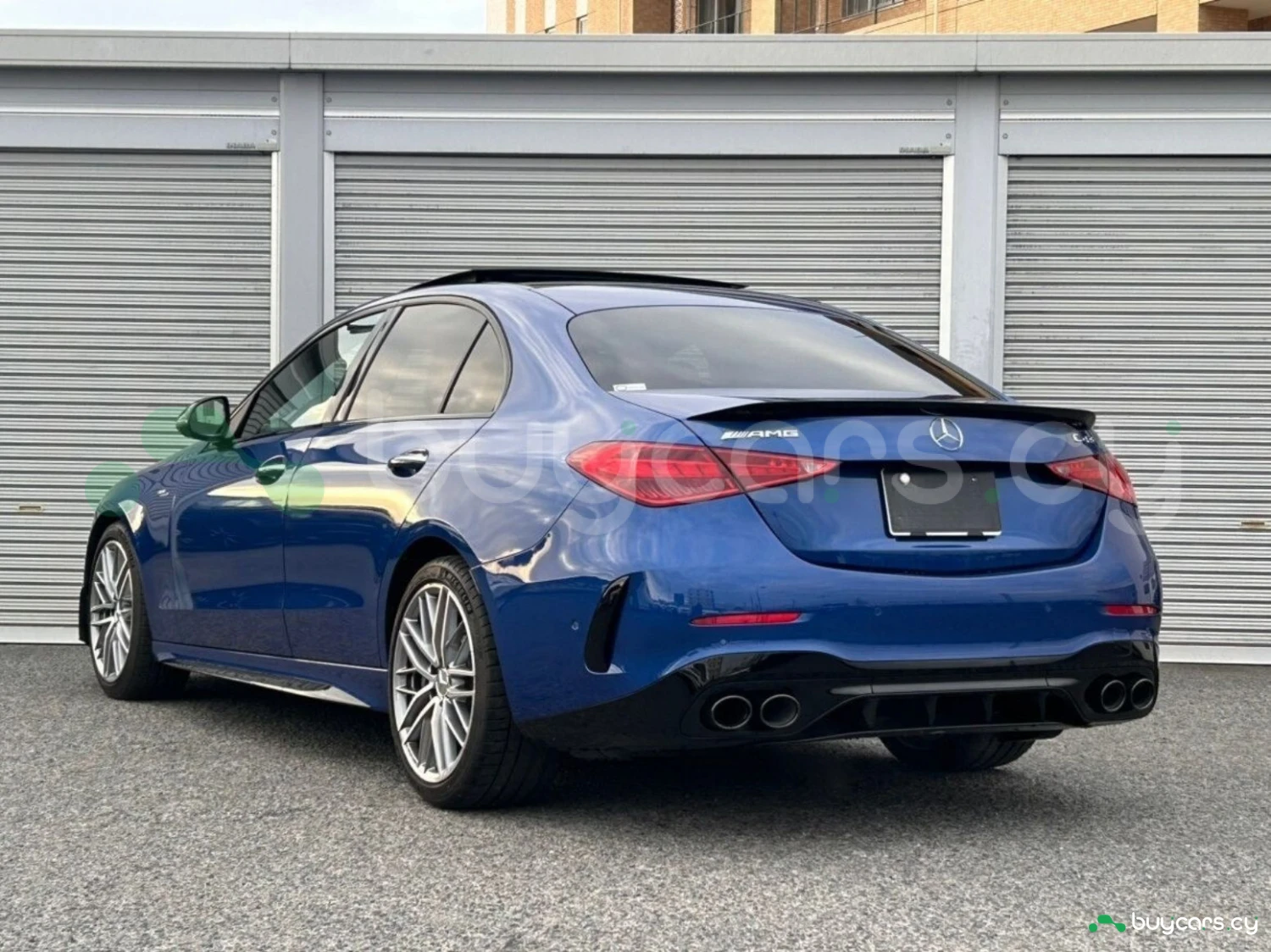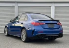 The striking Spectral Blue Metallic finish highlights the dynamic lines and athletic stance of the Mercedes-AMG C 43. AMG styling elements, adaptive LED headlights, and stylish aluminum wheels enhance its sporty character, while the panoramic sliding roof adds elegance and sophistication to this high-performance sedan.