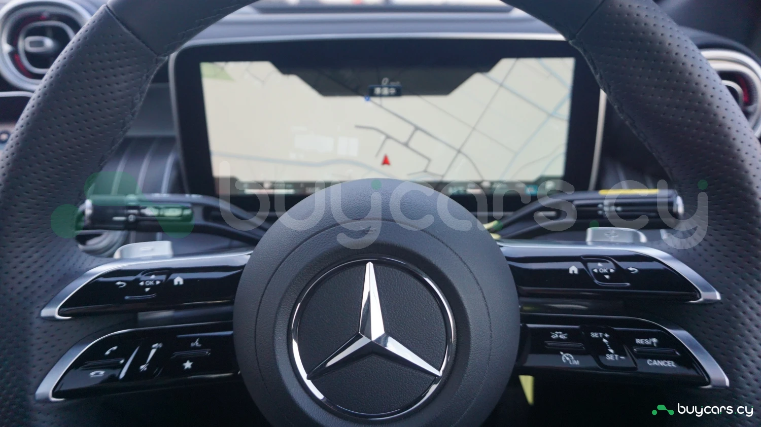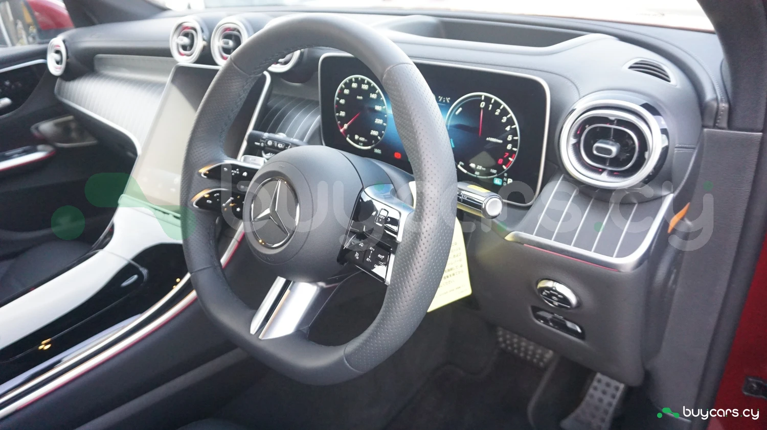 The cabin is appointed with high-grade materials under the AMG Exclusive Package, including premium leather upholstery, AMG-styled trim, and customizable ambient lighting. A fully digital instrument cluster complements the central MBUX touchscreen infotainment system, supporting navigation, Apple CarPlay, Android Auto, and voice control via "Hey Mercedes." Additional features include heated and power-adjustable front seats, dual-zone automatic climate control, and a multifunction AMG steering wheel.