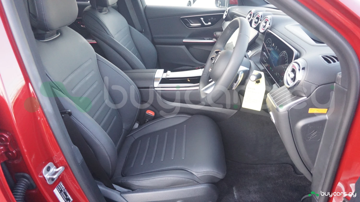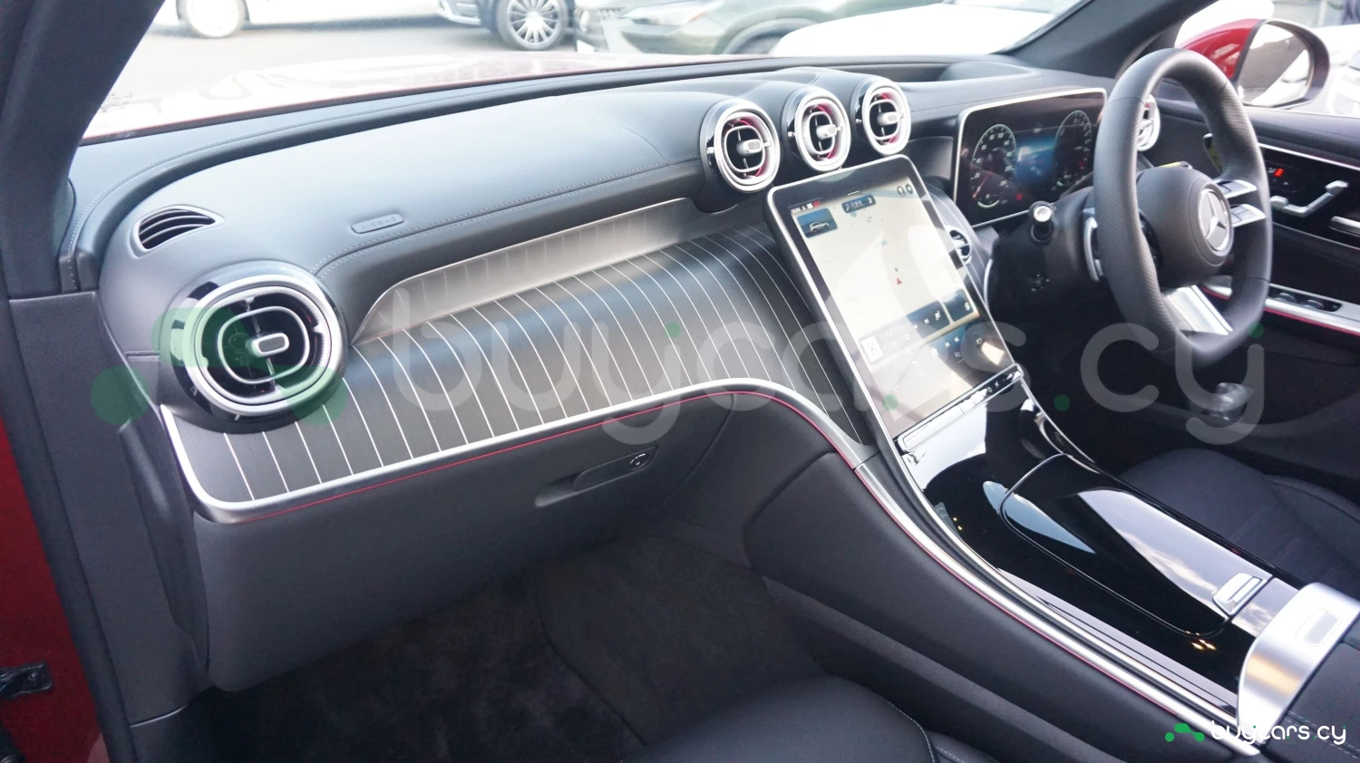 In Patagonia Red metallic, the GLC 350 e commands attention with its AMG styling cues—distinctive front bumper, chrome accents, and either 19- or 20-inch AMG alloy wheels. LED High Performance headlights and LED taillights enhance visibility and aesthetics, while subtle hybrid badging emphasizes its efficiency. The design balances muscular SUV proportions with coupe-like refinement.