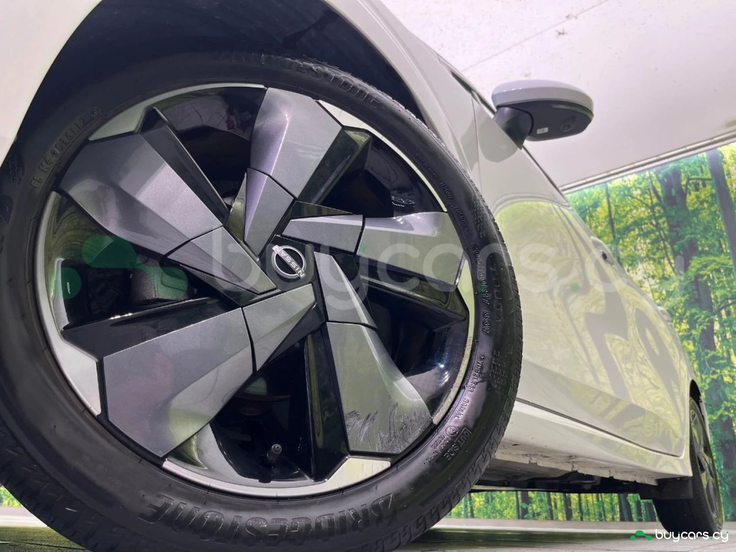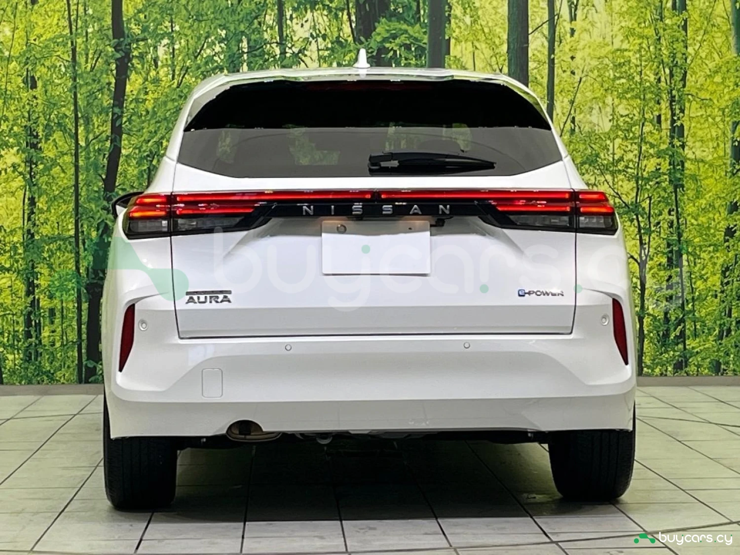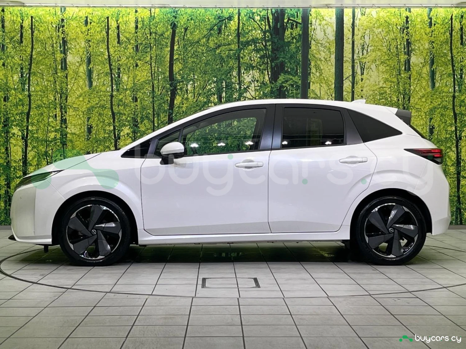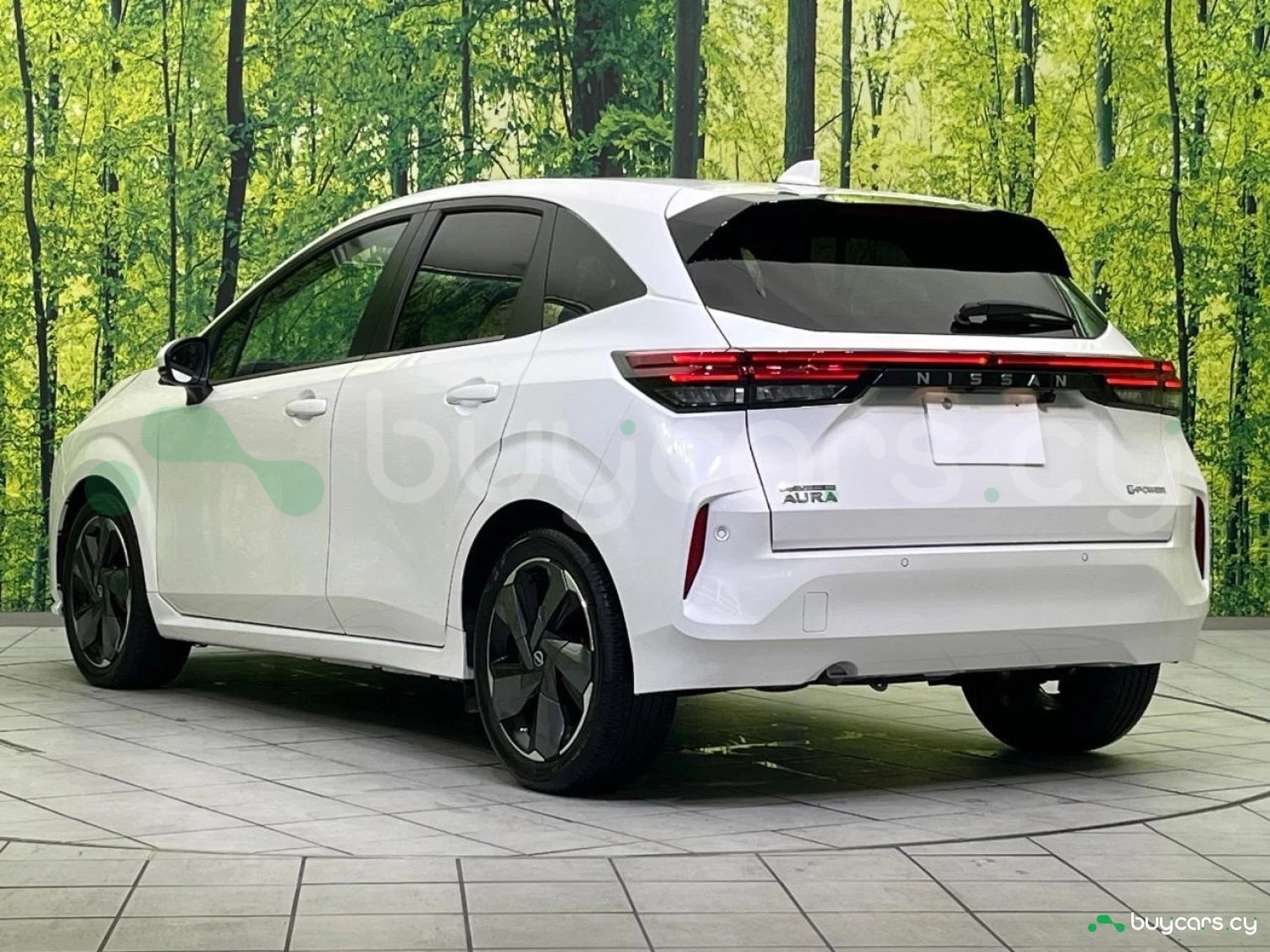 This Nissan Aura is finished in Pure White Pearl, giving it a refined and premium look. The compact hatchback body combines sleek lines with aerodynamic proportions, making it both stylish and practical for urban and long-distance driving.