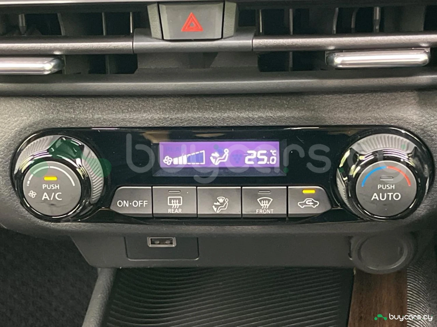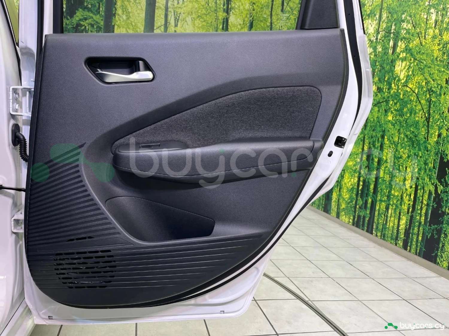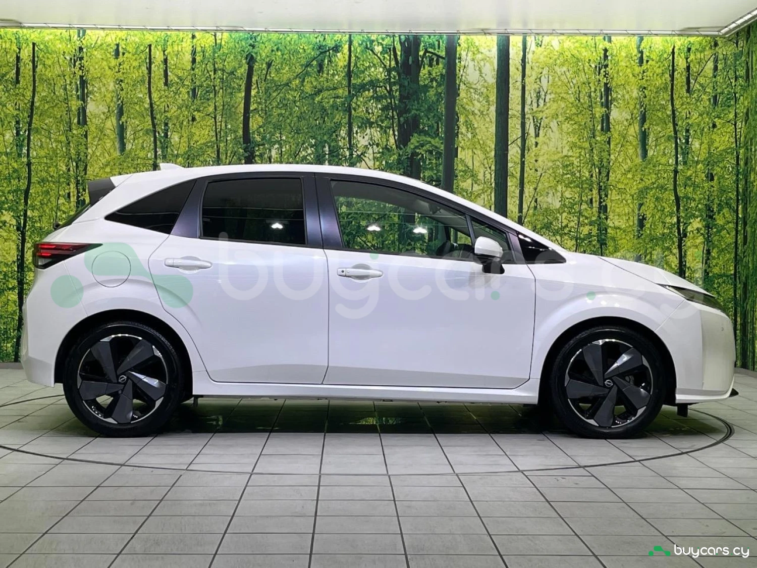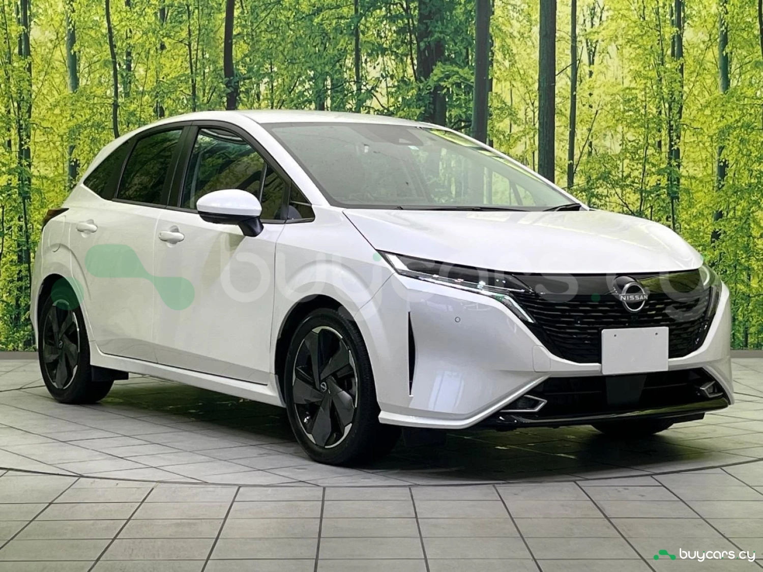 This Nissan Aura is finished in Pure White Pearl, giving it a refined and premium look. The compact hatchback body combines sleek lines with aerodynamic proportions, making it both stylish and practical for urban and long-distance driving.