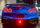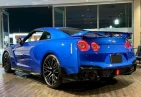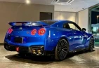 The GT-R’s exterior showcases aggressive yet refined styling, highlighted by aerodynamic bodywork, LED lighting, lightweight alloy wheels, and signature GT-R design cues. The striking Wangan Blue paint emphasizes its muscular lines, while privacy glass and meticulous detailing enhance its sporty and premium presence.
