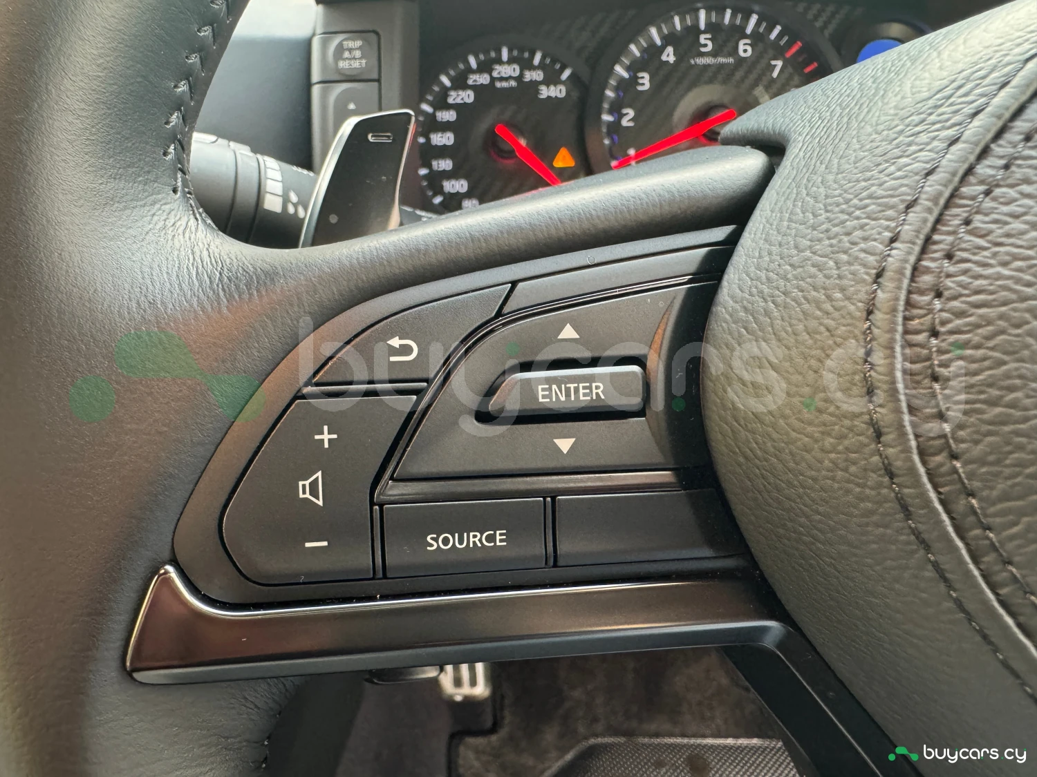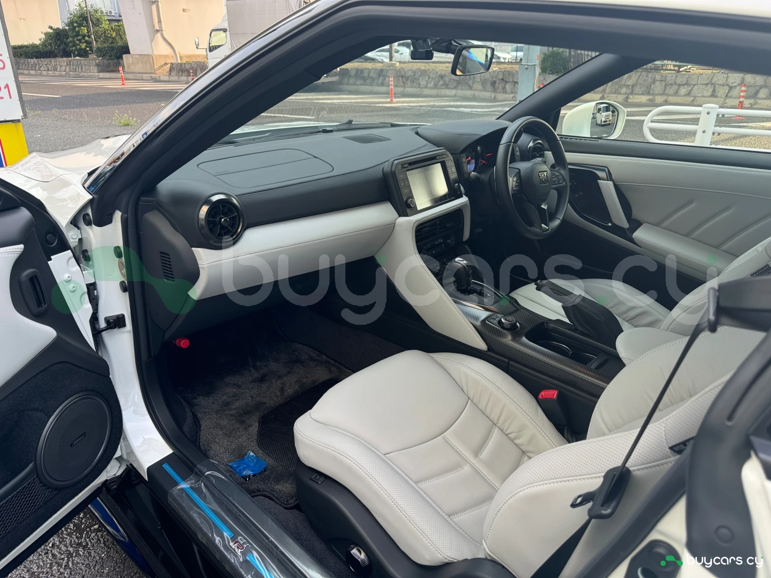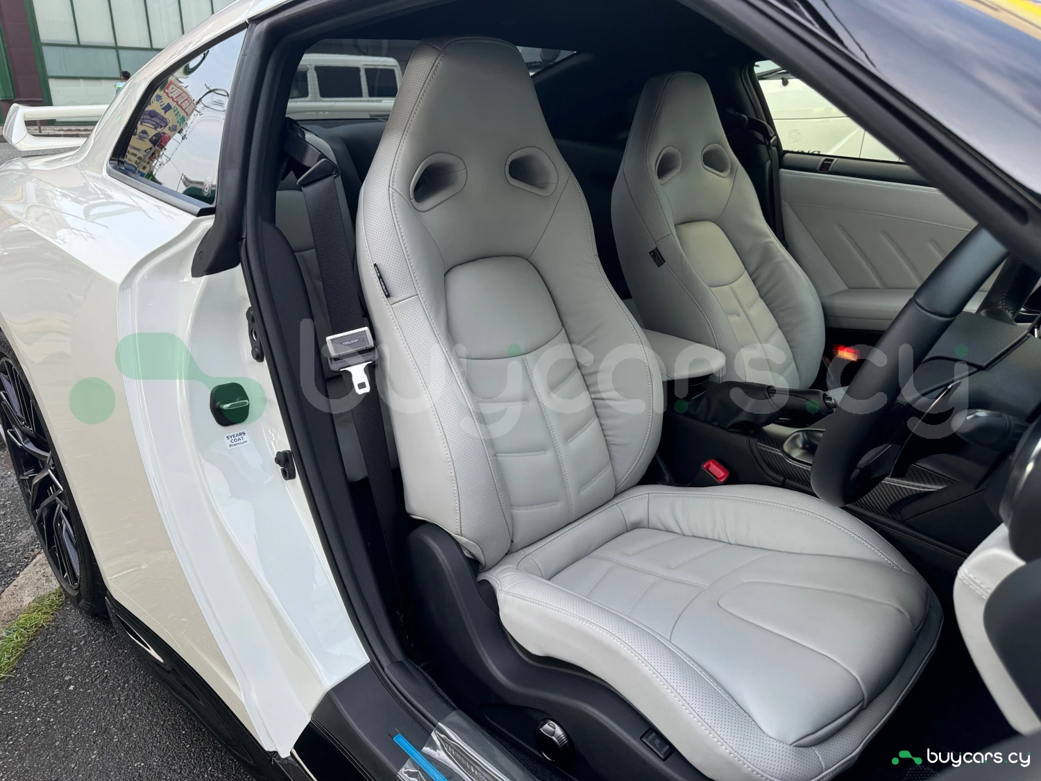 The interior combines modern luxury with a racing spirit. The cabin features light gray genuine leather power seats, smart key access, push-button start, and a multifunction steering wheel. With a focus on driver engagement and refined comfort, the GT-R provides a premium atmosphere for both daily drives and spirited runs.