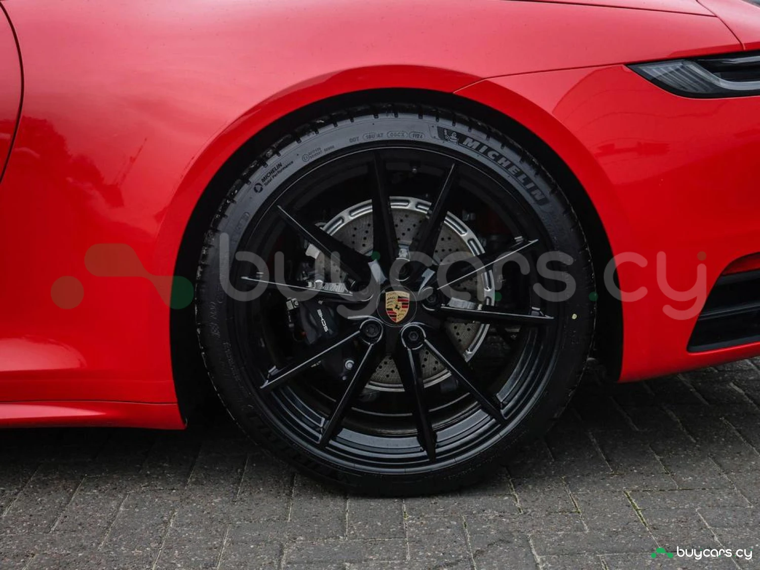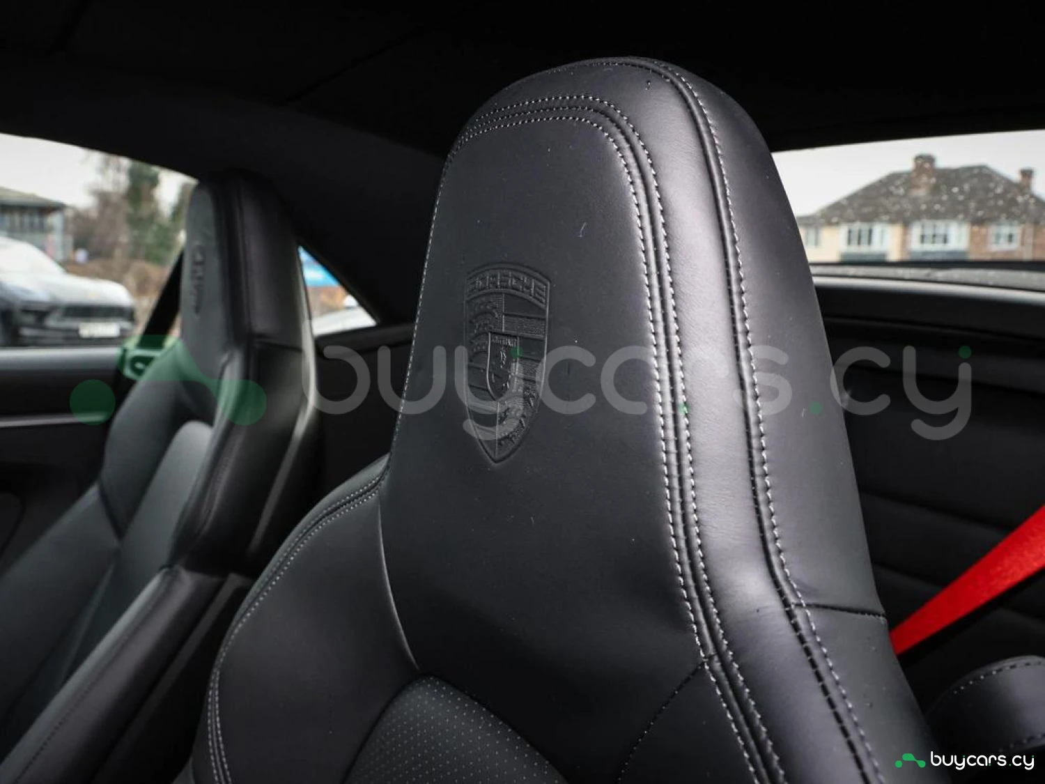 Interior: Porsche Crest on headrests, seat belts in Guards Red, rev counter in Guards Red, Sport Chrono stopwatch dial in Guards Red, heated GT sports steering wheel in leather, sports seats Plus (4-way electric adjustment), storage package, windscreen with grey top-tint.