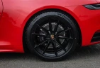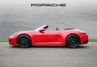 Exterior: Guards Red solid paint, 20-/21-inch Carrera S wheels, wheels painted in black (high-gloss), SportDesign side skirts, exclusive design taillights, slat inlays on rear lid painted in black (high-gloss), '911' logo in black (high-gloss), tinted LED matrix headlights with PDLS Plus, convertible top available in black, blue, brown, or red.