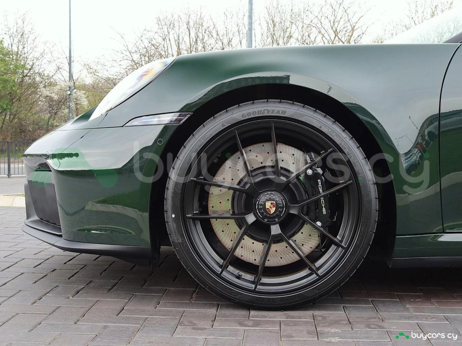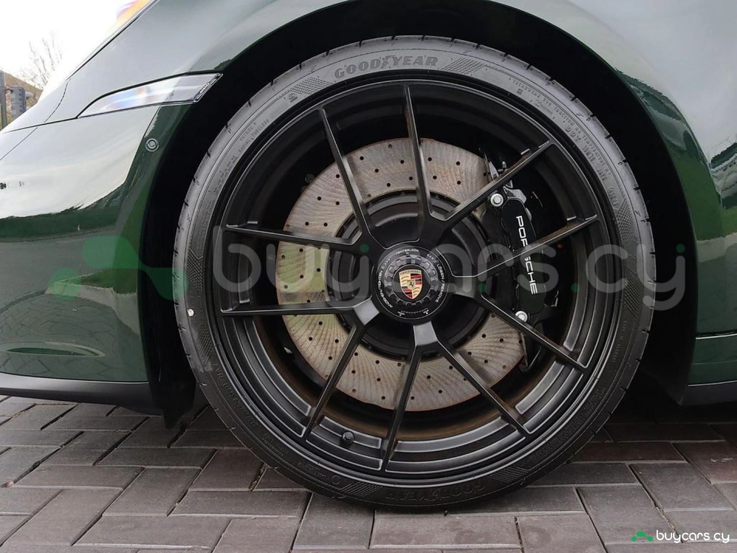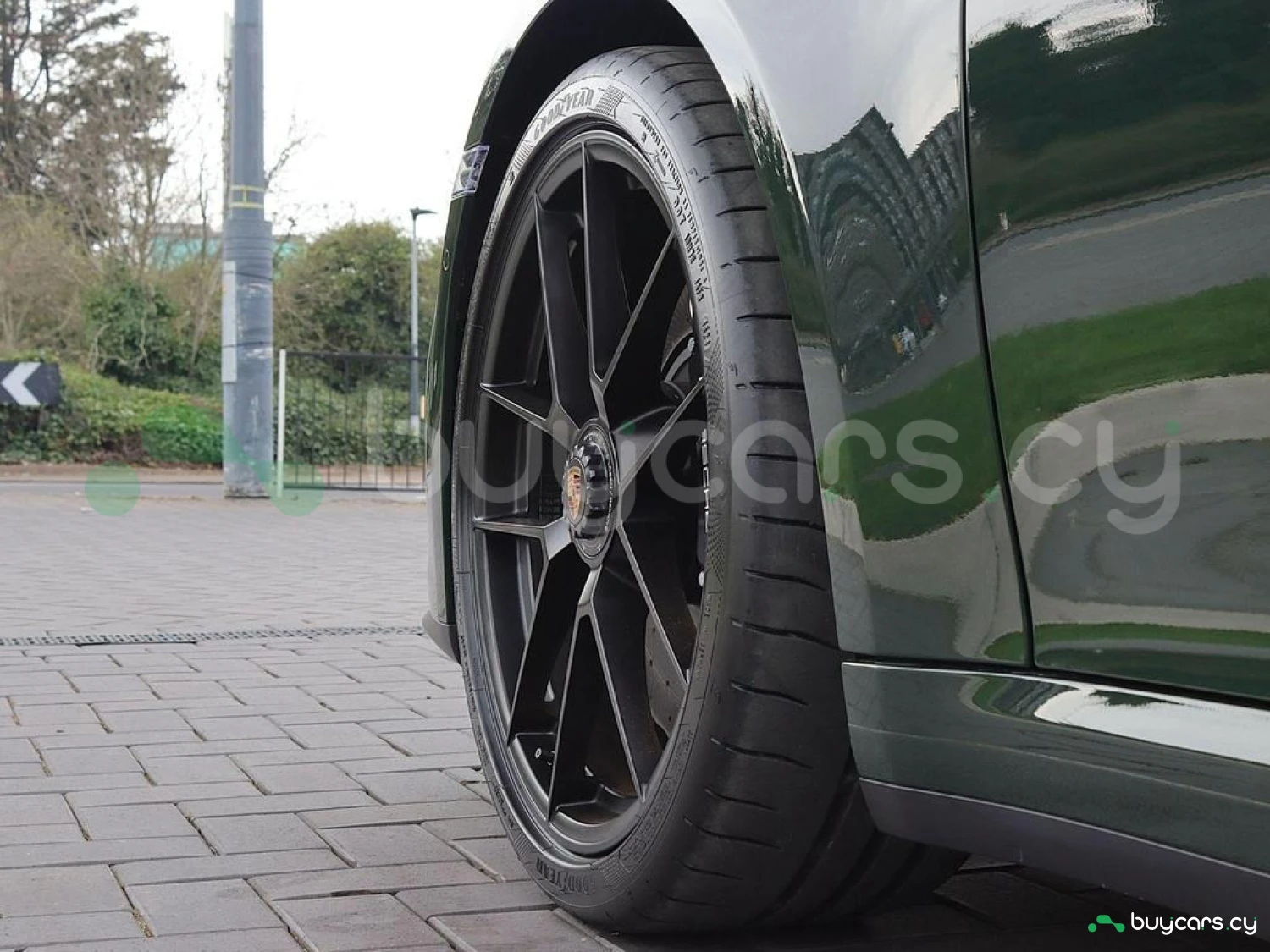 The cabin features 14-way power sports seats with memory (added extra), ventilated and heated front seats, and the Porsche Crest on headrests (added extra). Exclusive touches include the Carbon matt interior package, illuminated carbon door sills, ioniser, grey-tinted windscreen, and GT-style pedals and footrest. Deletion of the GTS logo on doors (added extra) gives it a sleek, understated look, while the Targa roll bar and other accents are finished in Satin Black.