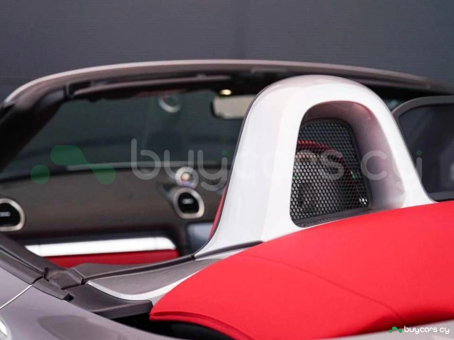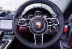 Safety Equipment: The vehicle is equipped with full-size airbags for the driver and front passenger, along with Porsche Side Impact Protection (POSIP) for enhanced safety. Porsche Stability Management (PSM) ensures optimal traction and stability in various driving conditions. The roll-over bars, painted in the exterior color, provide additional protection in case of an accident. ParkAssist (front and rear) with a reversing camera offers better visibility while parking.