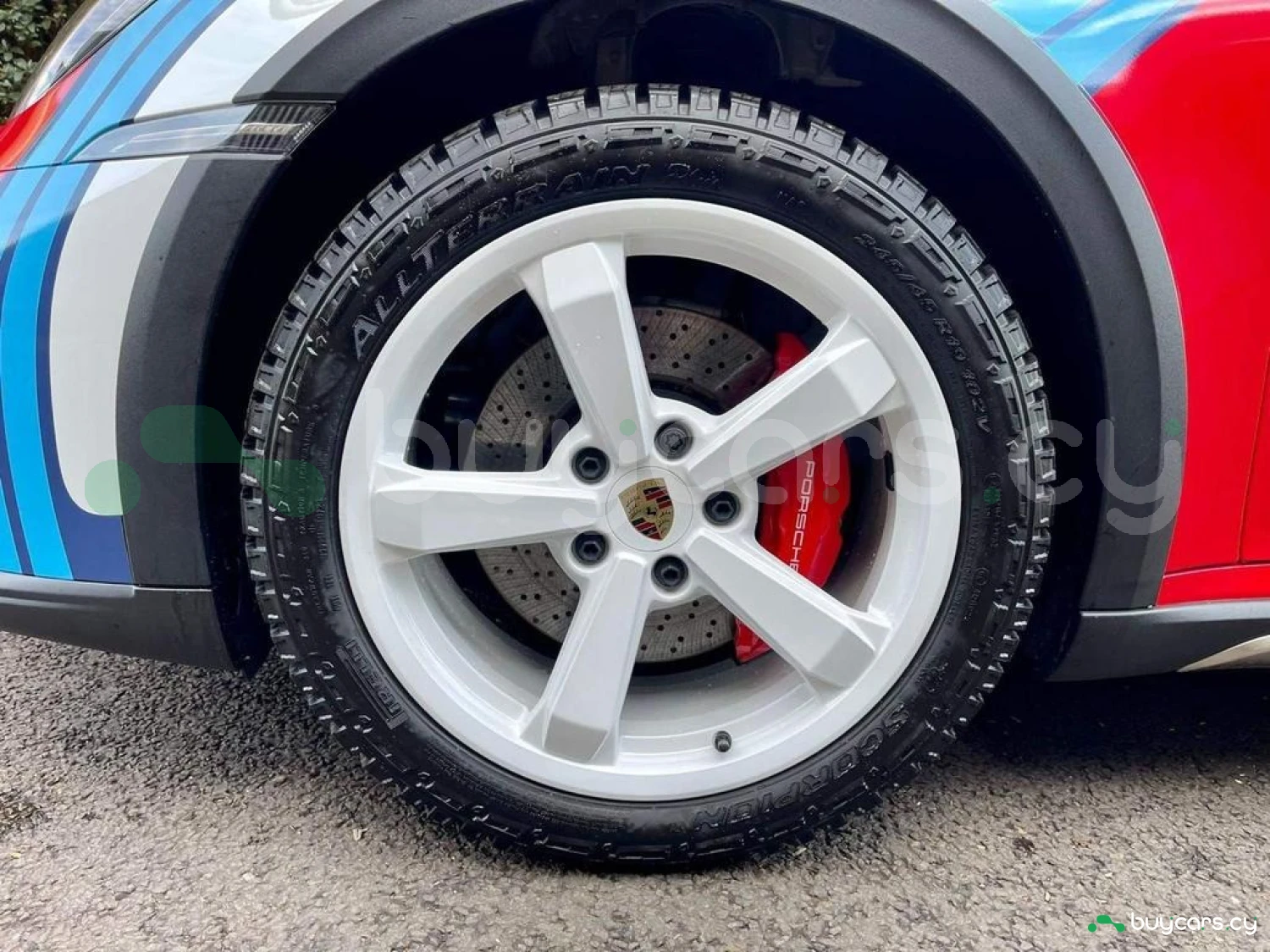 Equipped with Porsche’s Sport Chrono Package and rear-axle steering, the Dakar delivers a highly responsive and agile driving experience on any terrain. Key mechanical components include a McPherson front axle with an anti-roll bar, expansion intake manifold, thermal engine management, and VarioCam Plus. This model also includes a fixed lightweight rear spoiler in CFRP and other weight-saving body elements to support its off-road capability and performance focus.