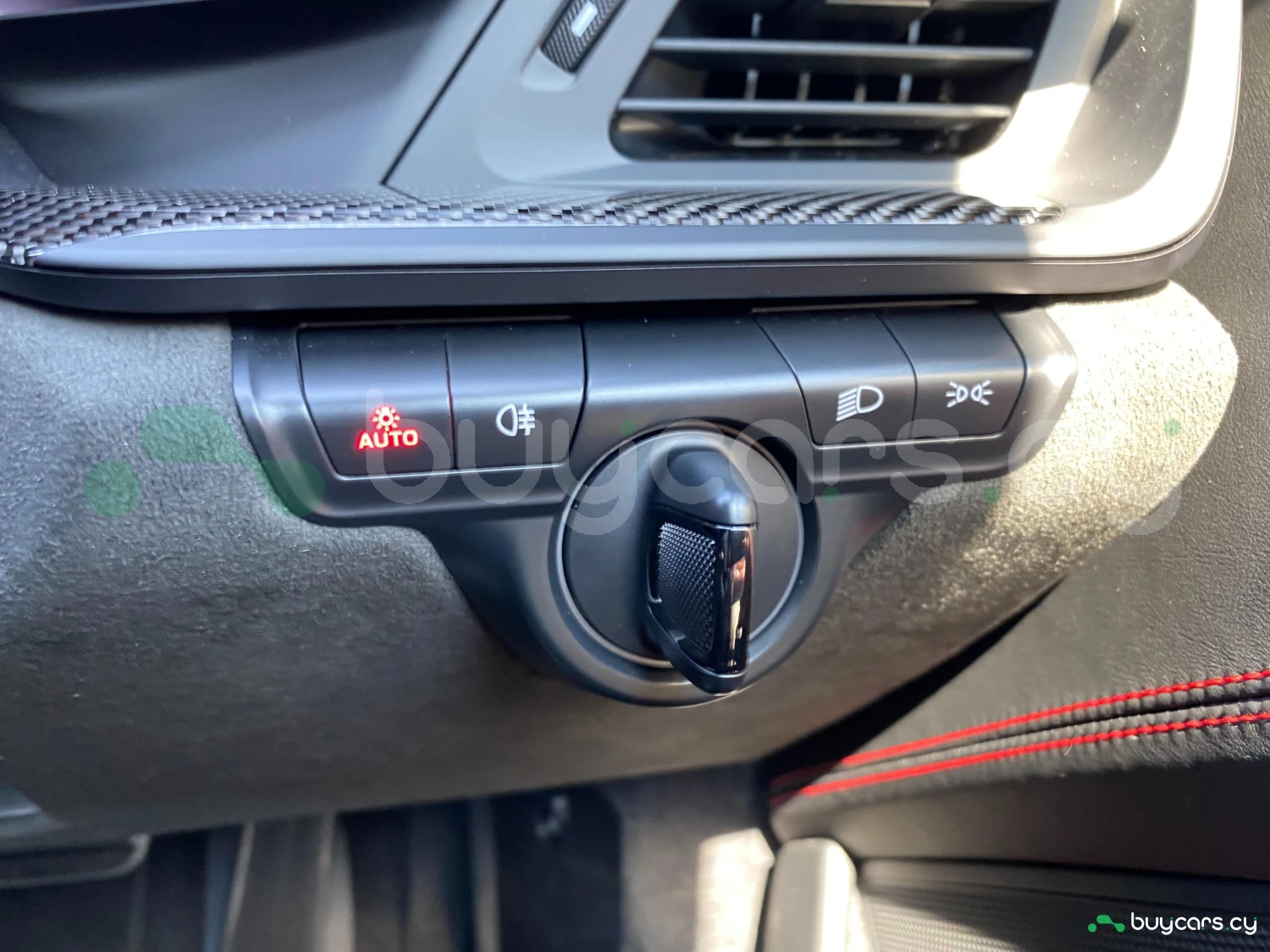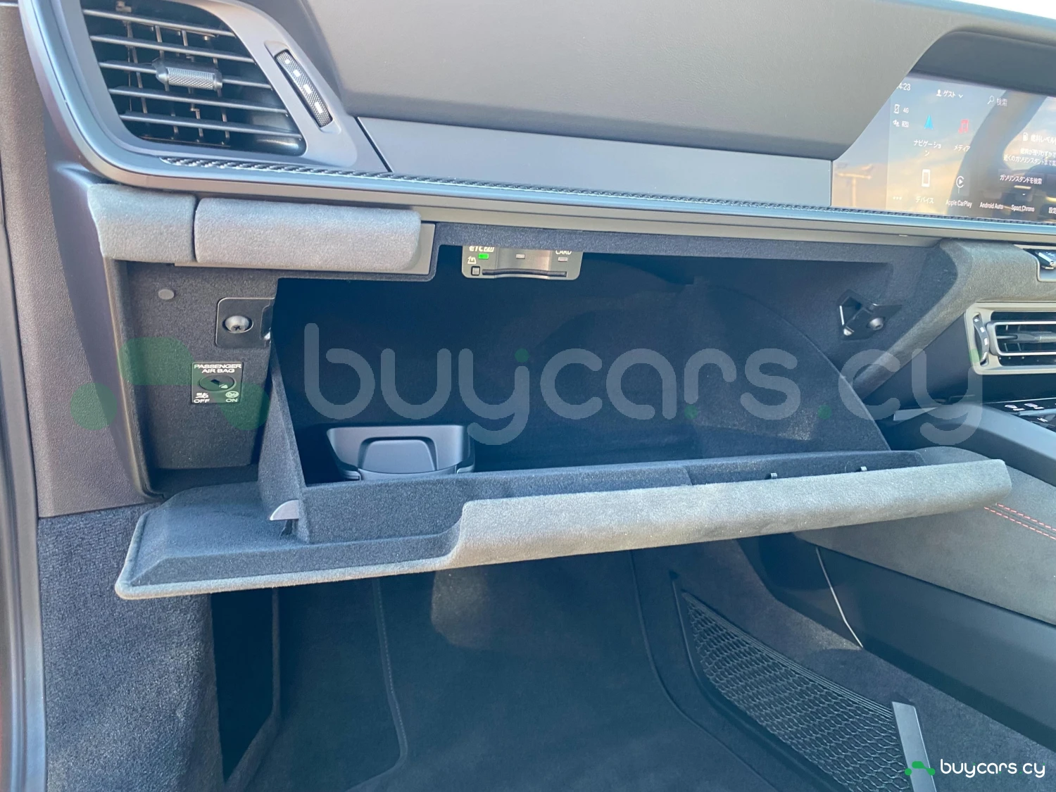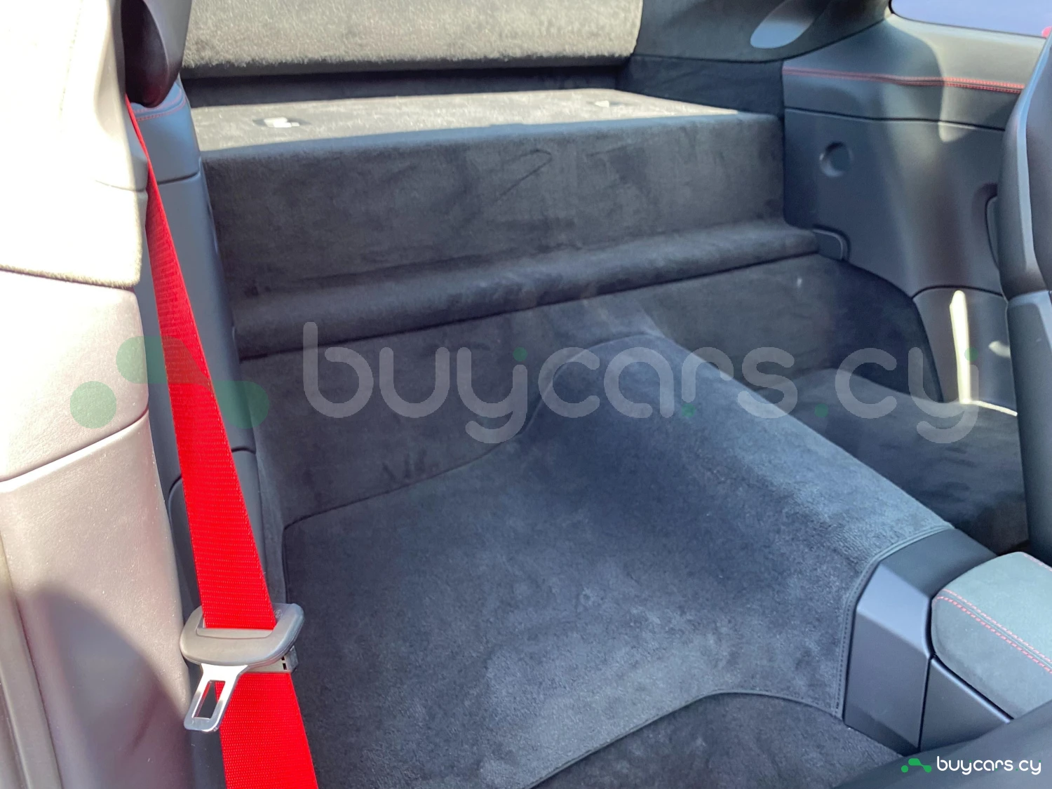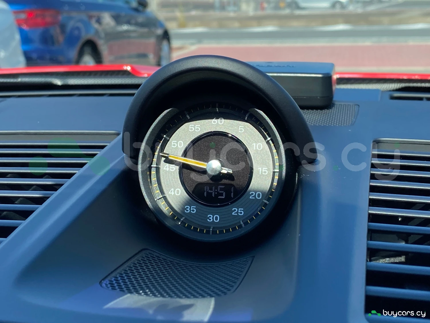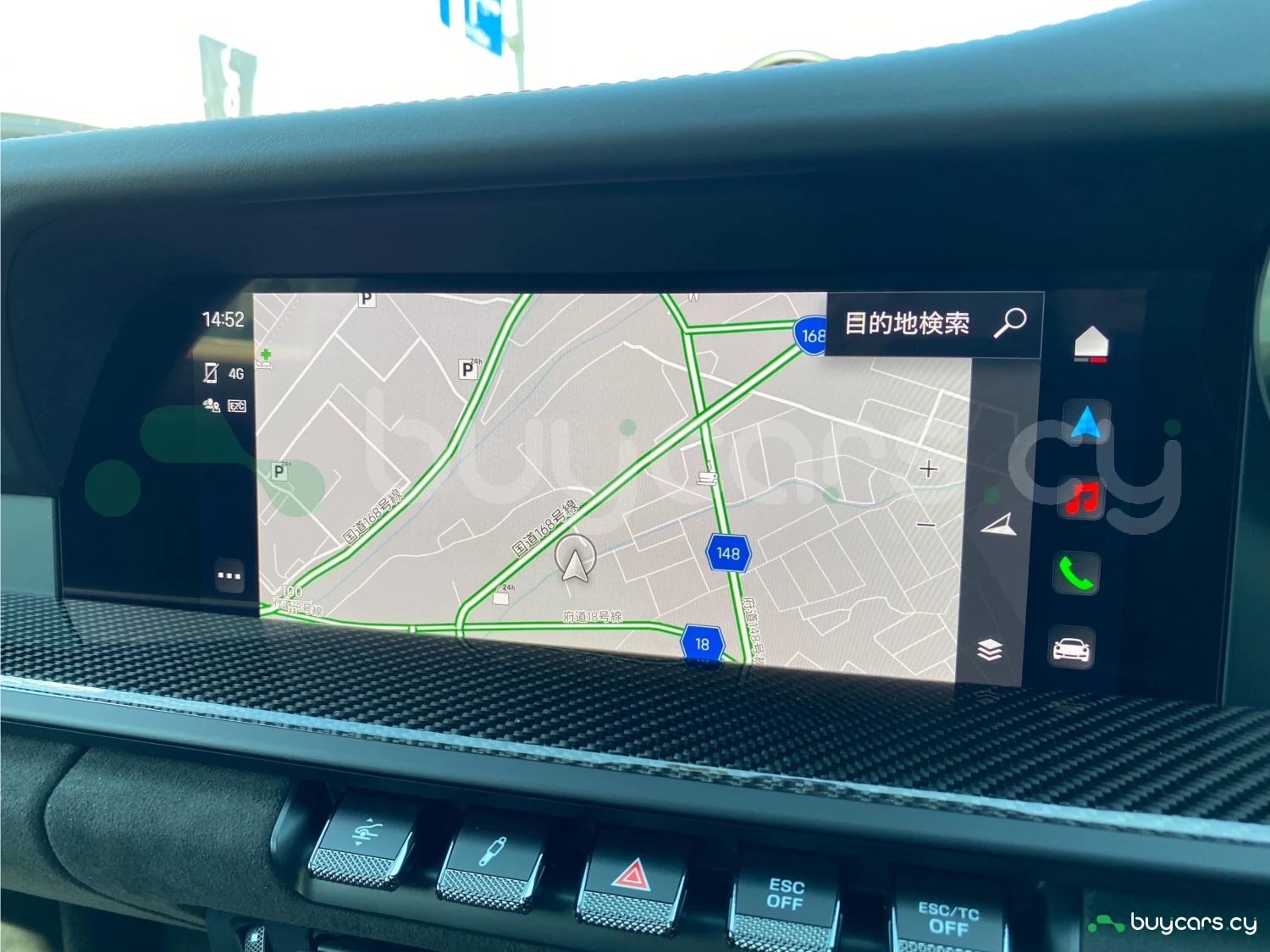 Sports coupe, 2 doors, 2 seats, 4.0L (4000cc) naturally aspirated gasoline engine, 7-speed PDK automatic transmission with manual mode, 2WD (rear-wheel drive), Right-hand drive, Guards Red, Carbon roof, Chrono Package, Adaptive cruise control, ABS, Power steering, Anti-skid system, Driver/Passenger/Side/Curtain airbags, Rear camera, Obstacle sensors, Idling stop system, Anti-theft system, LED headlights, Aluminum wheels (satin neodymium finish), Black painted brake calipers, Electric seats, Heated seats, Air conditioning, Navigation system (memory), Music player connectivity, Dashcam, Smart key & keyless entry, Power windows