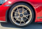 The Guards Red finish highlights the aggressive yet timeless silhouette of the 911 GT3. The carbon roof lowers the center of gravity, while satin-finished aluminum wheels and distinctive aerodynamic elements emphasize its track-ready character.