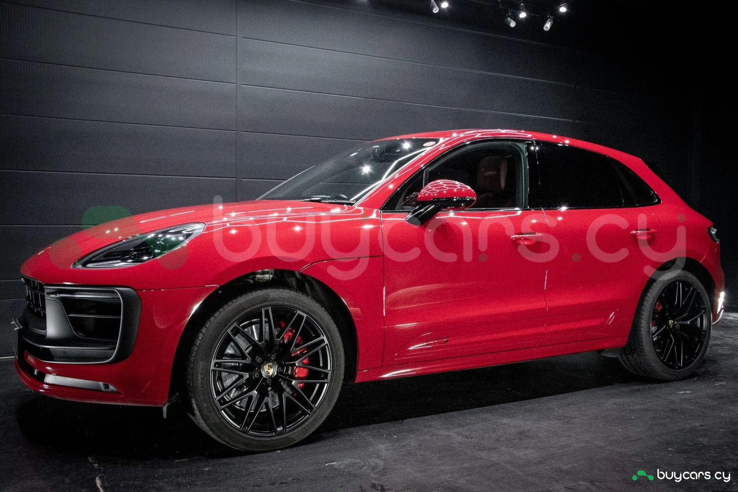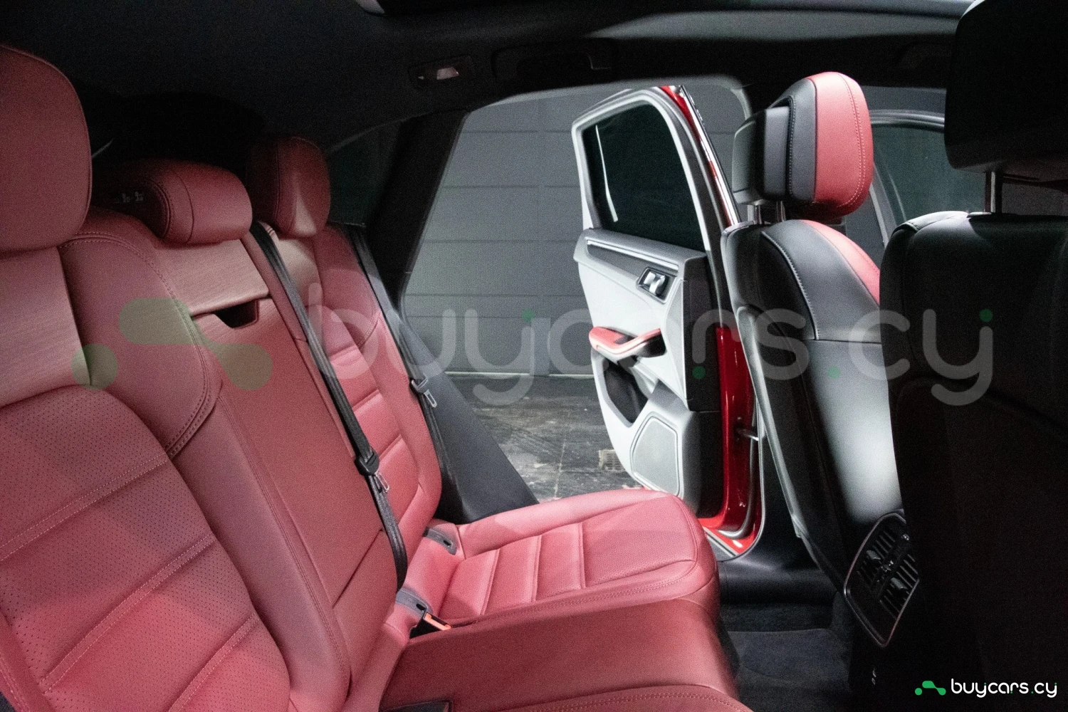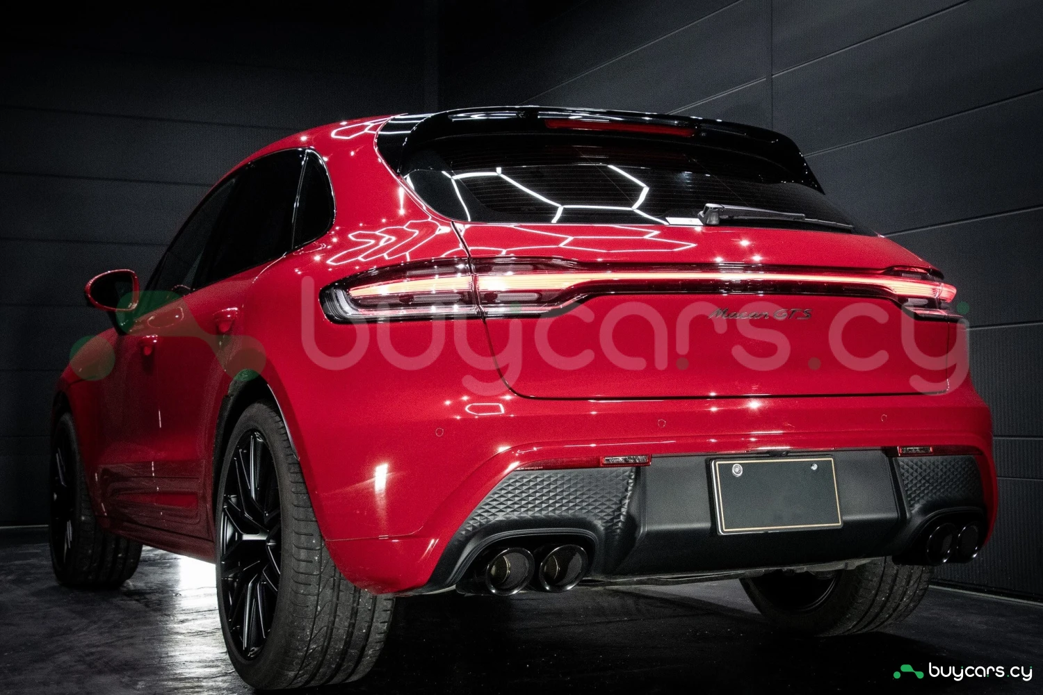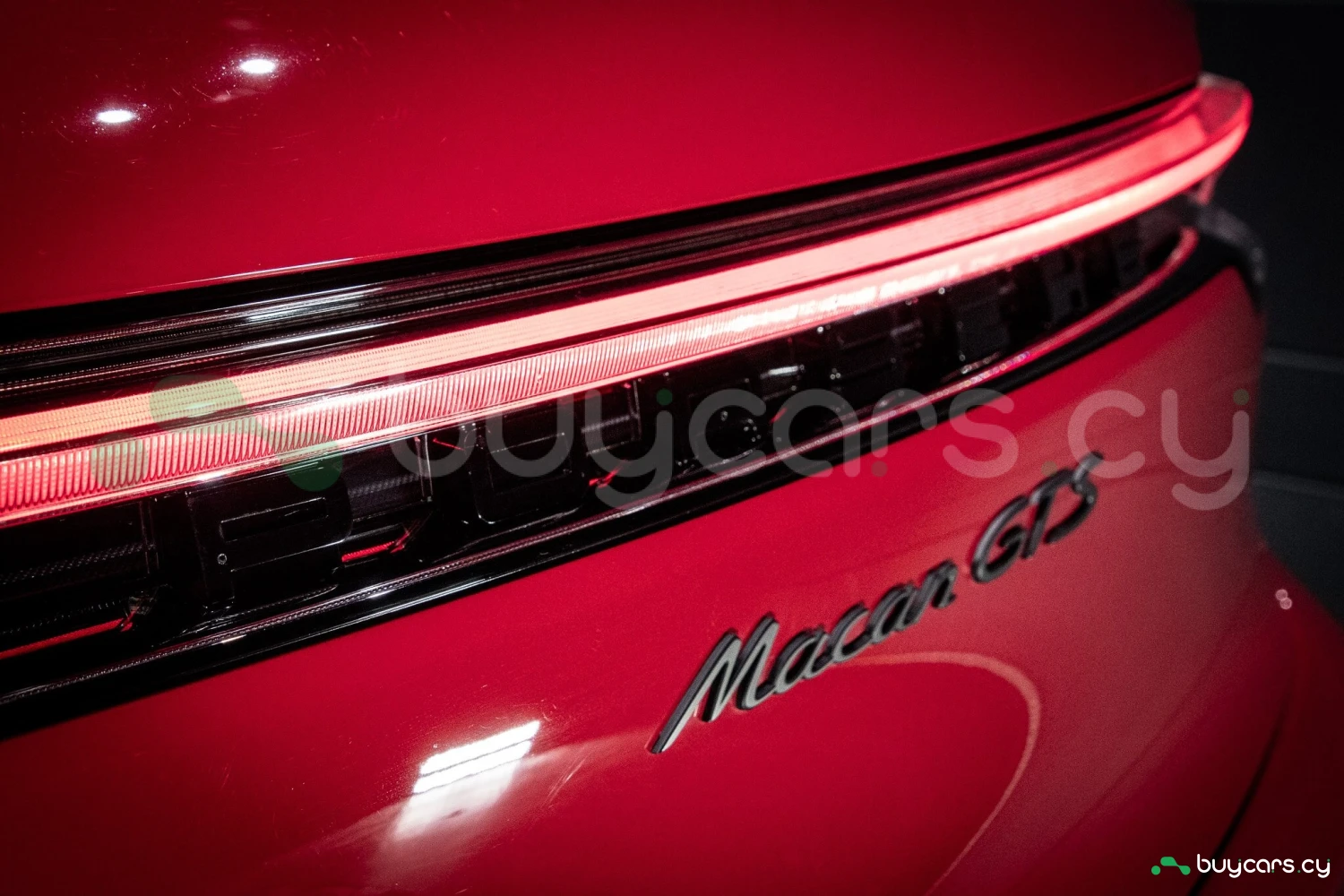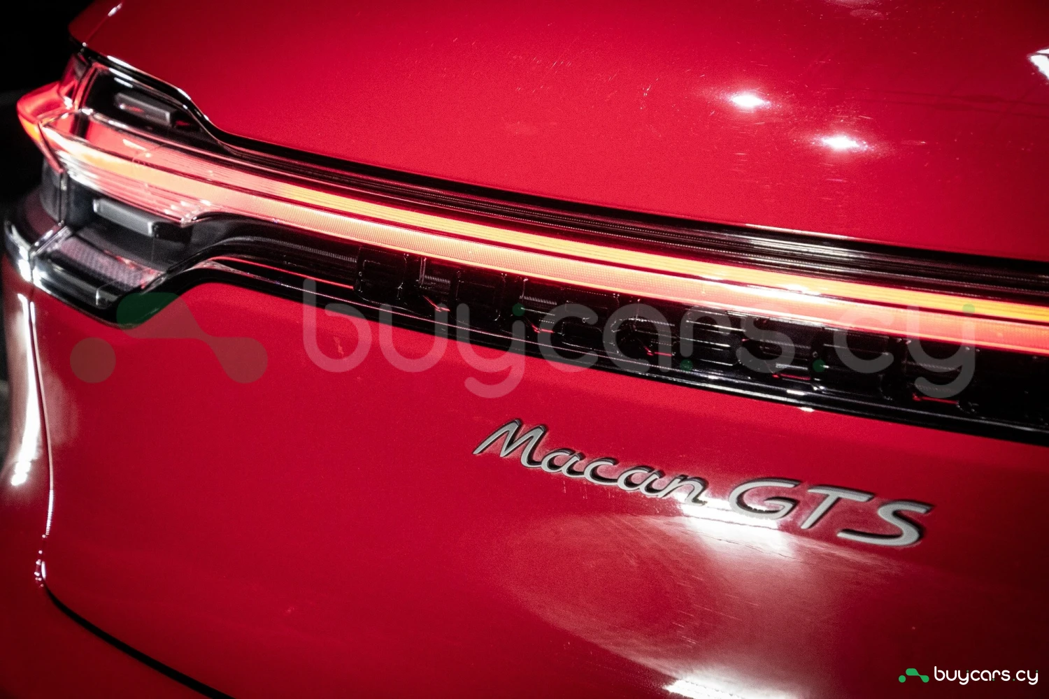 The bold Carmine Red paint is offset by high-gloss black exterior elements, including window trim, mirrors, and side blades, reinforcing the vehicle's sporty stance. Signature GTS styling elements such as a blacked-out rear diffuser, dark LED taillights, and 21-inch alloy wheels complete the aggressive look. LED headlights with PDLS+ provide adaptive lighting for enhanced nighttime visibility and safety.