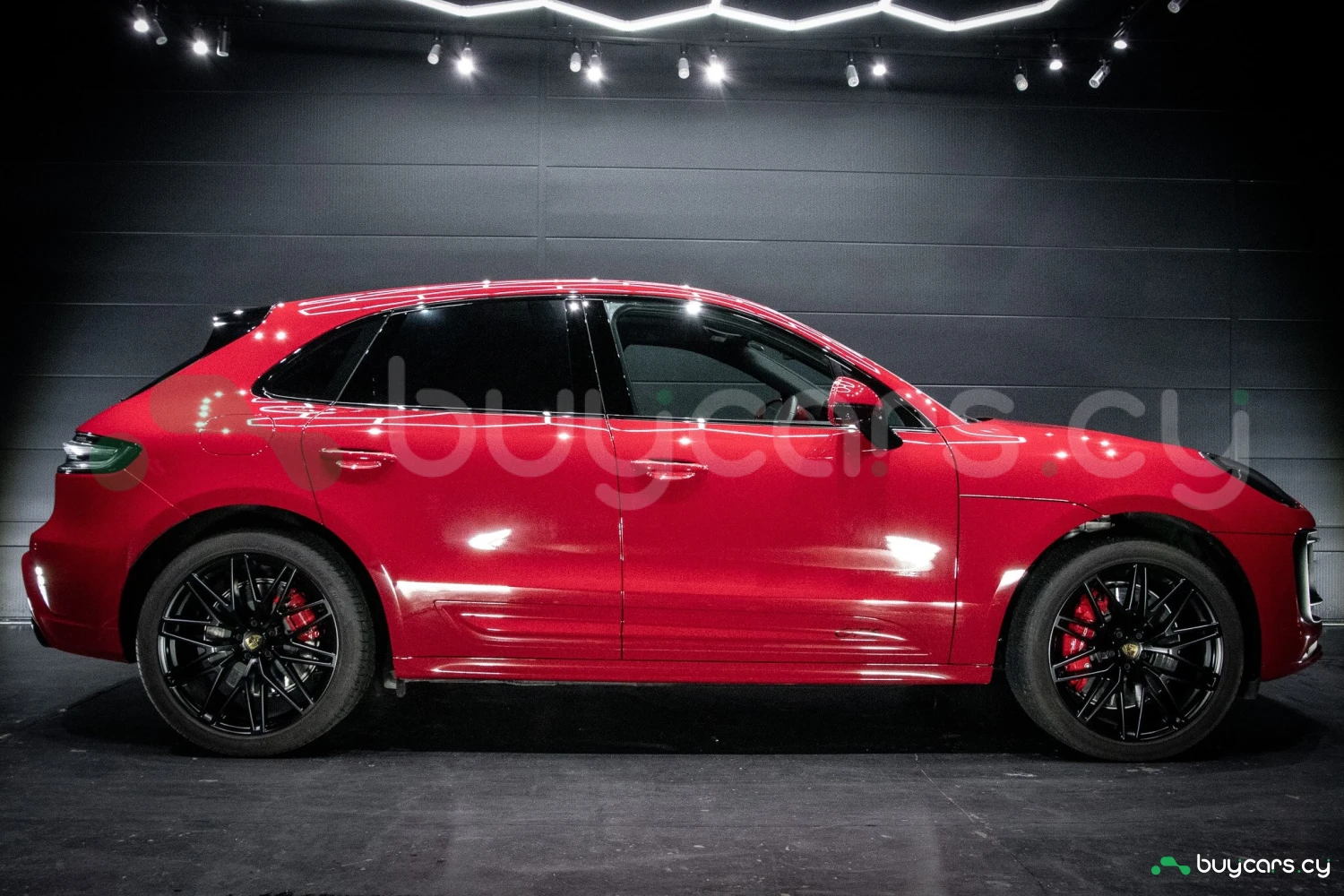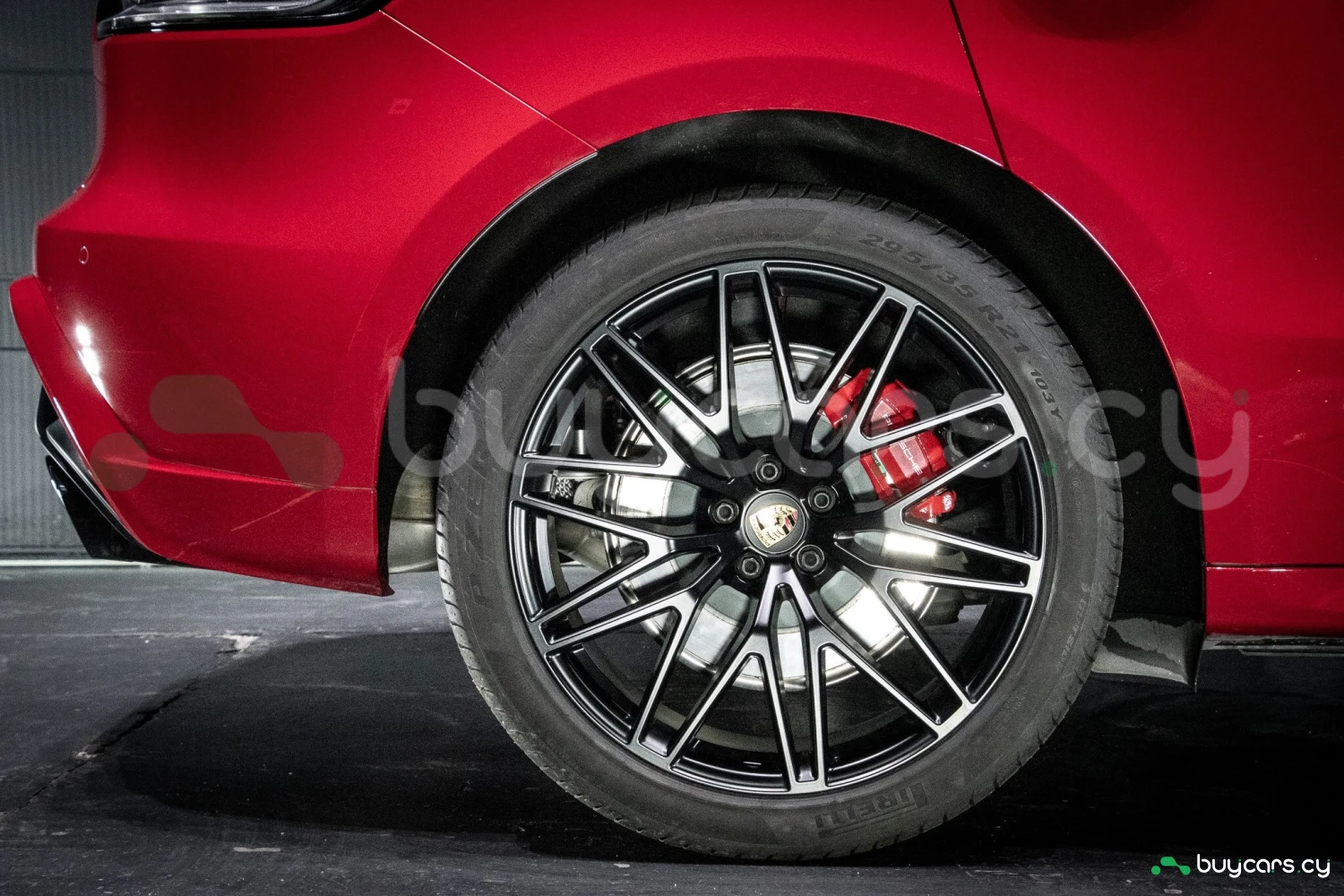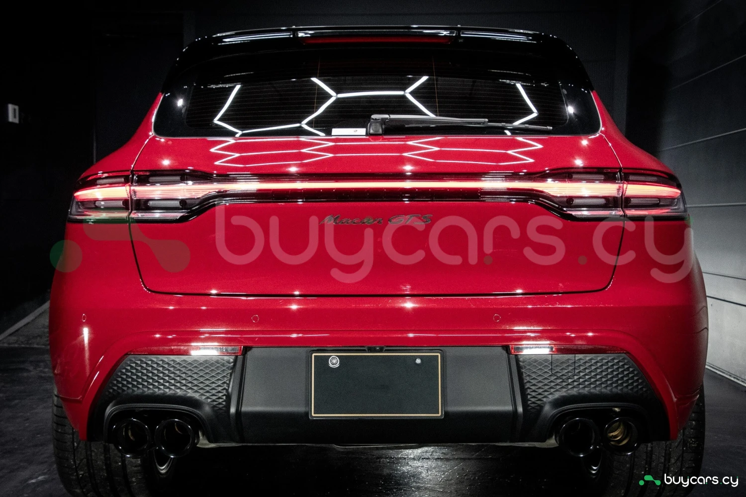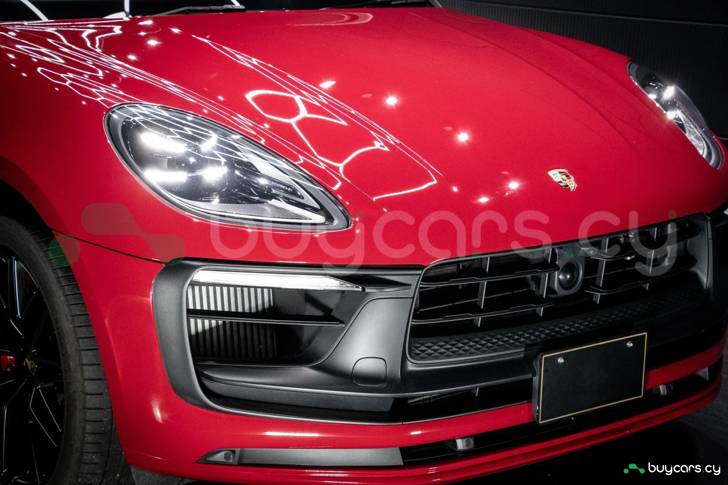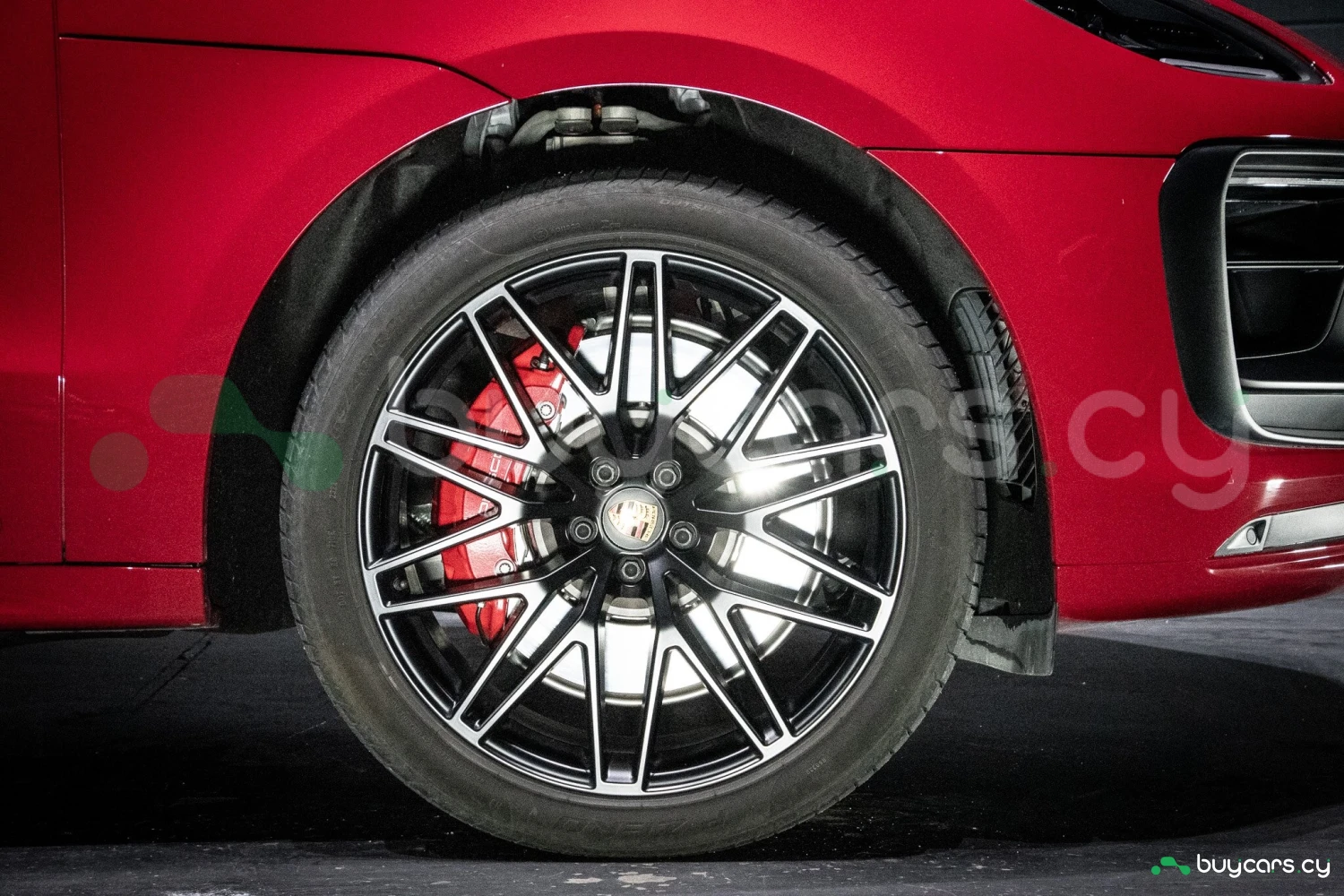 The bold Carmine Red paint is offset by high-gloss black exterior elements, including window trim, mirrors, and side blades, reinforcing the vehicle's sporty stance. Signature GTS styling elements such as a blacked-out rear diffuser, dark LED taillights, and 21-inch alloy wheels complete the aggressive look. LED headlights with PDLS+ provide adaptive lighting for enhanced nighttime visibility and safety.