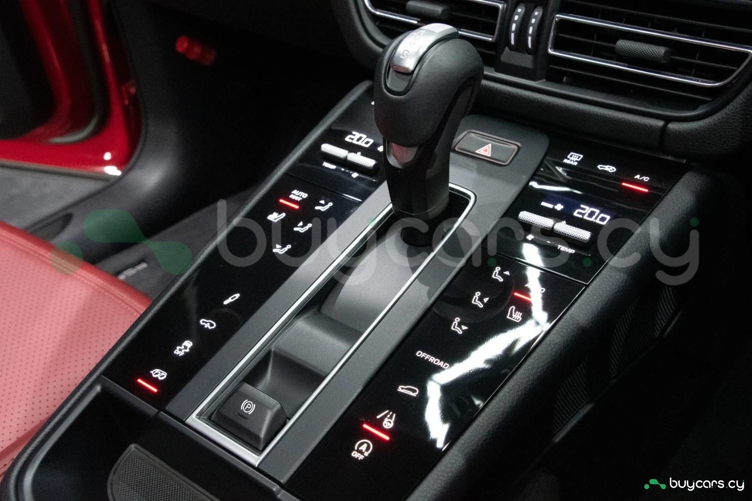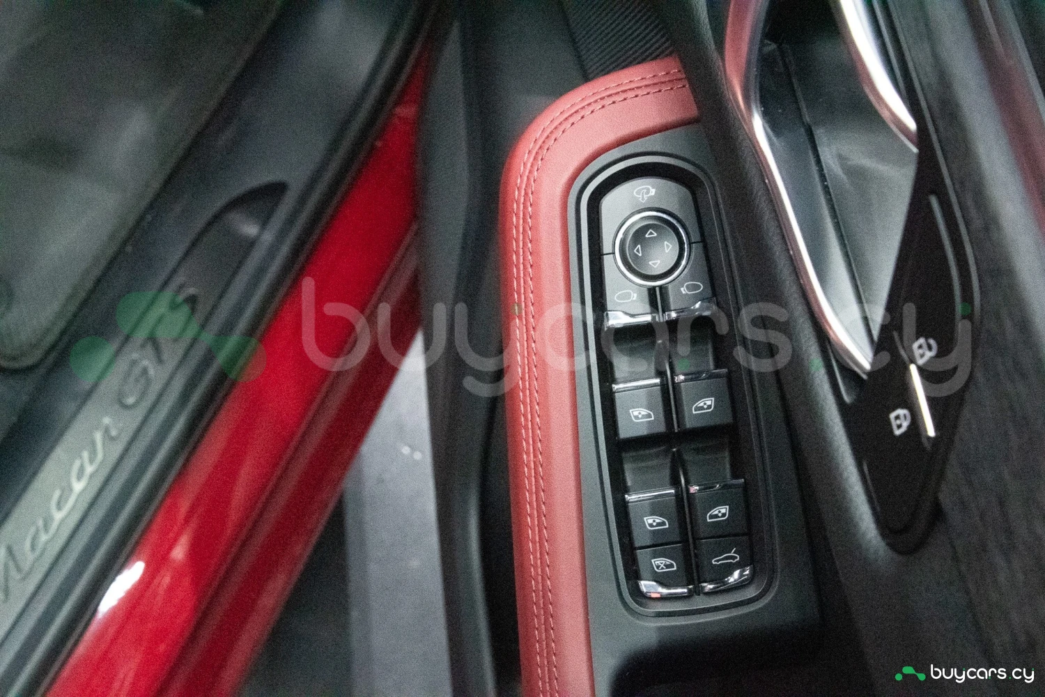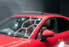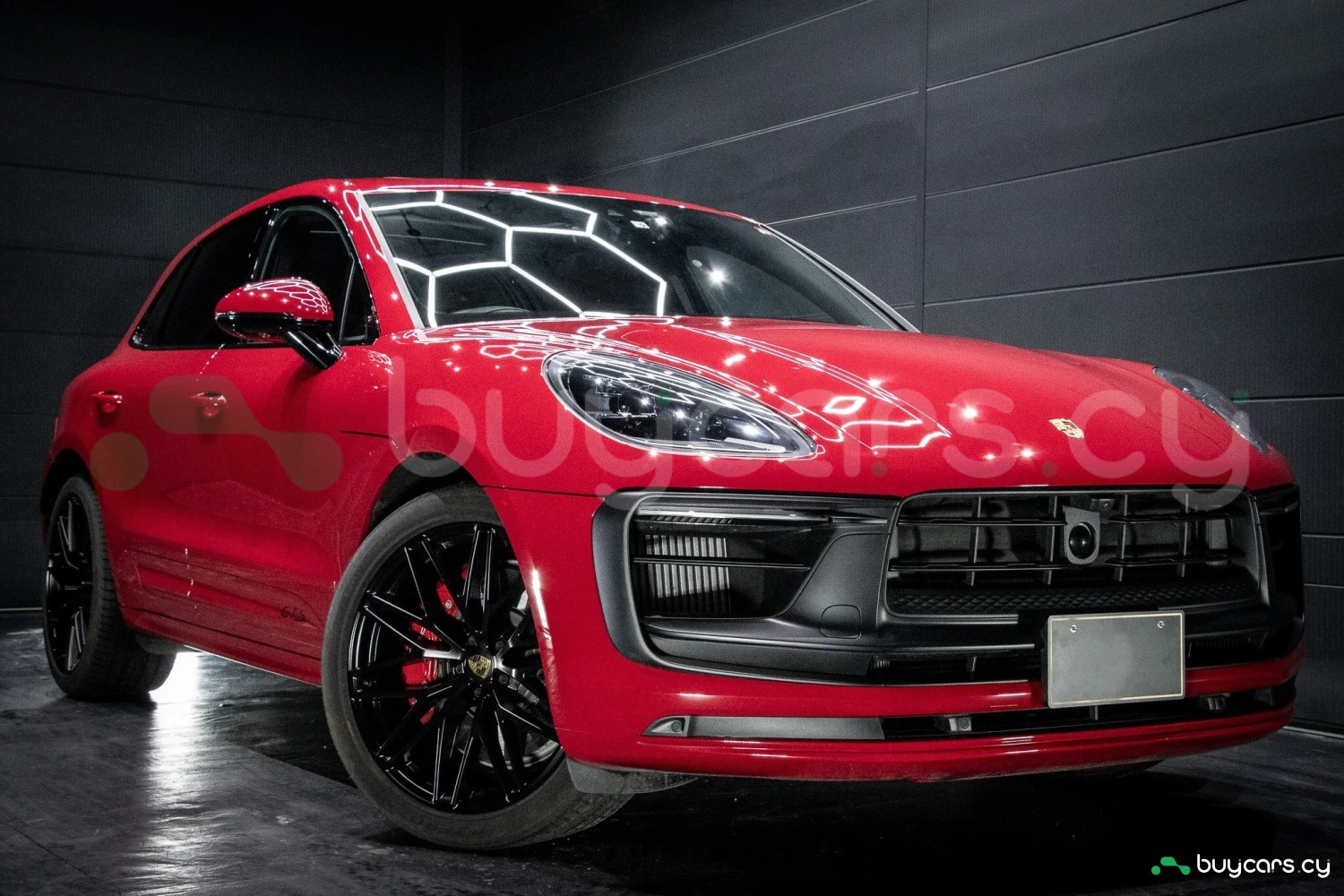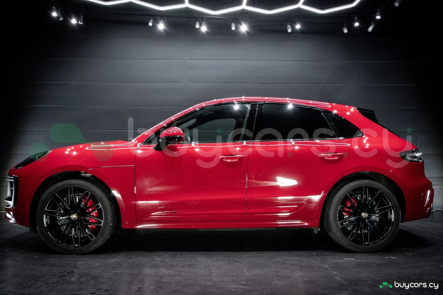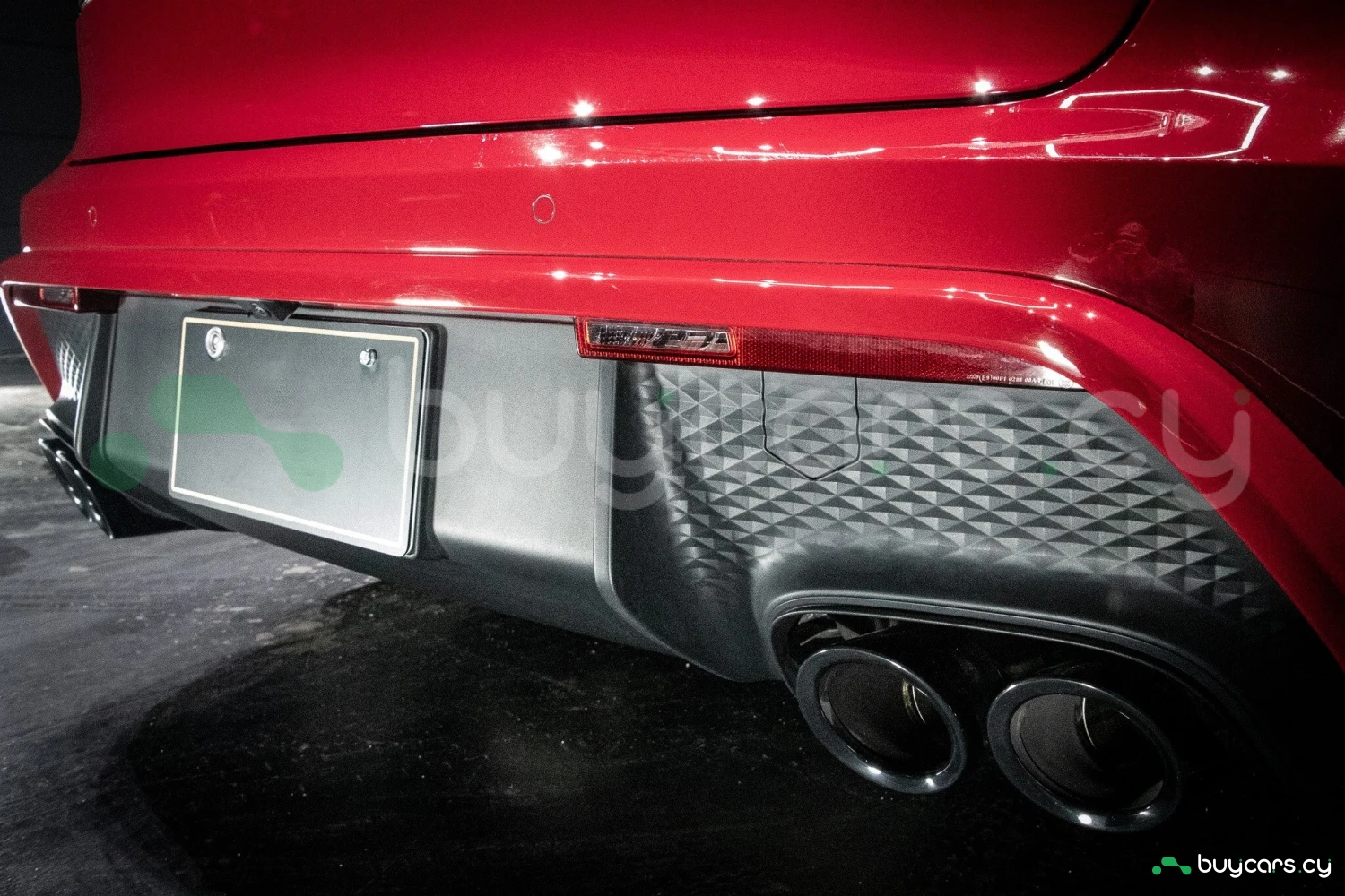The bold Carmine Red paint is offset by high-gloss black exterior elements, including window trim, mirrors, and side blades, reinforcing the vehicle's sporty stance. Signature GTS styling elements such as a blacked-out rear diffuser, dark LED taillights, and 21-inch alloy wheels complete the aggressive look. LED headlights with PDLS+ provide adaptive lighting for enhanced nighttime visibility and safety.