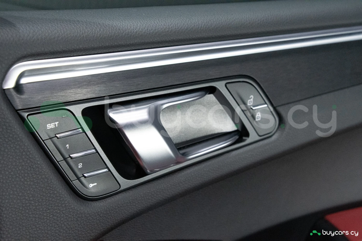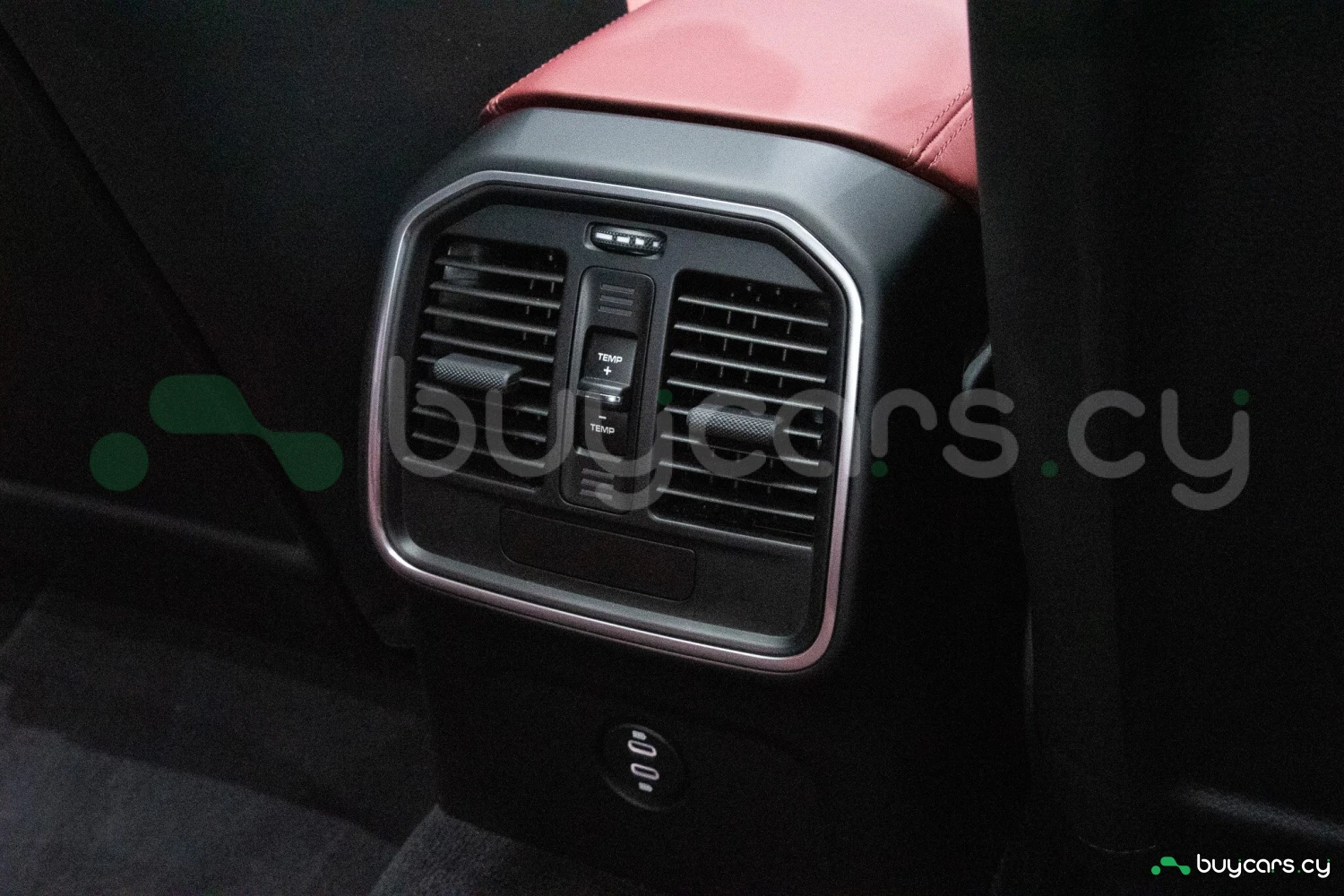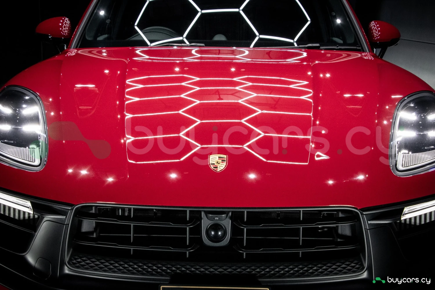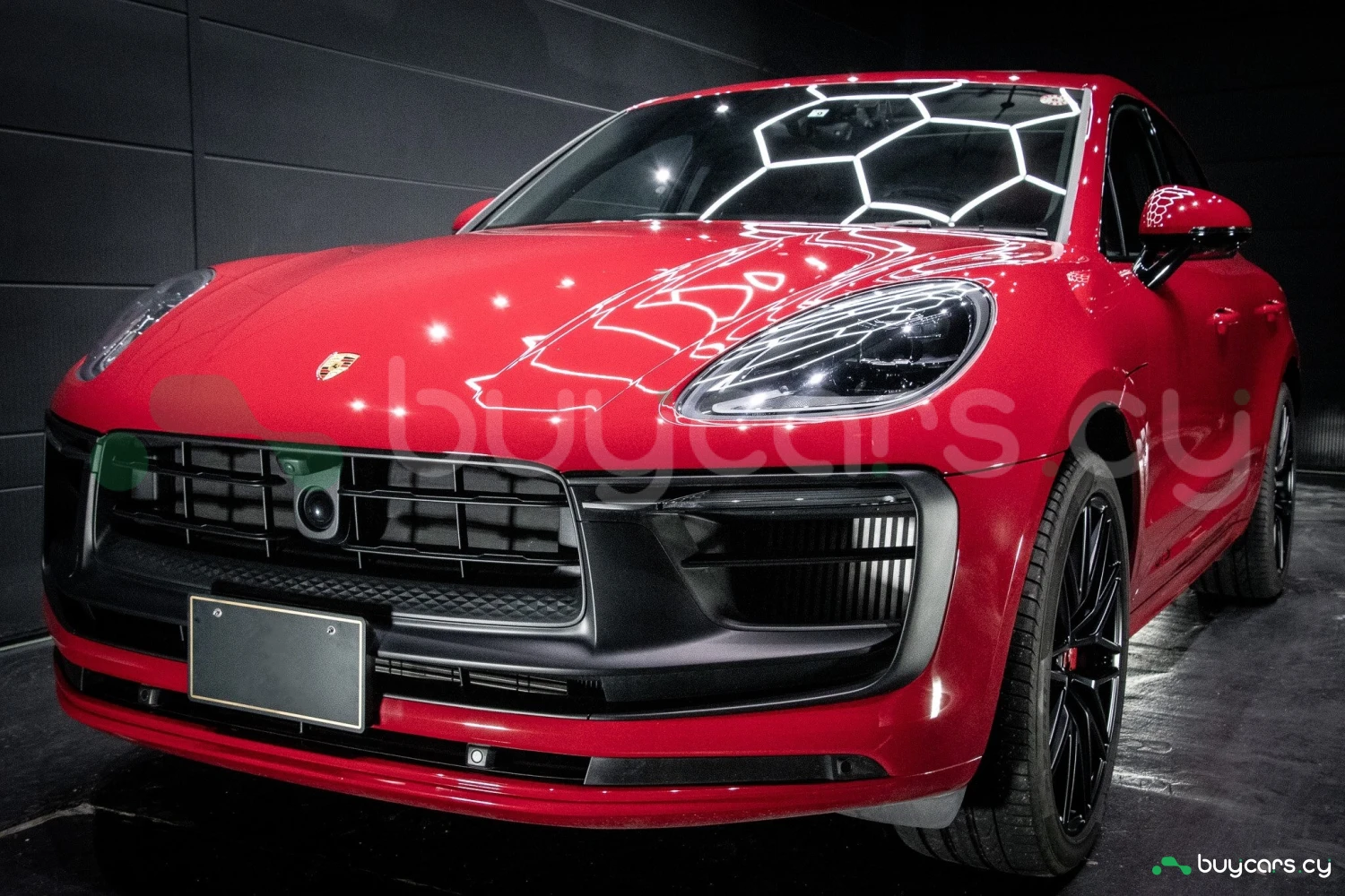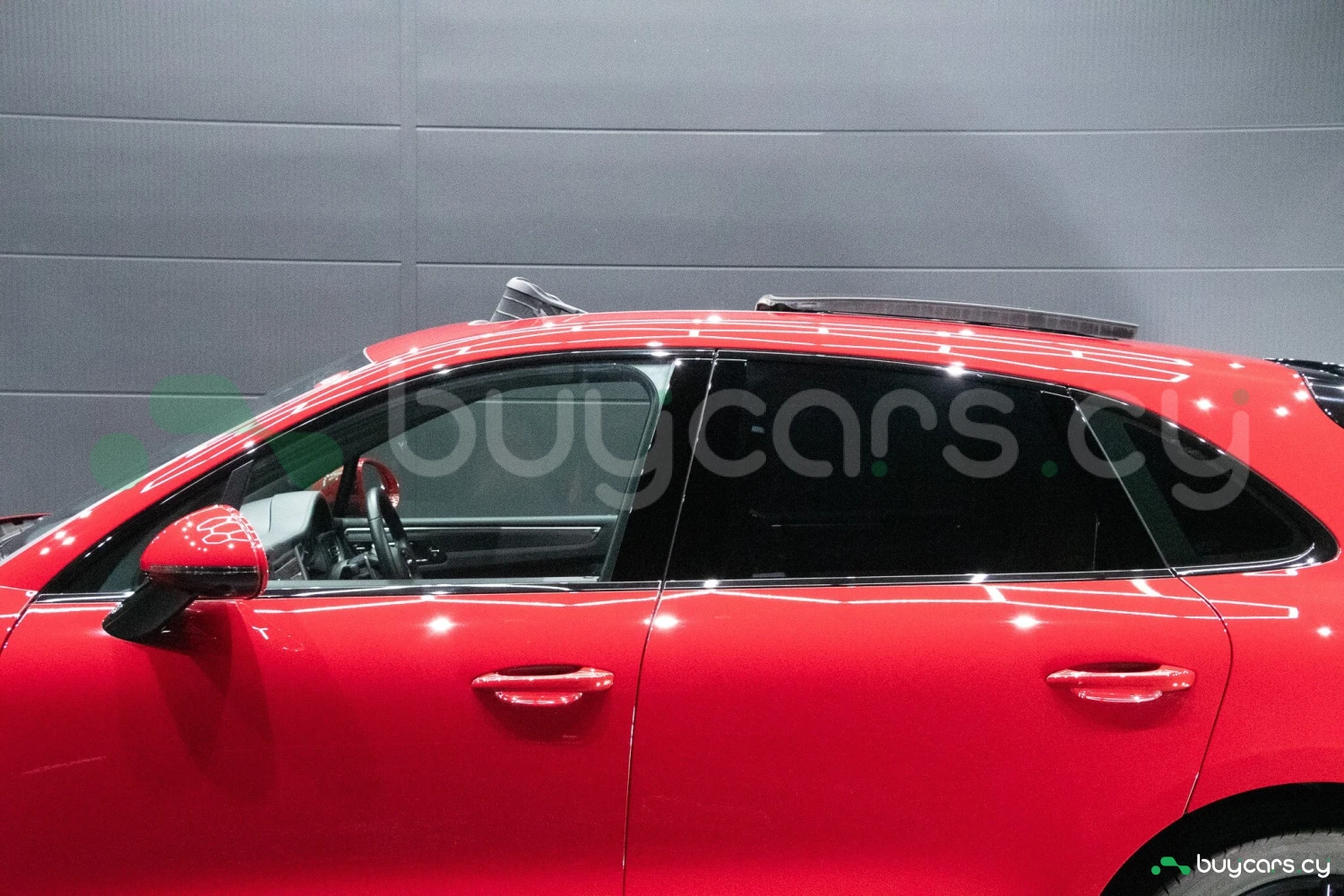 The bold Carmine Red paint is offset by high-gloss black exterior elements, including window trim, mirrors, and side blades, reinforcing the vehicle's sporty stance. Signature GTS styling elements such as a blacked-out rear diffuser, dark LED taillights, and 21-inch alloy wheels complete the aggressive look. LED headlights with PDLS+ provide adaptive lighting for enhanced nighttime visibility and safety.