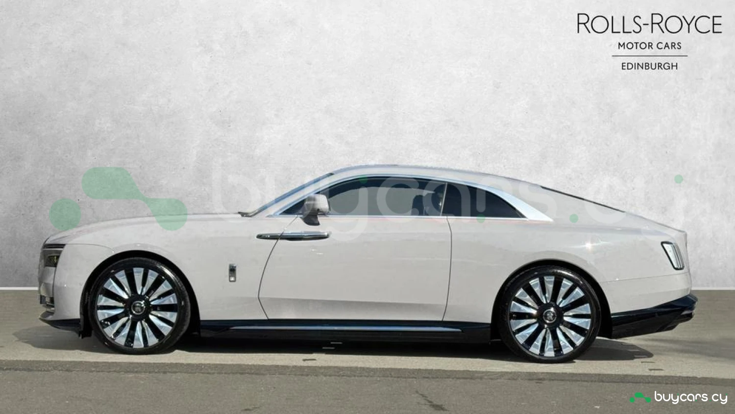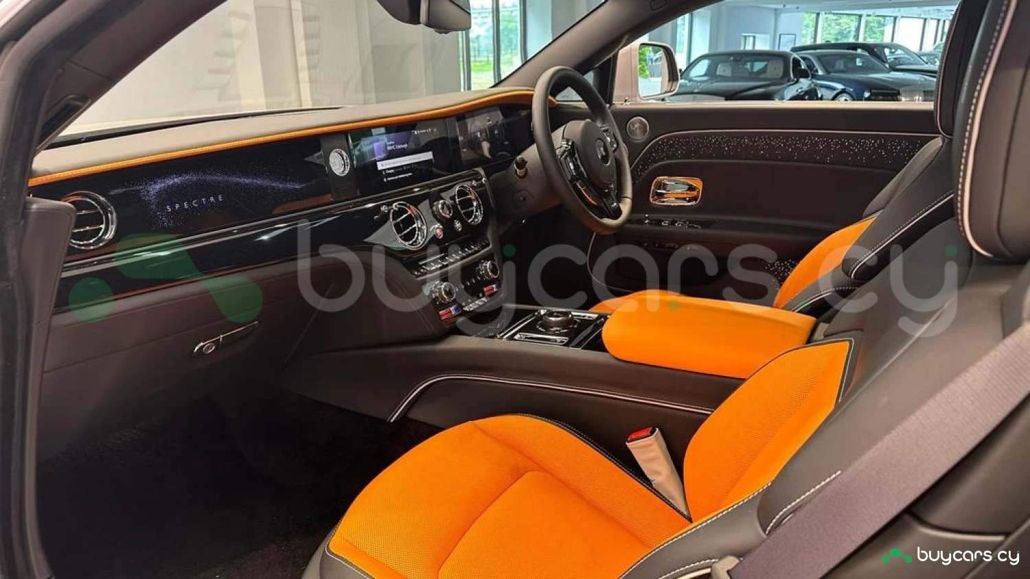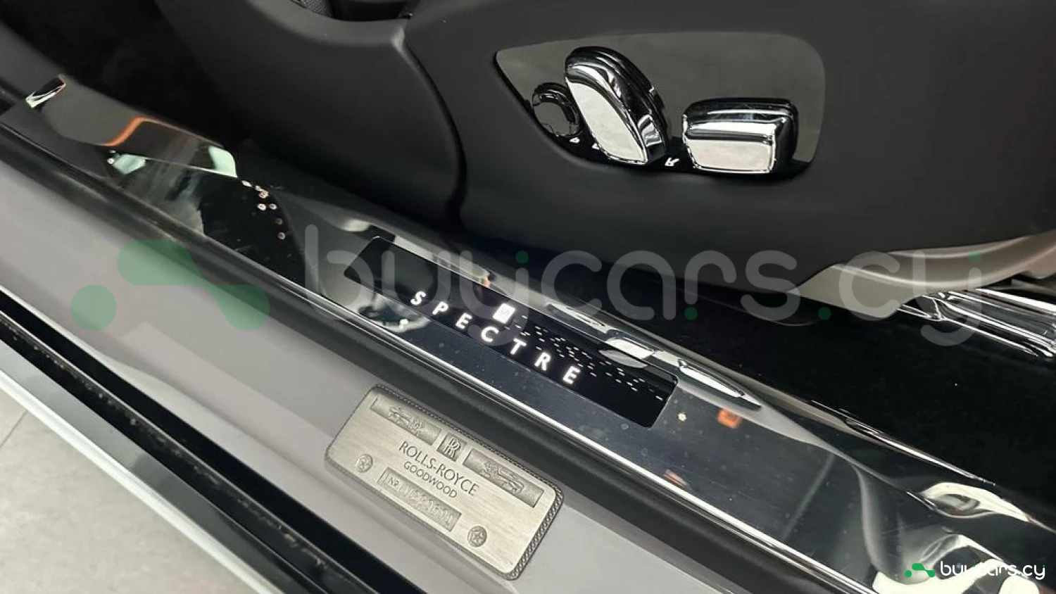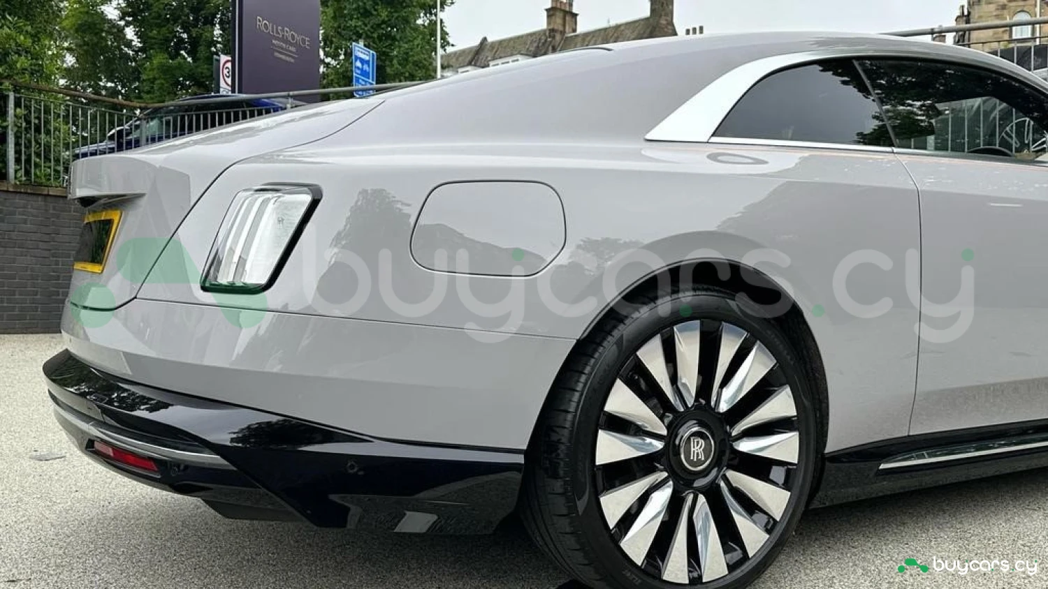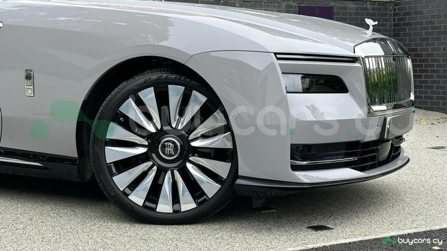 Finished in a classic Grey exterior color, the Spectre commands attention with its elegant yet powerful presence. It rides on 22-inch 7-spoke Aero alloy wheels with a part-polished finish, adding a dynamic and luxurious touch. Front electric windows blend function with minimalist design, supporting the sleek coupe profile and signature Rolls-Royce coach doors.