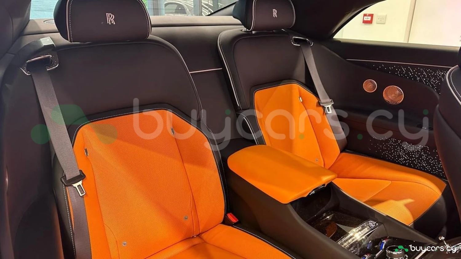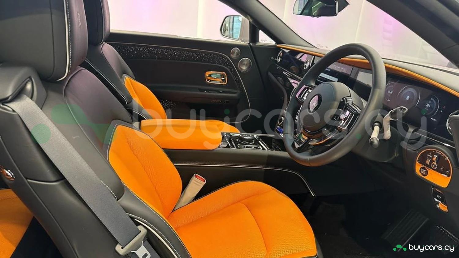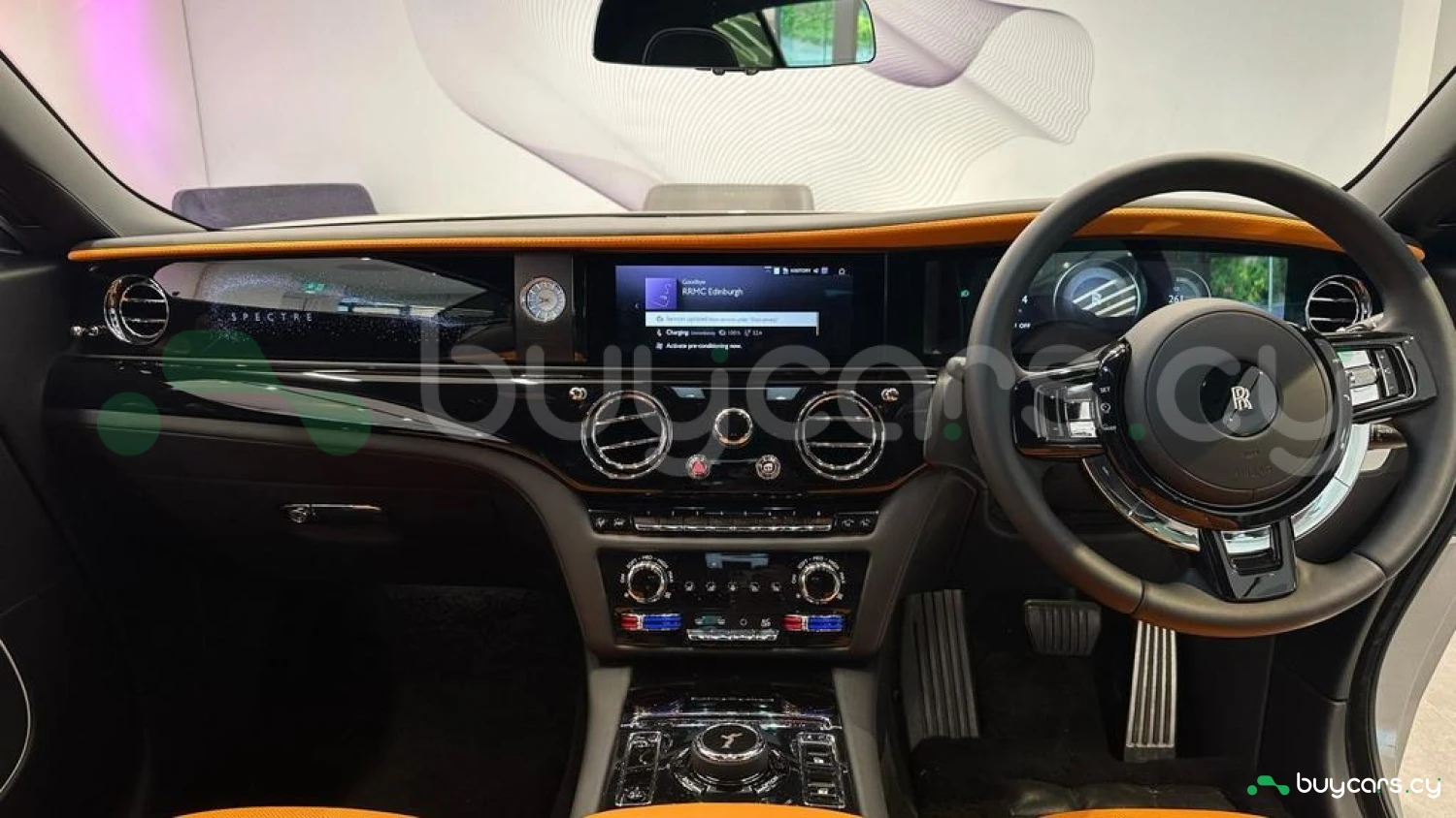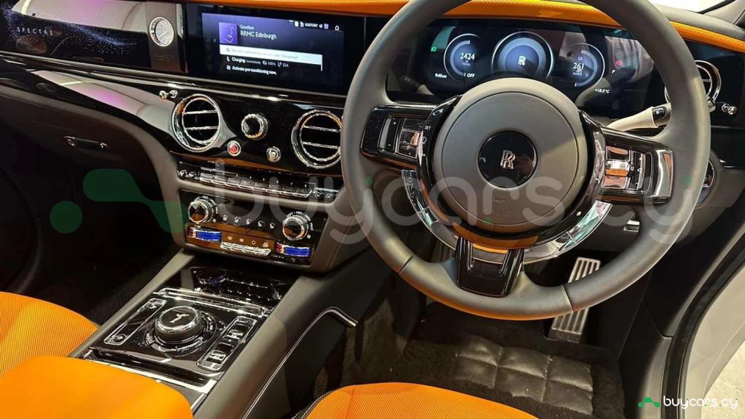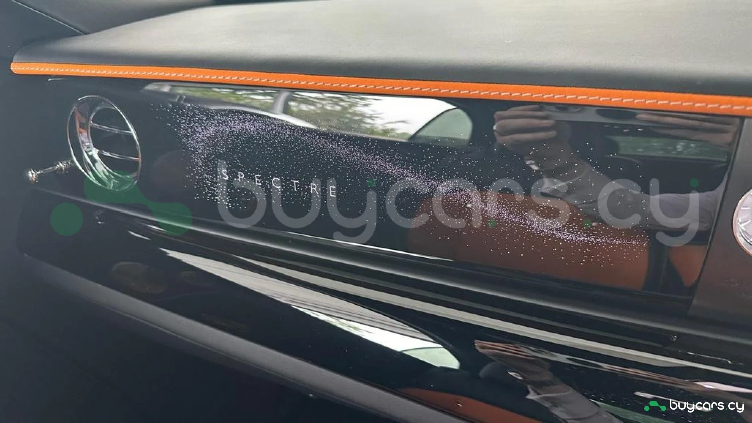 Finished in a classic Grey exterior color, the Spectre commands attention with its elegant yet powerful presence. It rides on 22-inch 7-spoke Aero alloy wheels with a part-polished finish, adding a dynamic and luxurious touch. Front electric windows blend function with minimalist design, supporting the sleek coupe profile and signature Rolls-Royce coach doors.