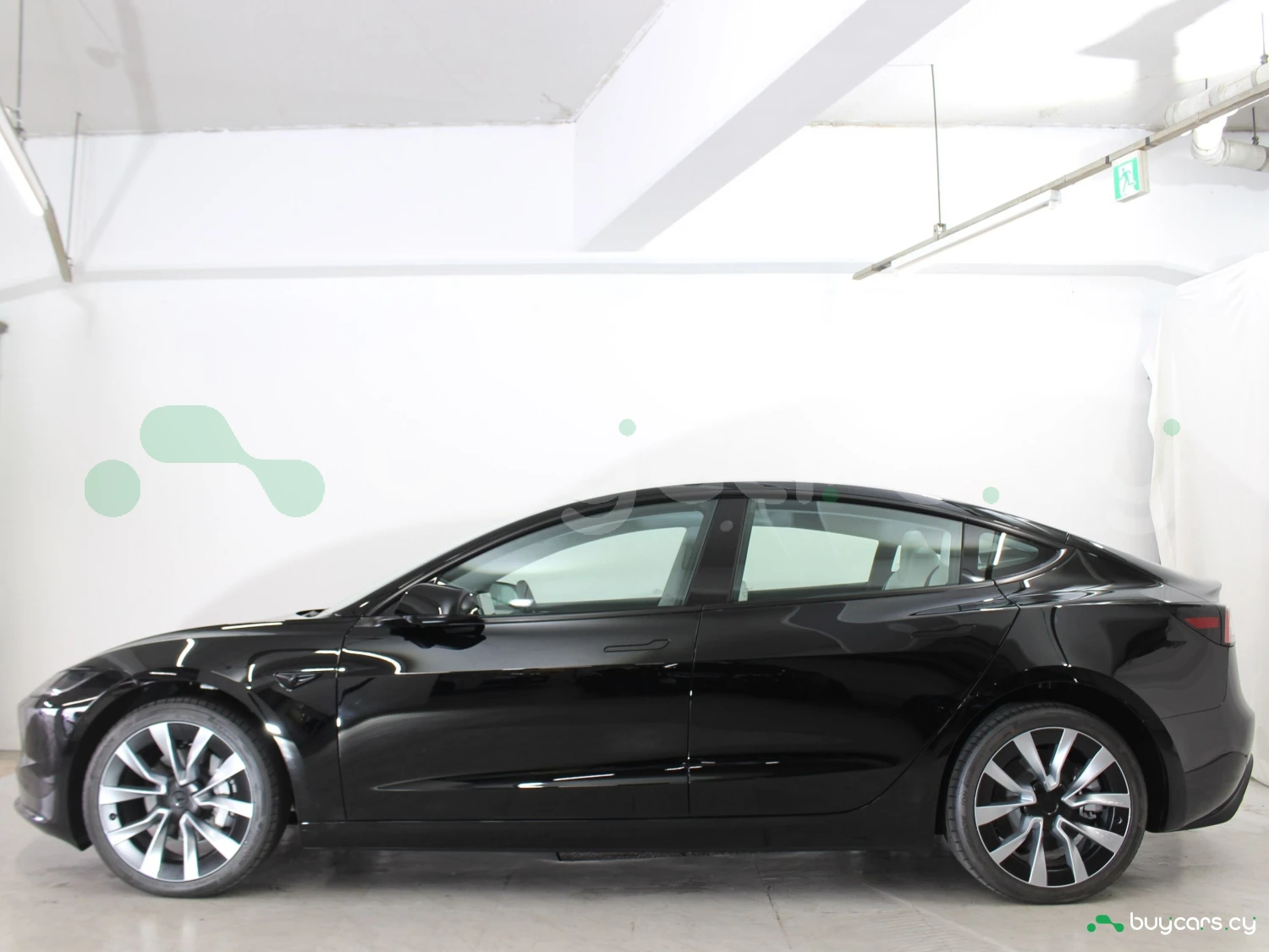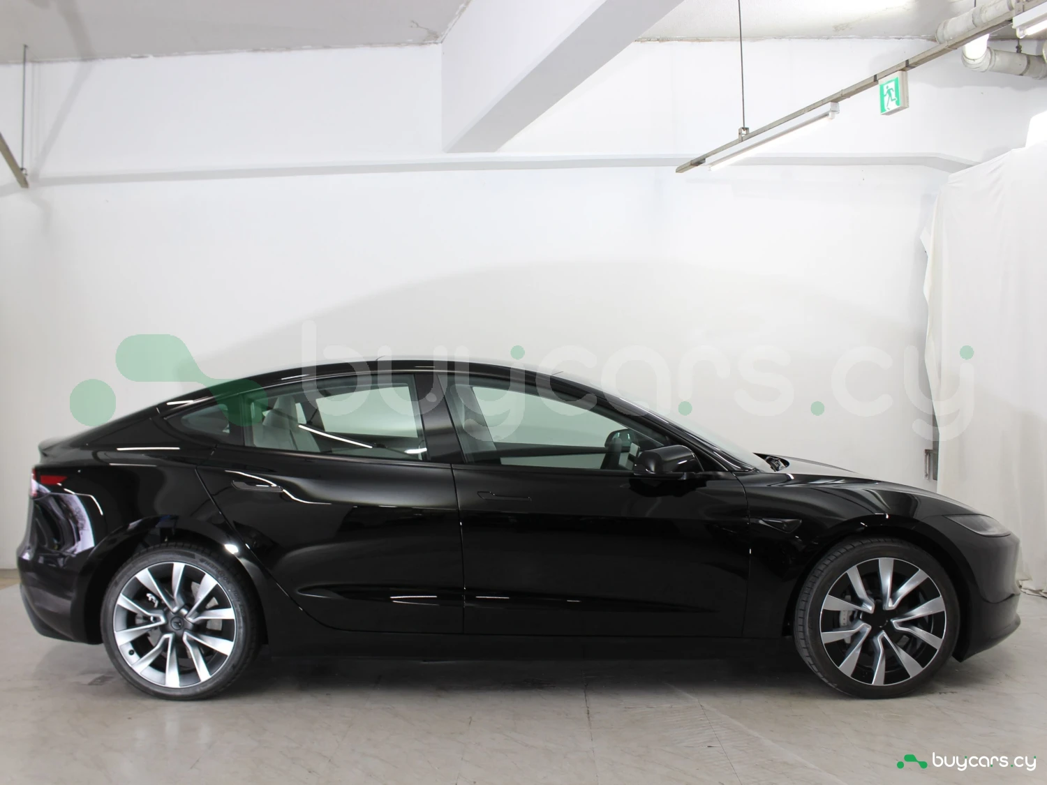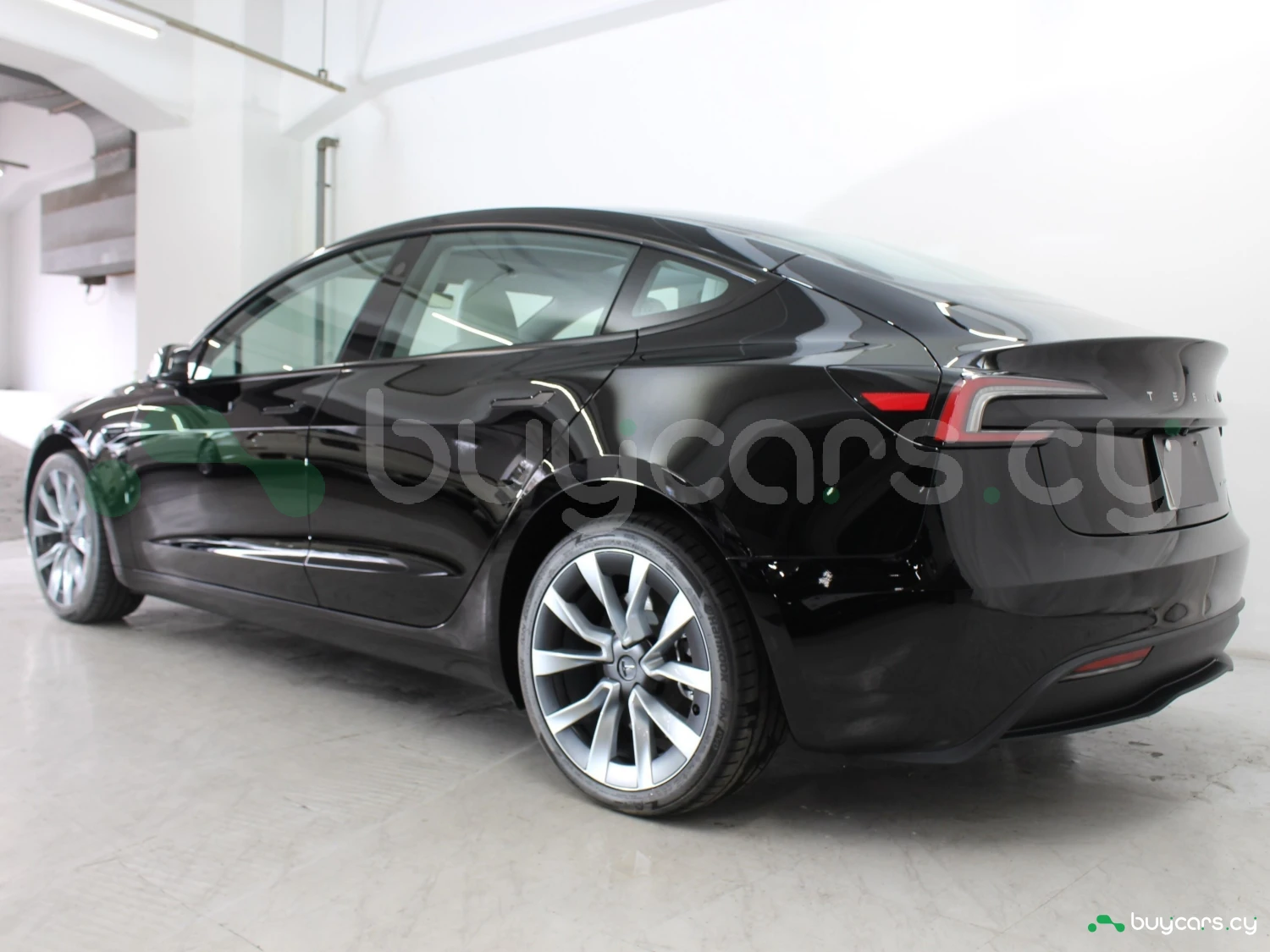 Exterior The exterior in Diamond Black is complemented by 19-inch alloy wheels, LED lighting, and Tesla’s sleek aerodynamic design.