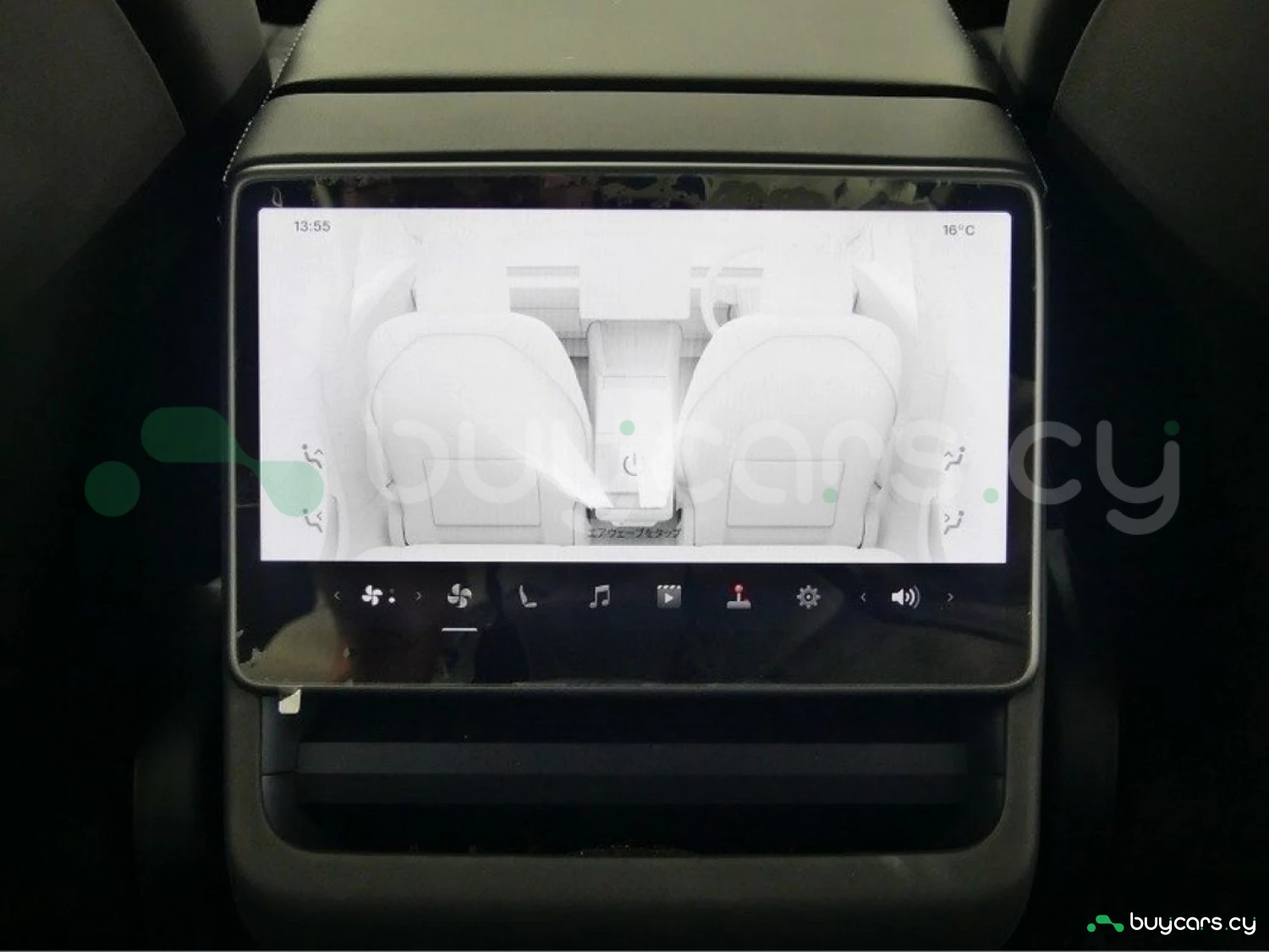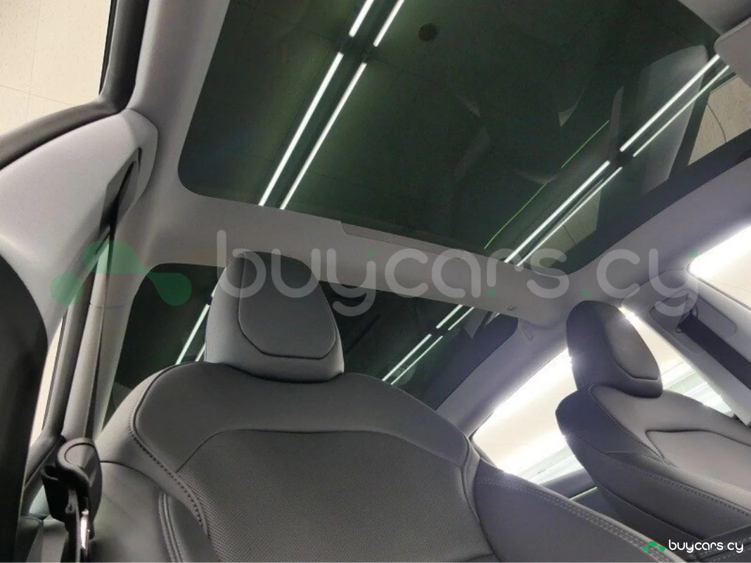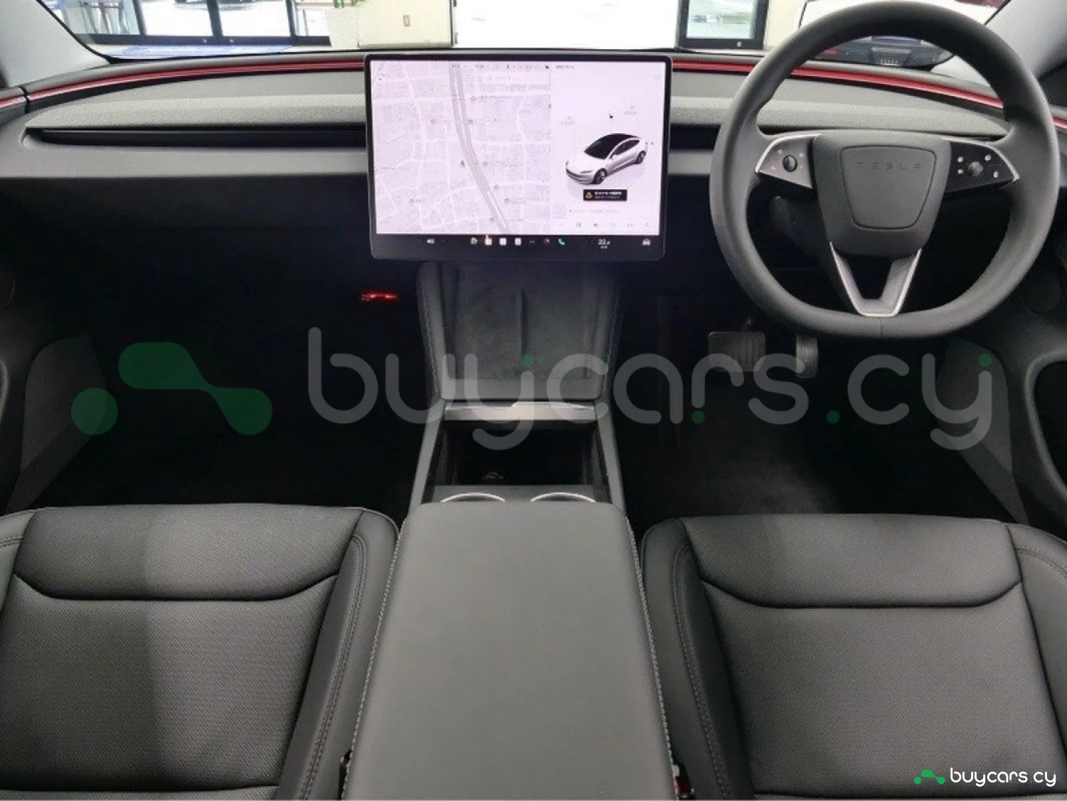 The interior reflects Tesla’s signature minimalist approach, highlighted by a large 15.4-inch touchscreen that controls nearly all vehicle functions. Rear passengers benefit from an 8-inch display for climate and media control. Black leather seats with heating and ventilation ensure comfort in all seasons, while the panoramic glass roof enhances the sense of openness and space.