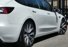Finished in elegant Multi White Coat, the Model 3 showcases a clean, aerodynamic silhouette designed for maximum efficiency. The 19-inch Nova wheels complement its sporty stance, while the panoramic glass roof adds a modern and premium touch.
