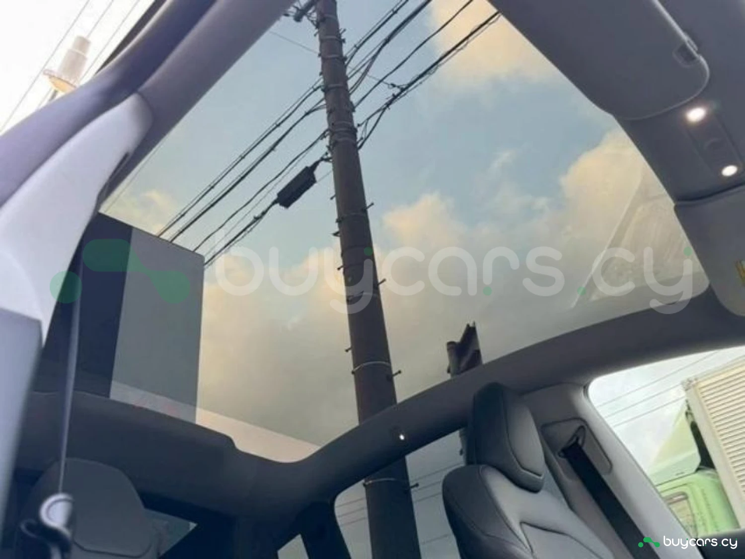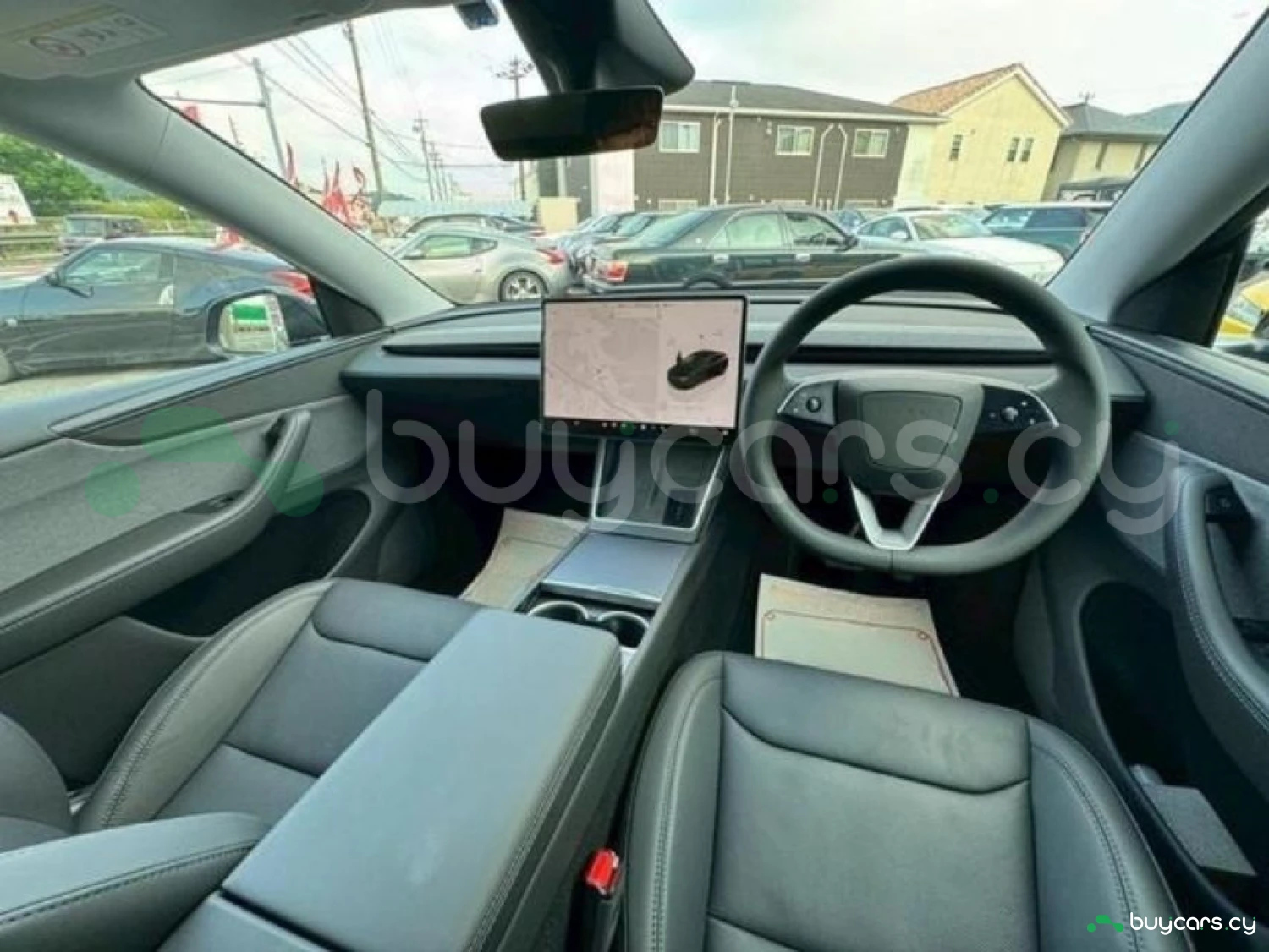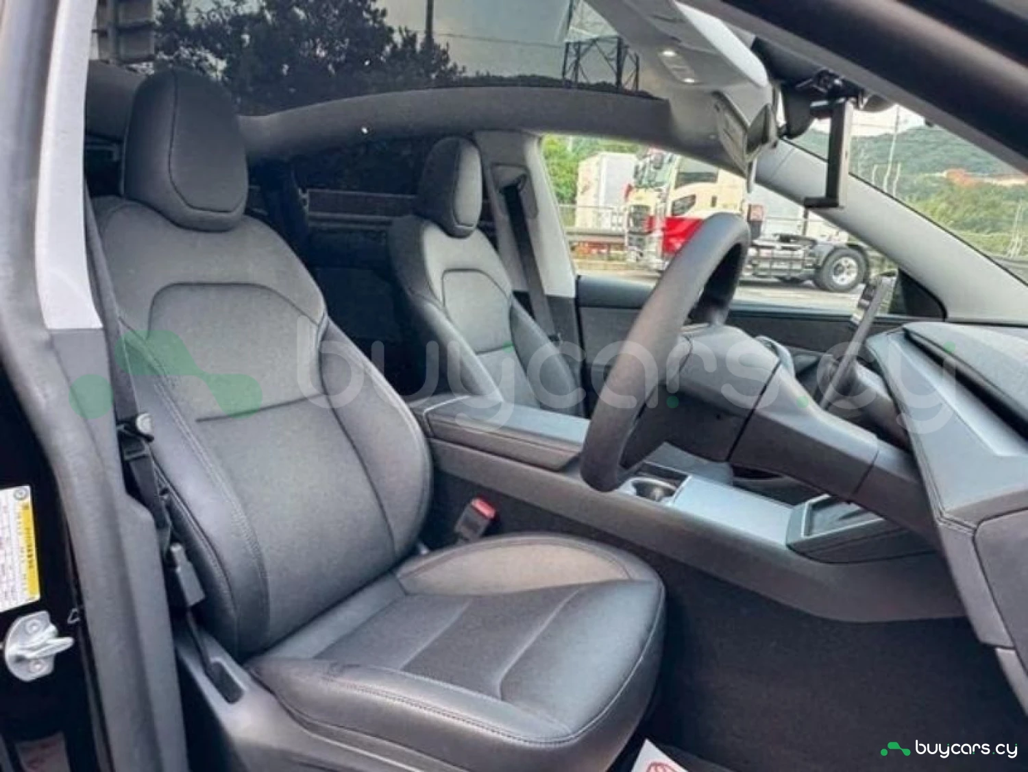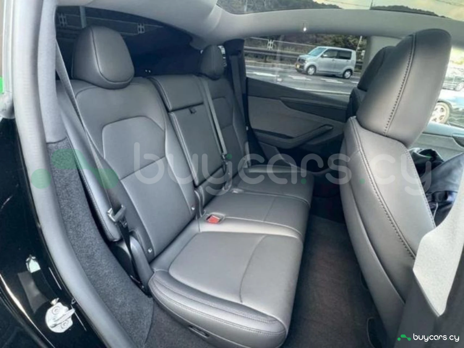 The cabin accommodates 5 passengers and features leather seats in a refined black interior.
