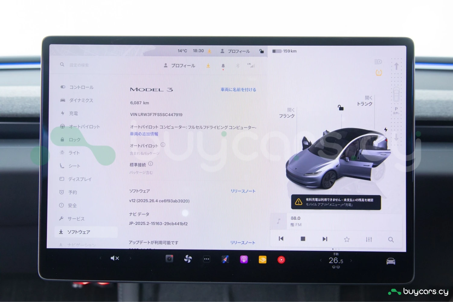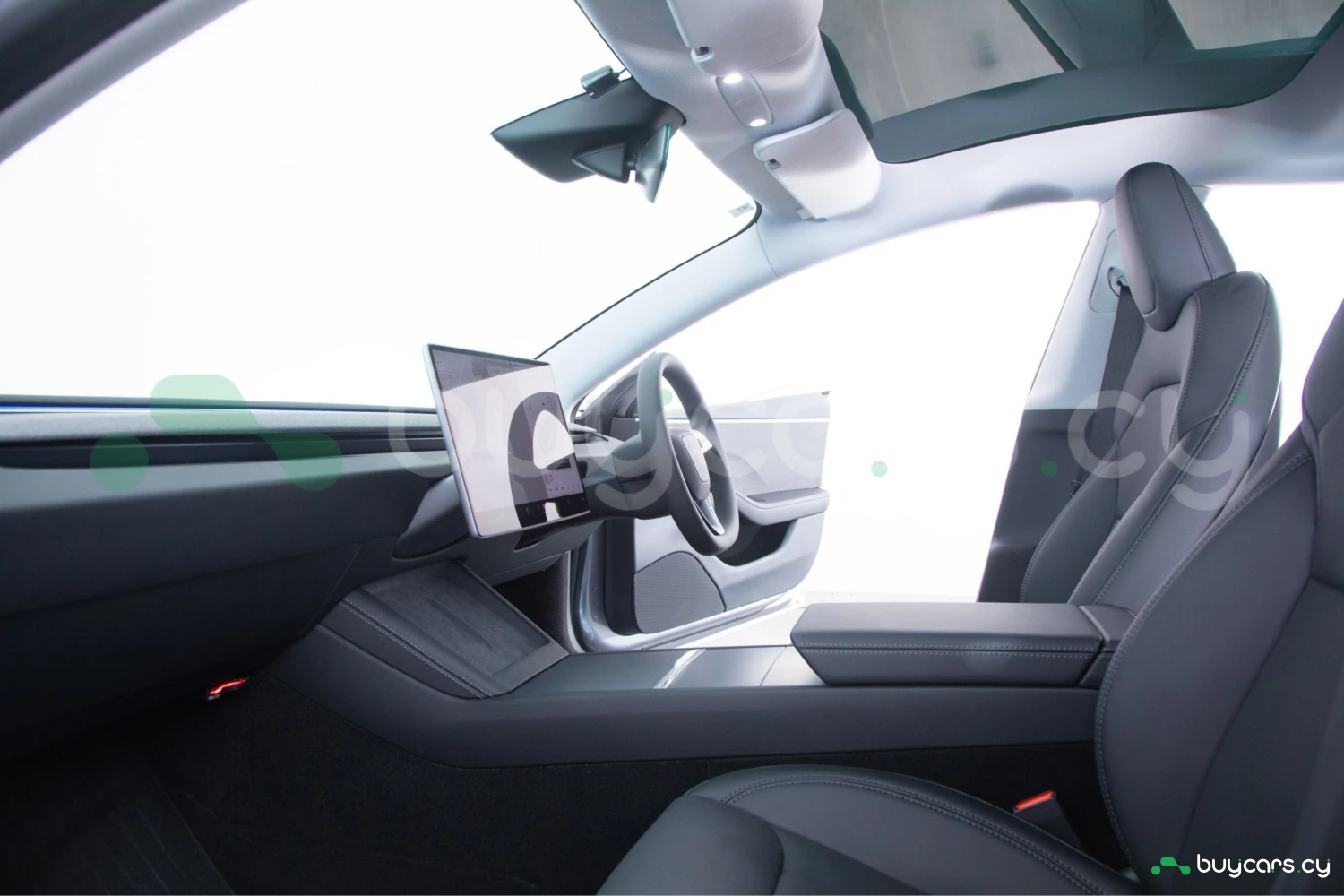 Sedan, RWD (2WD), Fully electric (60 kWh battery), Automatic transmission, Right-hand drive, 5 seats, 4 doors, Quicksilver color, One owner, FSD Computer 4, Genuine Tesla dashcam, Rear monitor, Heated seats, Heated steering wheel, Adaptive cruise control, Lane Keep Assist, Collision mitigation braking, Obstacle sensors, ABS, Power steering, Dual-zone climate control, Display Audio (Apple CarPlay / Android Auto), ETC, Keyless entry & smart key, Power windows, Electric seats, Genuine leather seats, Panoramic glass roof (Sunroof), 18-inch aluminum wheels