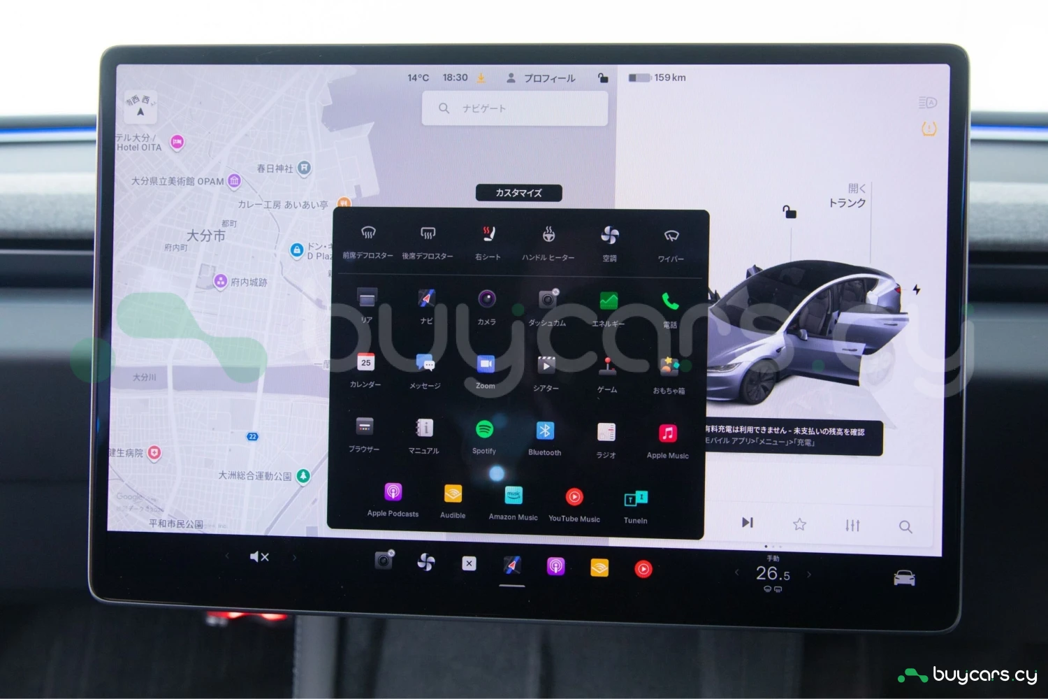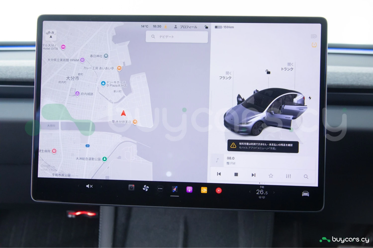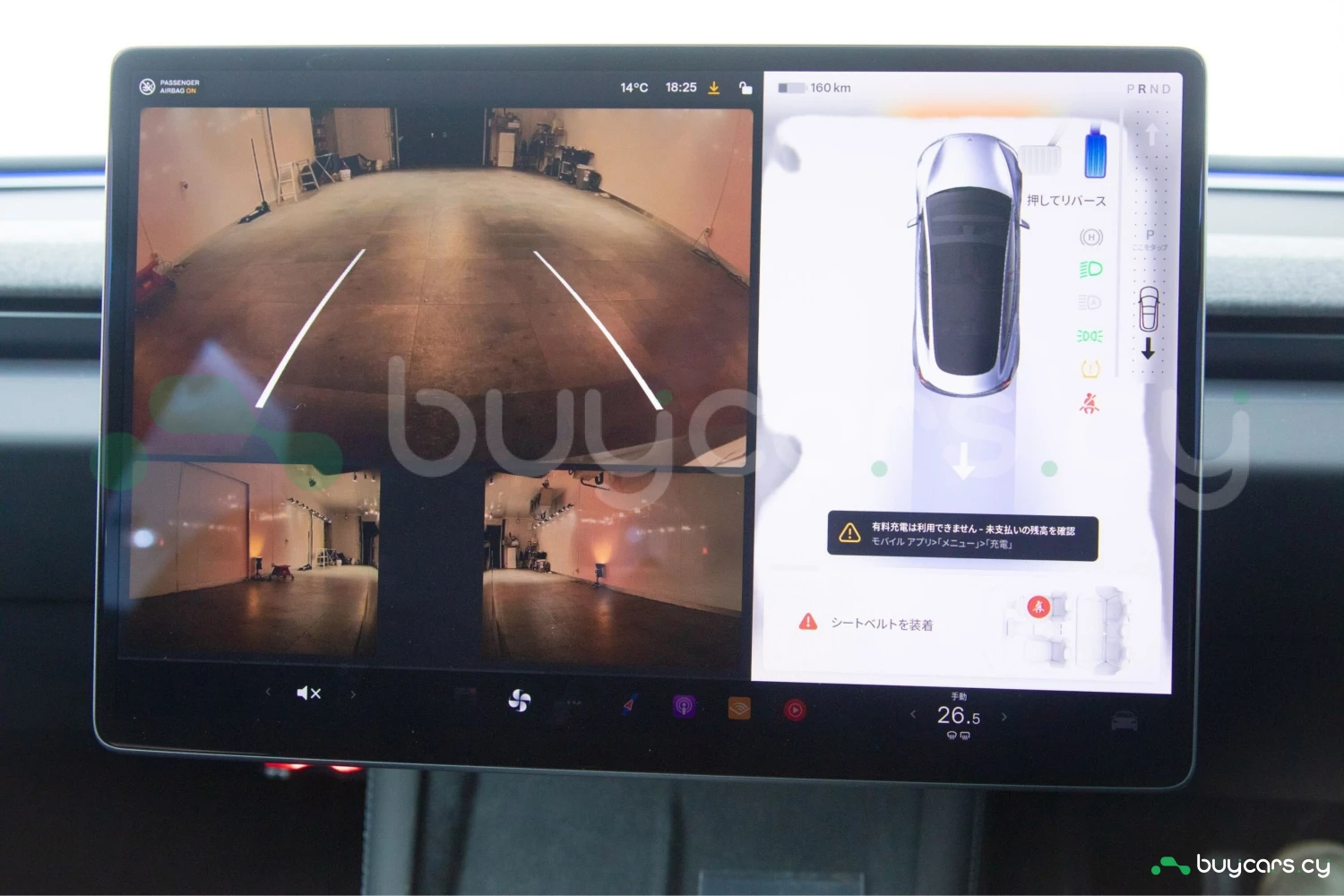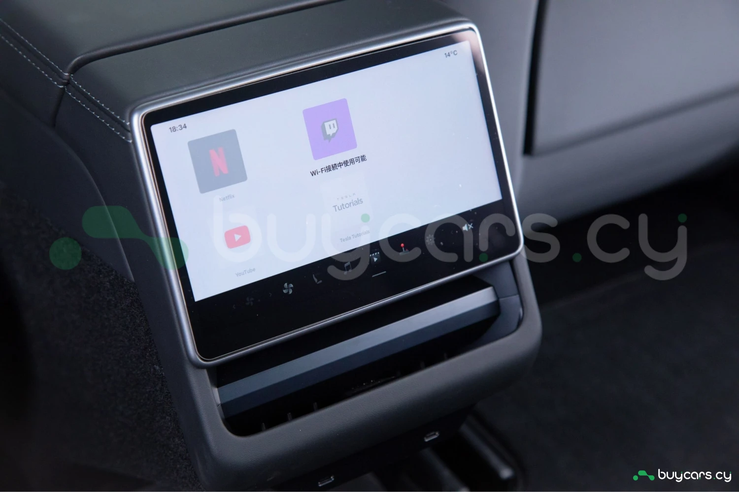 The minimalist Tesla interior features a large central touchscreen interface, rear passenger monitor, heated seats, and a heated steering wheel. Advanced connectivity, digital controls, and Tesla’s FSD Computer 4 enhance the driving experience with cutting-edge software capabilities.