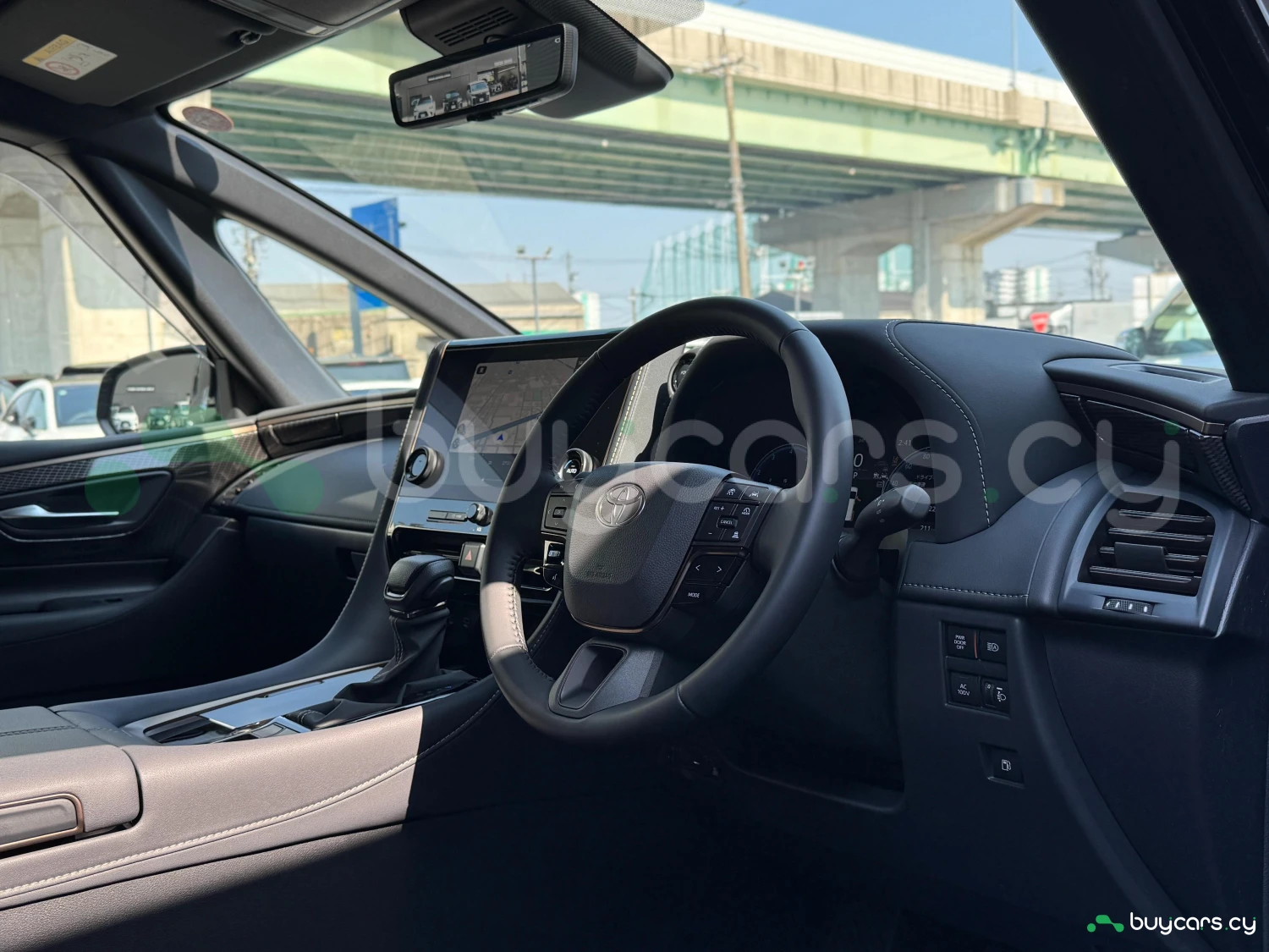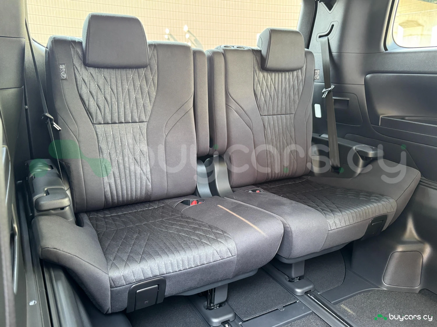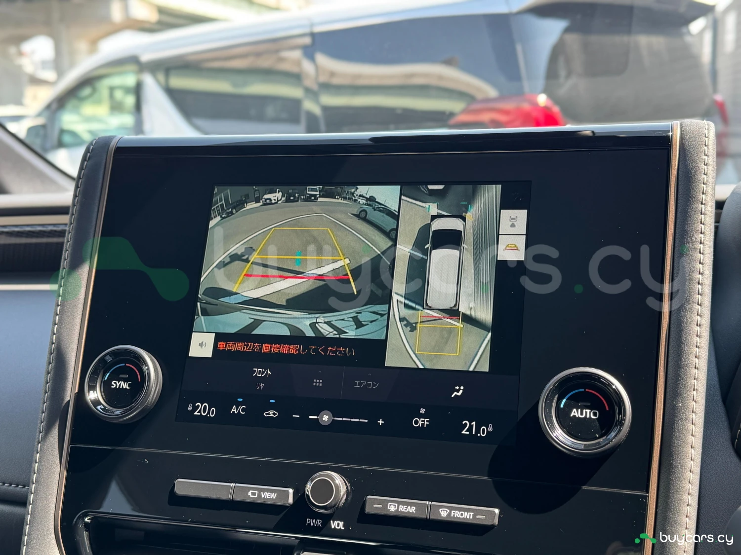 Inside, the Toyota Alphard Hybrid 2.5 X offers a spacious and luxurious cabin designed to accommodate up to 7 passengers. The interior features black leather seats, giving the cabin a premium feel. The vehicle is equipped with a 14-inch multimedia system, which integrates with the navigation system, TV functionality, and a 360-degree camera, offering easy access to media and enhanced visibility while parking.