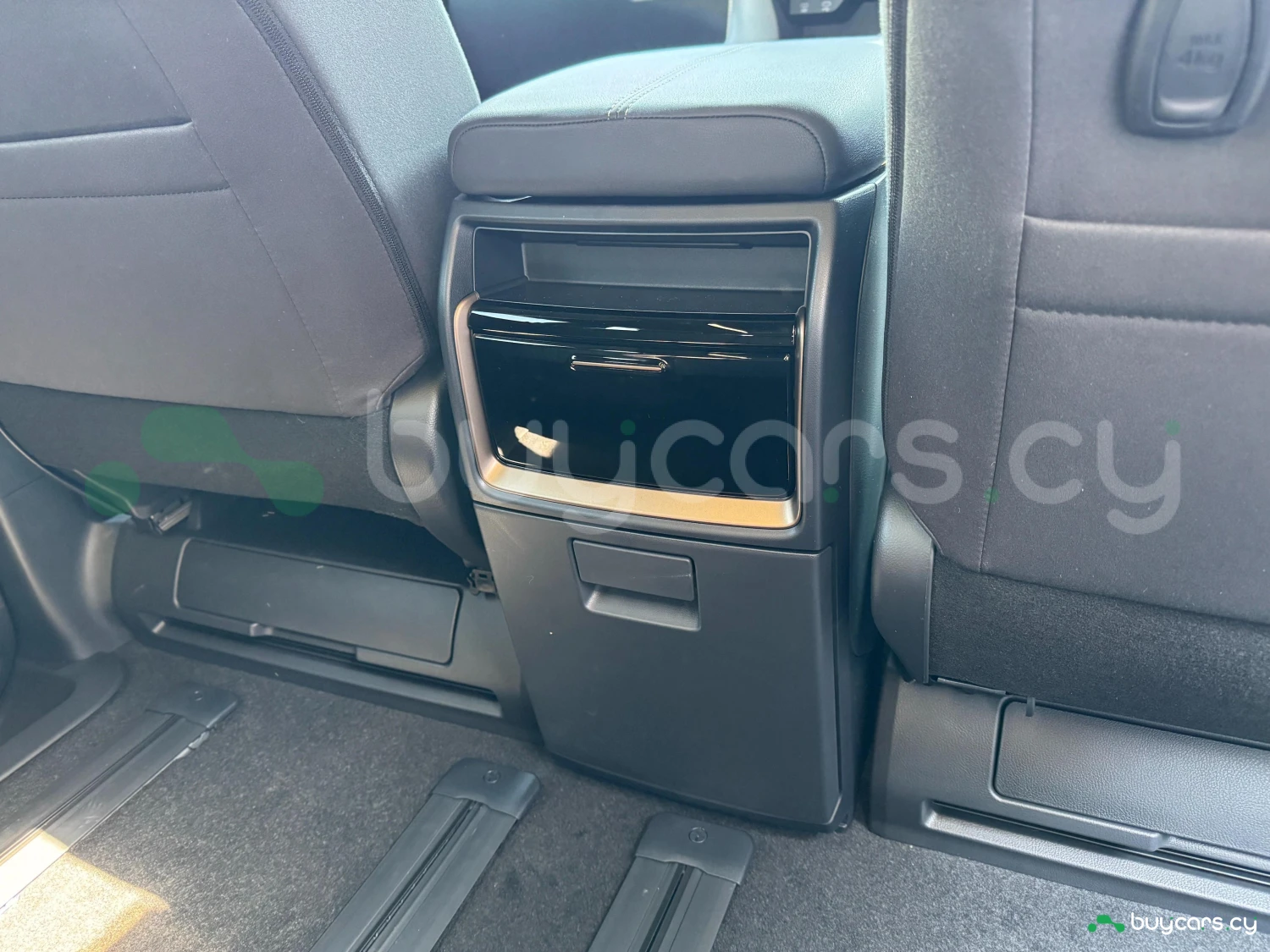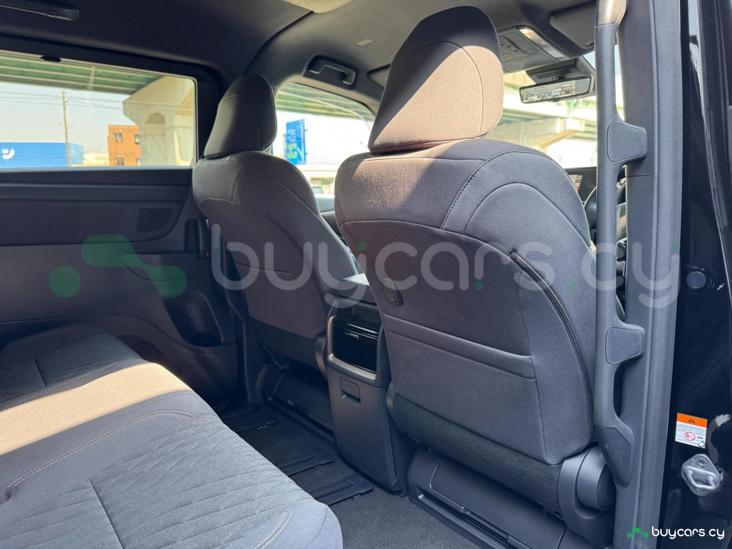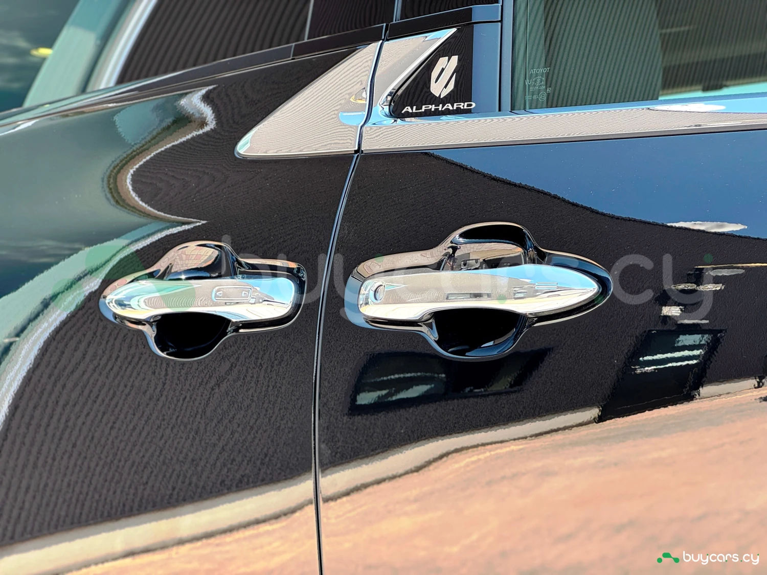 Inside, the Toyota Alphard Hybrid 2.5 X offers a spacious and luxurious cabin designed to accommodate up to 7 passengers. The interior features black leather seats, giving the cabin a premium feel. The vehicle is equipped with a 14-inch multimedia system, which integrates with the navigation system, TV functionality, and a 360-degree camera, offering easy access to media and enhanced visibility while parking.