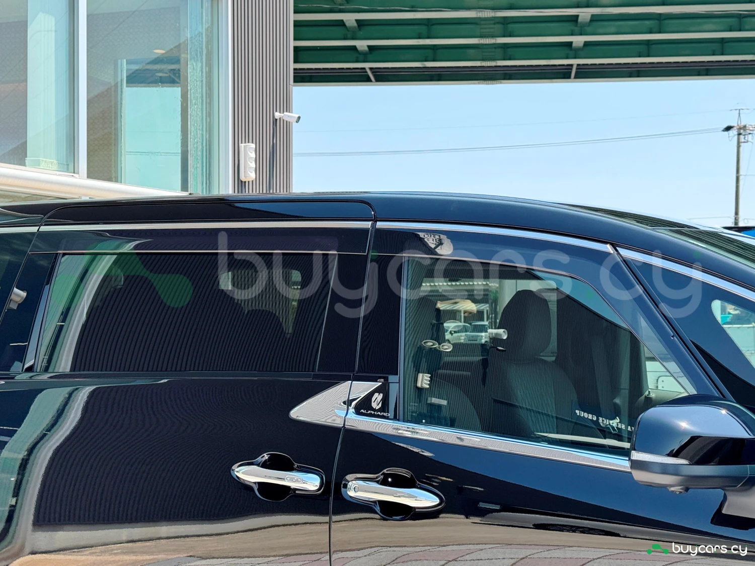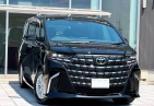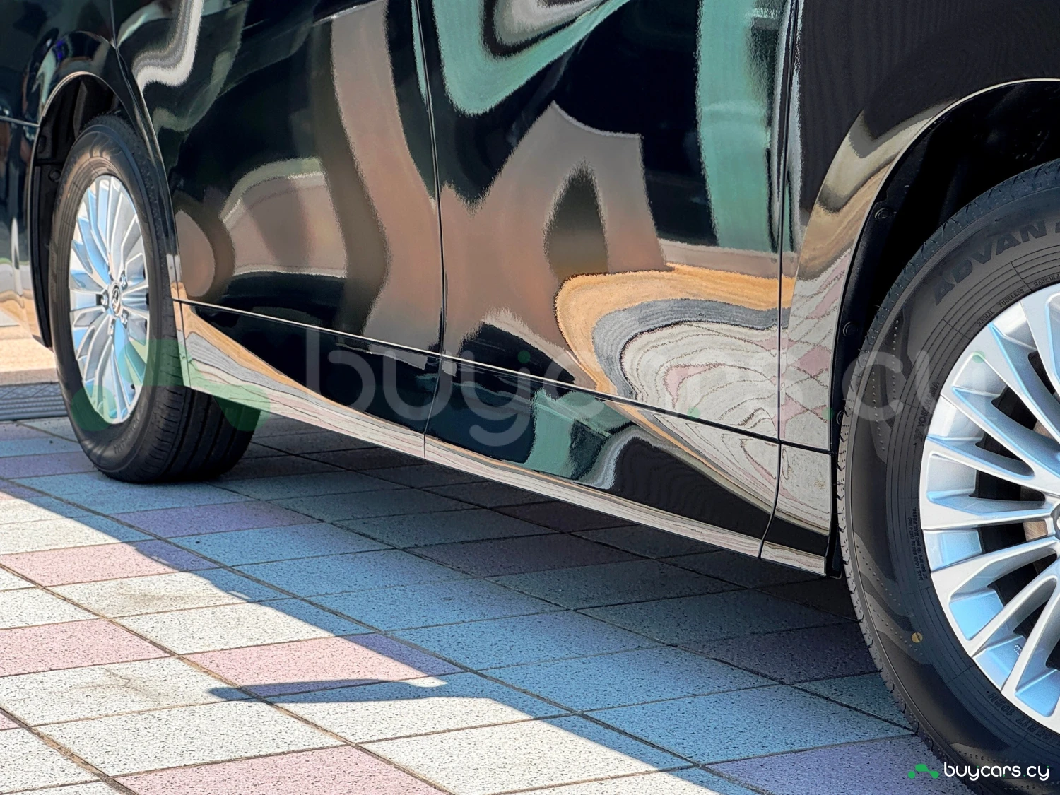 The Alphard Hybrid 2.5 X features a modern and sophisticated design, with its bold Black exterior giving the vehicle a premium and stylish look. The vehicle sits on 20-inch wheels and features darkened rear glass, enhancing its elegant appearance. The panoramic sunroof adds a sense of openness to the cabin, while the M Sport body kit and sleek lines give the Alphard a sporty yet refined appeal.