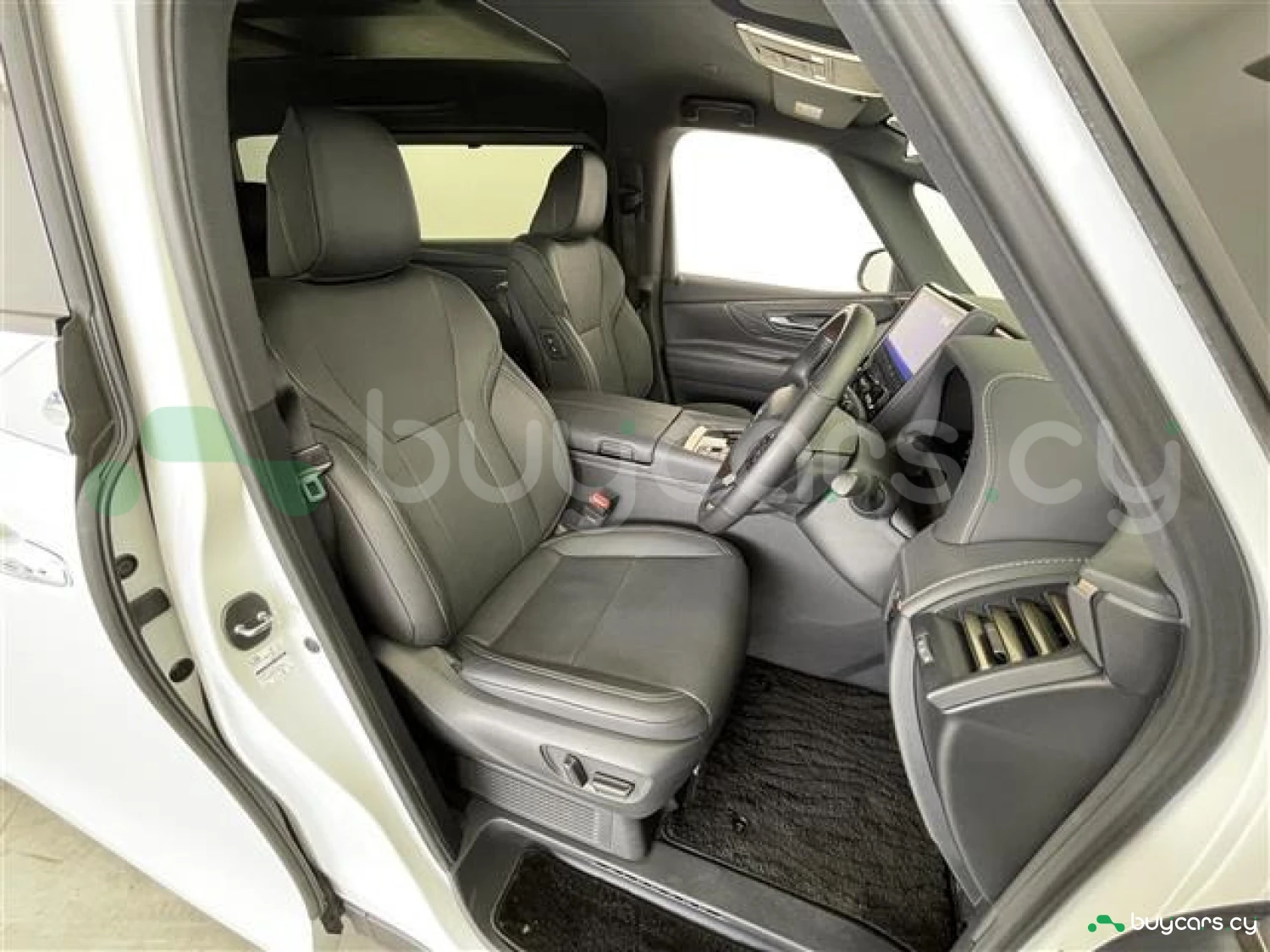 Inside, the Alphard Hybrid 2.5 Z offers a luxurious and spacious cabin that can comfortably accommodate up to 7 passengers. The interior is finished with black leather upholstery, adding a touch of elegance and comfort. The 14-inch ALPINE navigation system integrates TV reception and a 360-degree camera, offering comprehensive visibility and entertainment options. The cabin also features multi-zone climate control to ensure optimal comfort for all passengers, along with a panoramic sunroof for an open and airy feel.