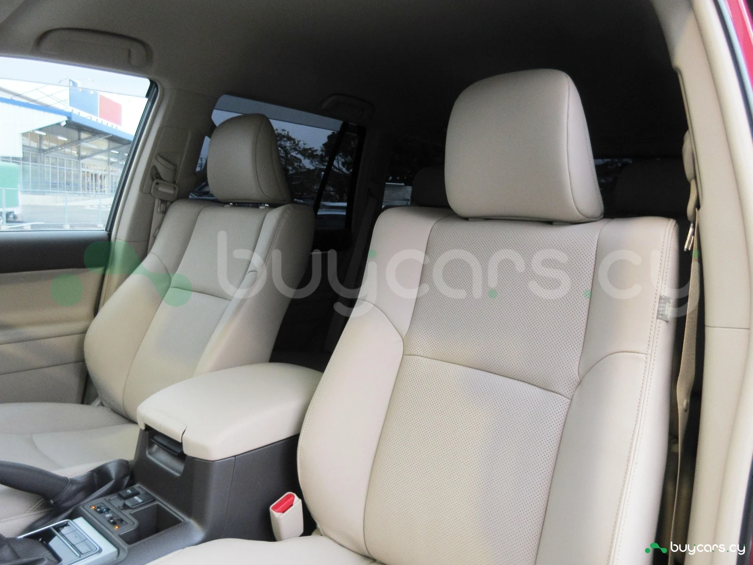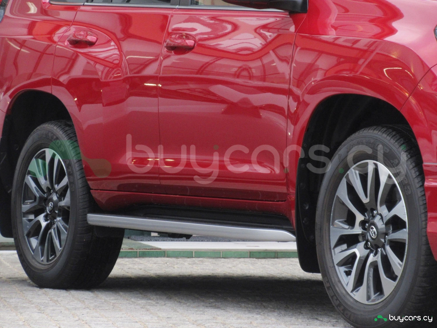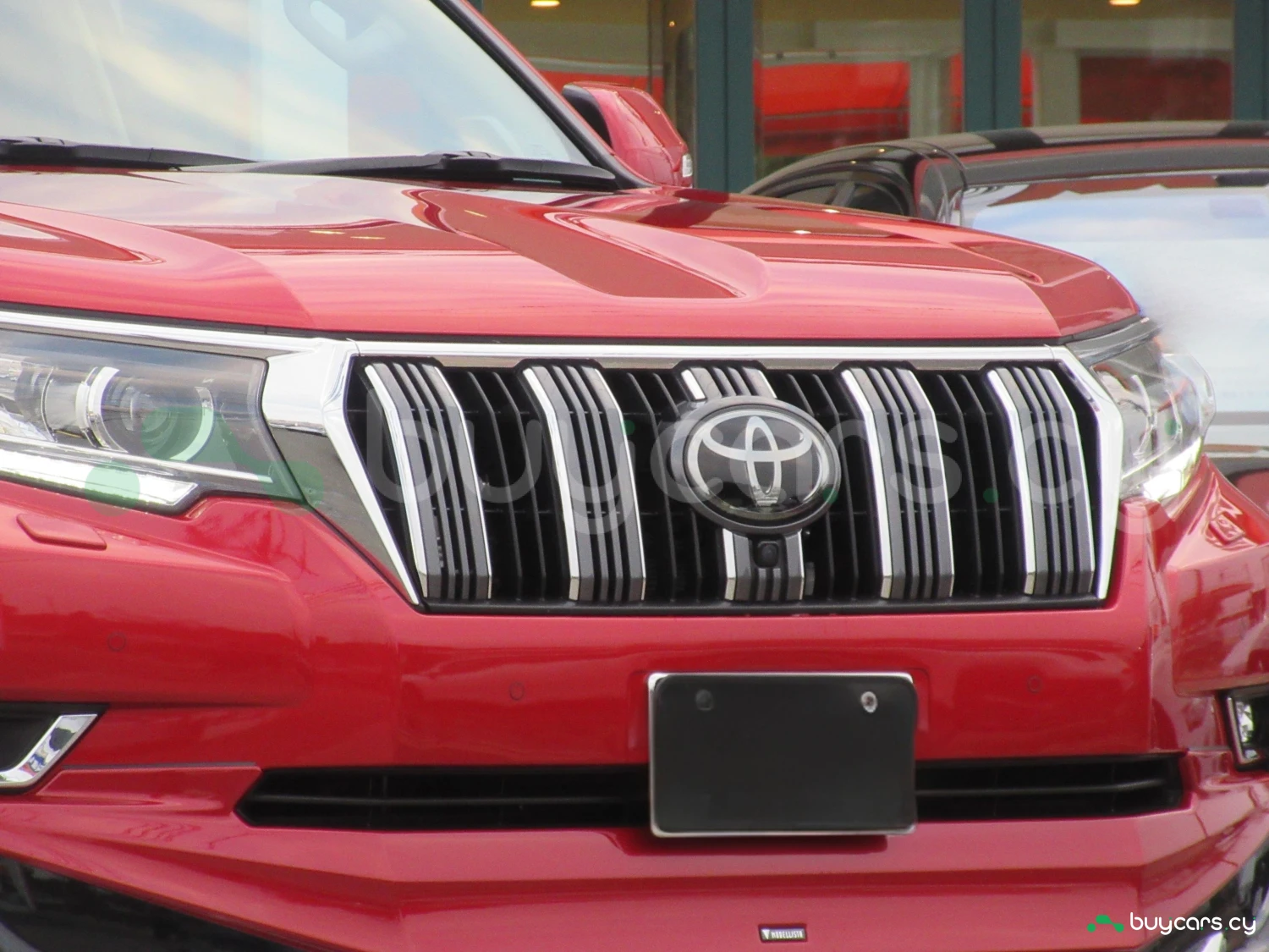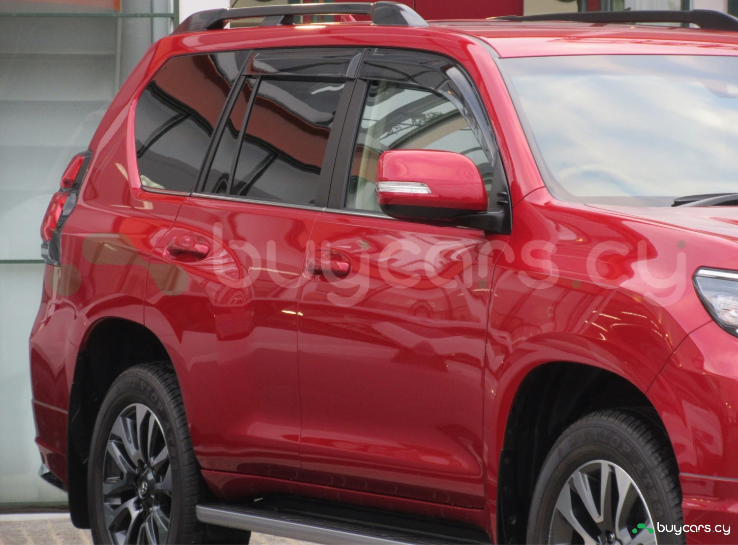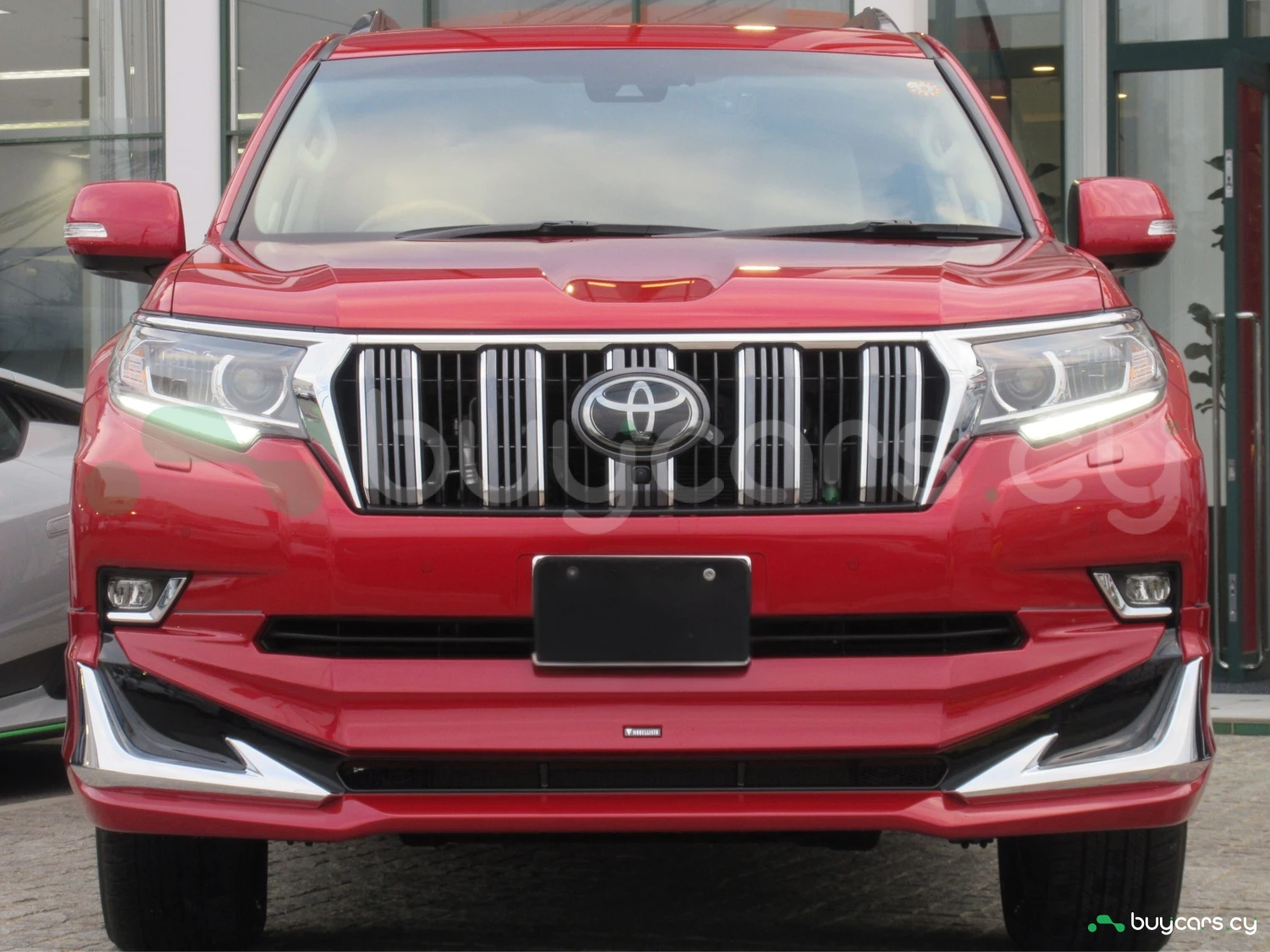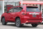 The Red Mica Metallic body combined with the Modellista aero kit, roof rails, and stylish alloy wheels gives the Prado a bold and sophisticated appearance, emphasizing its premium off-road character.