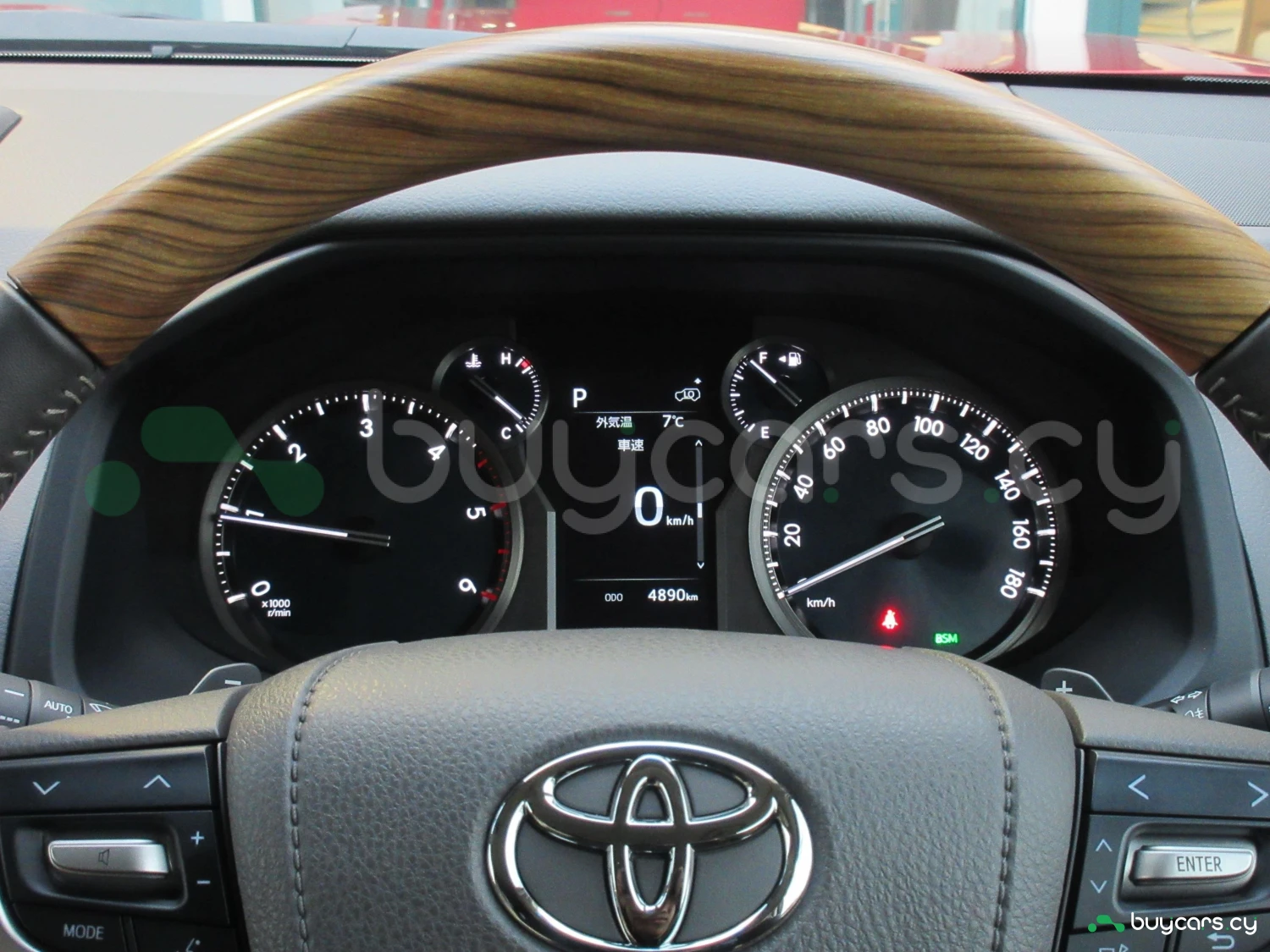 Off-road SUV, 5 doors, 7 seats, 2.8L diesel turbo engine (2800cc), 6-speed automatic transmission with manual mode, 4WD, right-hand drive, Red Mica Metallic, TZ-G grade, Modellista aero kit, multi-terrain monitor, multi-terrain select, electric rear differential lock, adaptive cruise control, lane keep assist, collision mitigation braking, blind spot monitor (BSM), rear traffic alert, LED adaptive headlights, front fog lights, roof rails, genuine leather seats (heated & ventilated), power seats, 3-row seating, cold weather package, navigation system, display audio (Apple CarPlay / Android Auto), ETC, dashcam, air suspension, smart key, keyless entry, power windows, dual-zone automatic air conditioning, aluminum wheels, anti-skid system, anti-theft device.